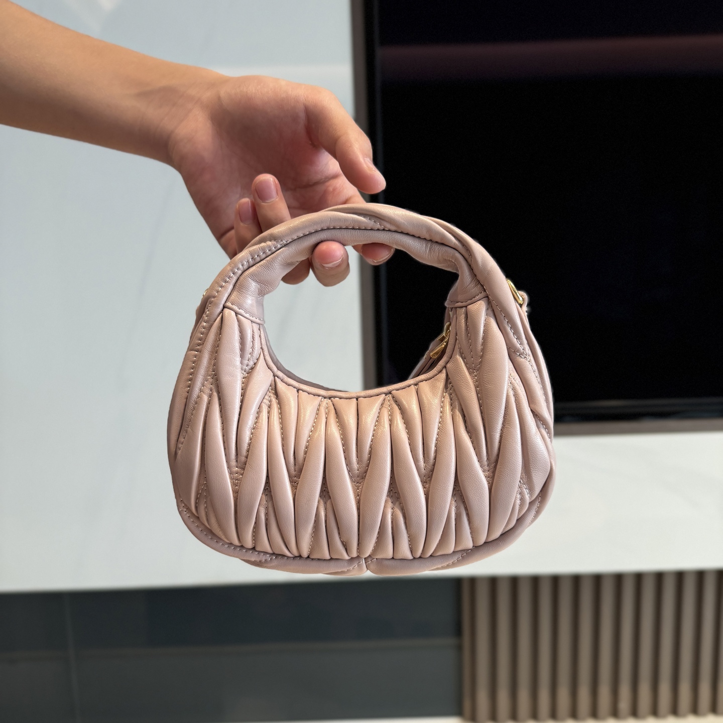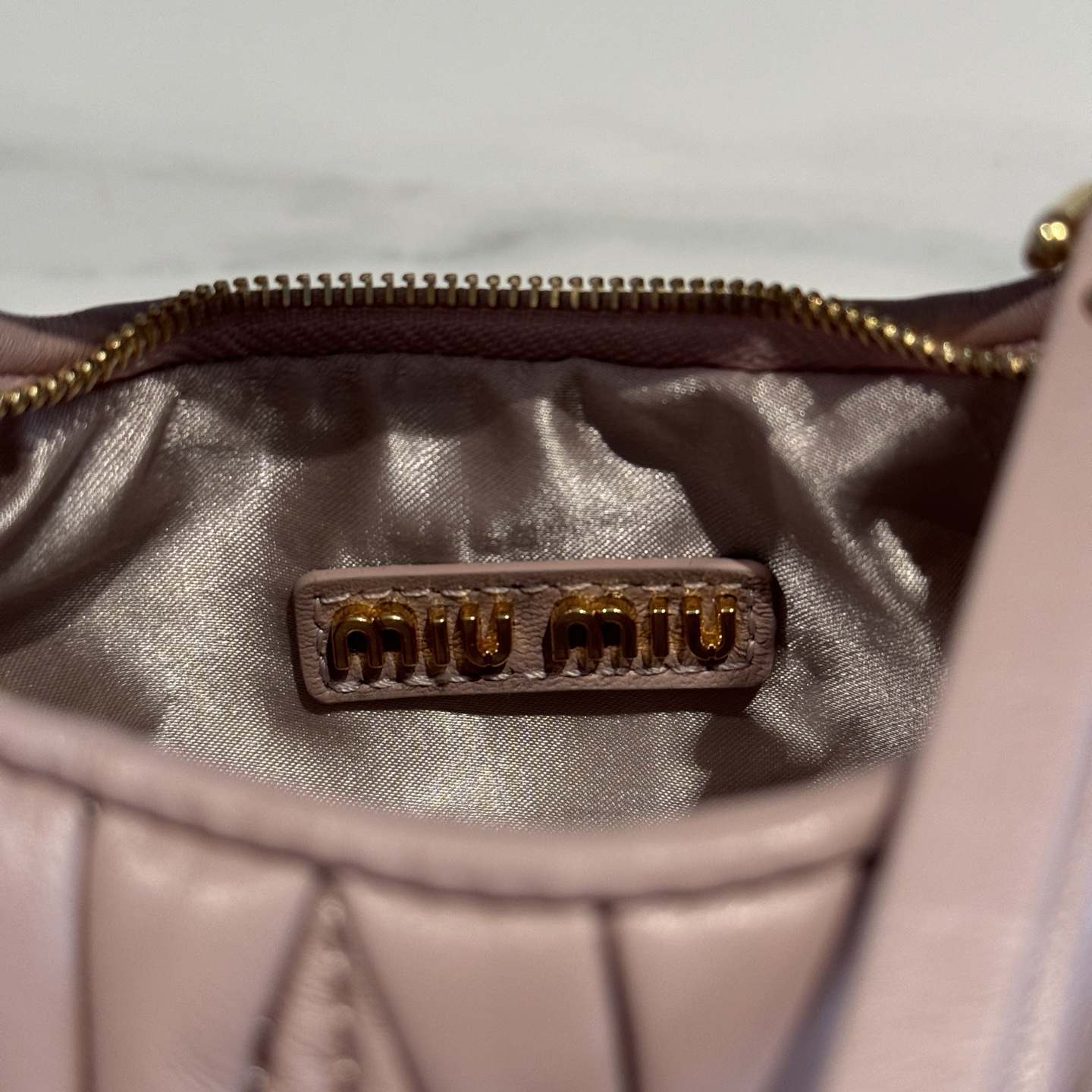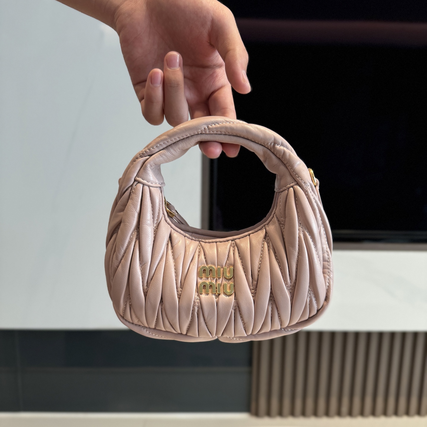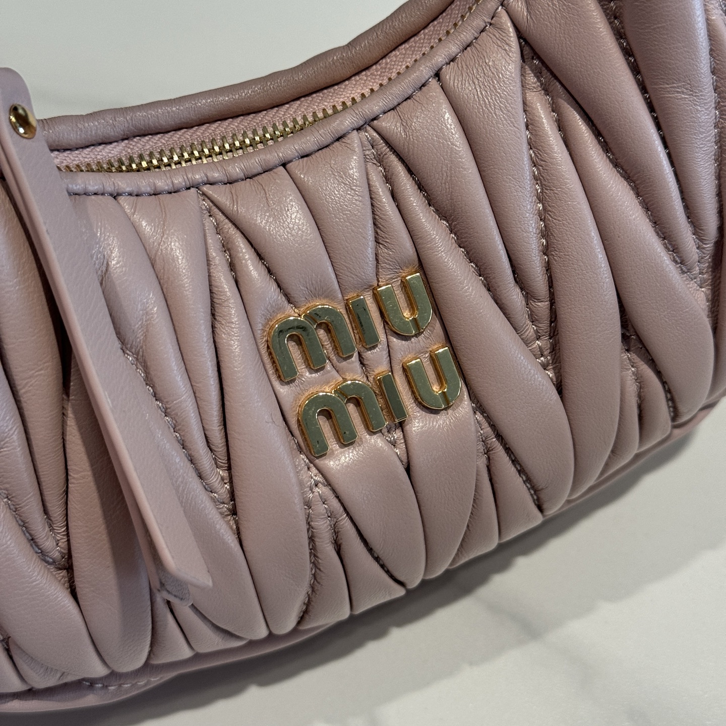 這款包包是AAAAA 1:1 質量(非常棒). 使用了和原版一模一樣的材料. 商標部分也保持了和繆繆/Miu Miu一樣. 圖片拍攝是實物包包拍攝, 您所收到的實物保證和我們圖片一模一樣.