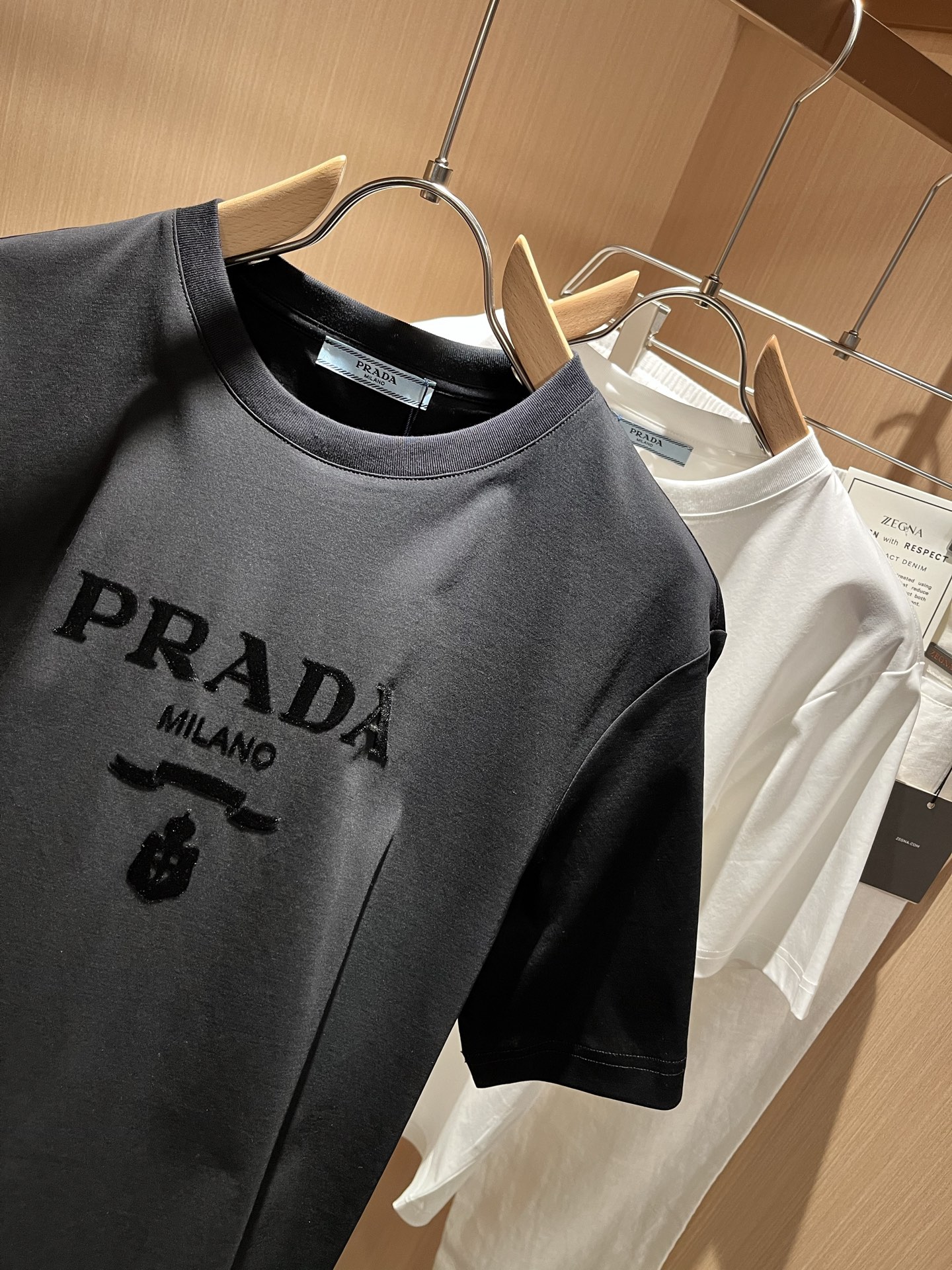 這款衣服是AAAAA 1:1 質量(非常棒). 使用了和原版一模一樣的材料. 商標部分也保持了和普拉達/Prada一樣. 圖片拍攝是實物衣服拍攝, 您所收到的實物保證和我們圖片一模一樣.