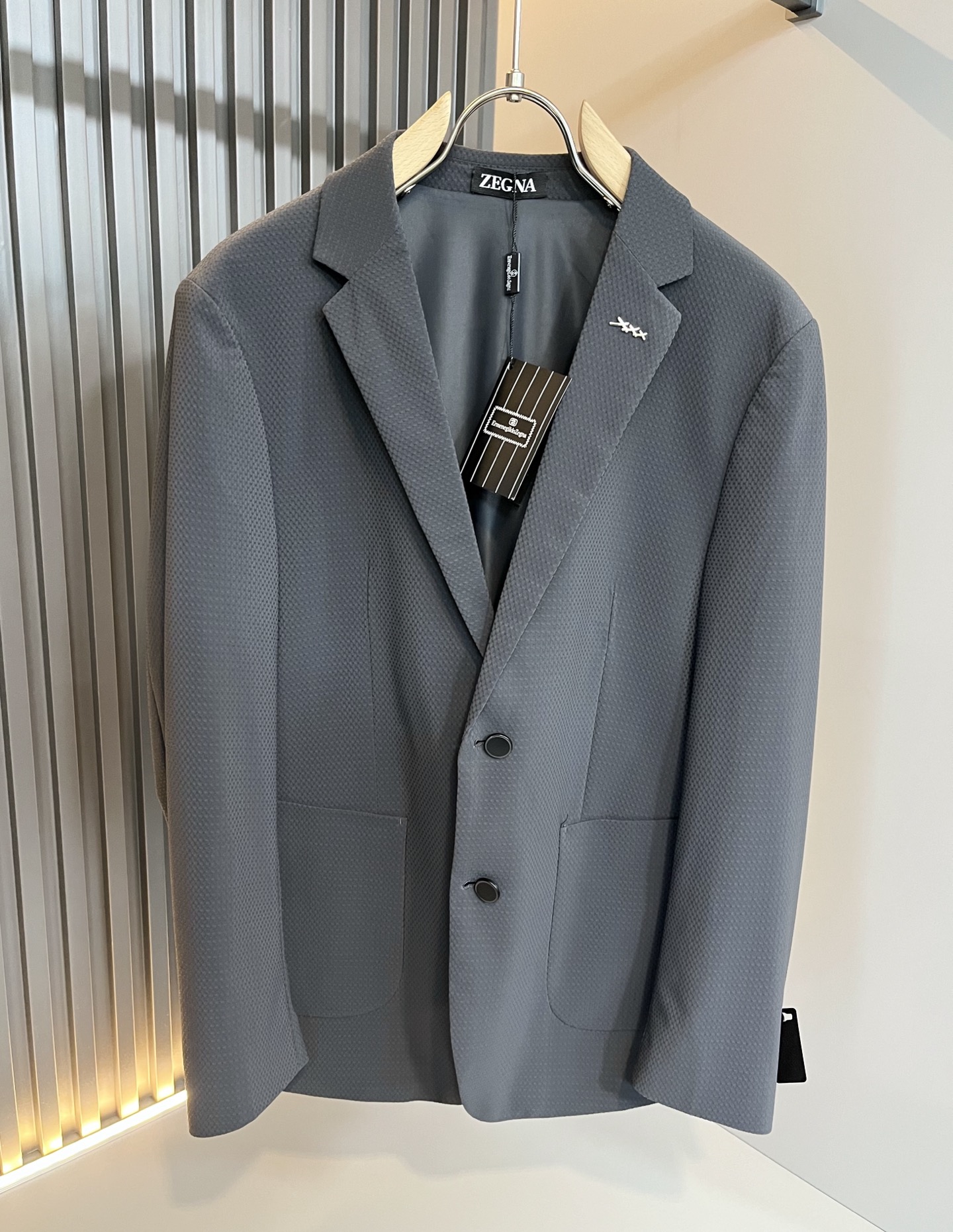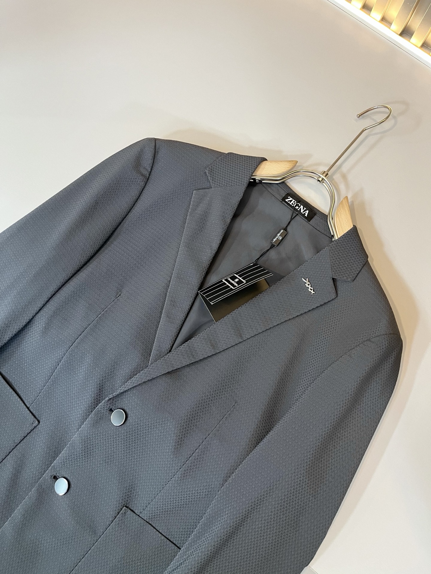 這款衣服是AAAAA 1:1 質量(非常棒). 使用了和原版一模一樣的材料. 商標部分也保持了和Zegna一樣. 圖片拍攝是實物衣服拍攝, 您所收到的實物保證和我們圖片一模一樣.