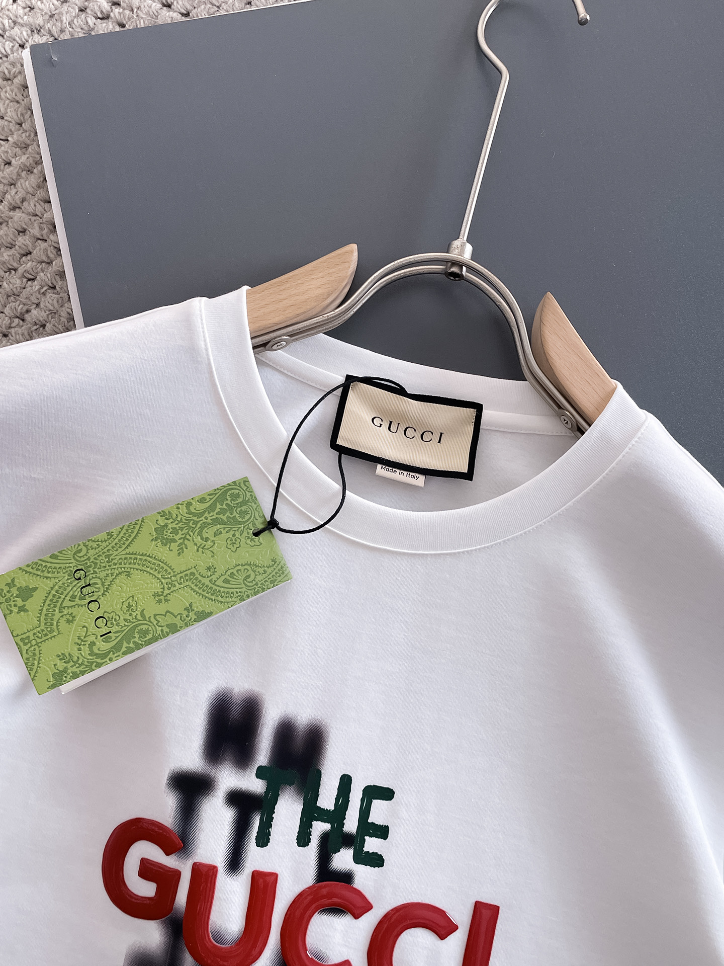 這款衣服是AAAAA 1:1 質量(非常棒). 使用了和原版一模一樣的材料. 商標部分也保持了和古奇/Gucci一樣. 圖片拍攝是實物衣服拍攝, 您所收到的實物保證和我們圖片一模一樣.