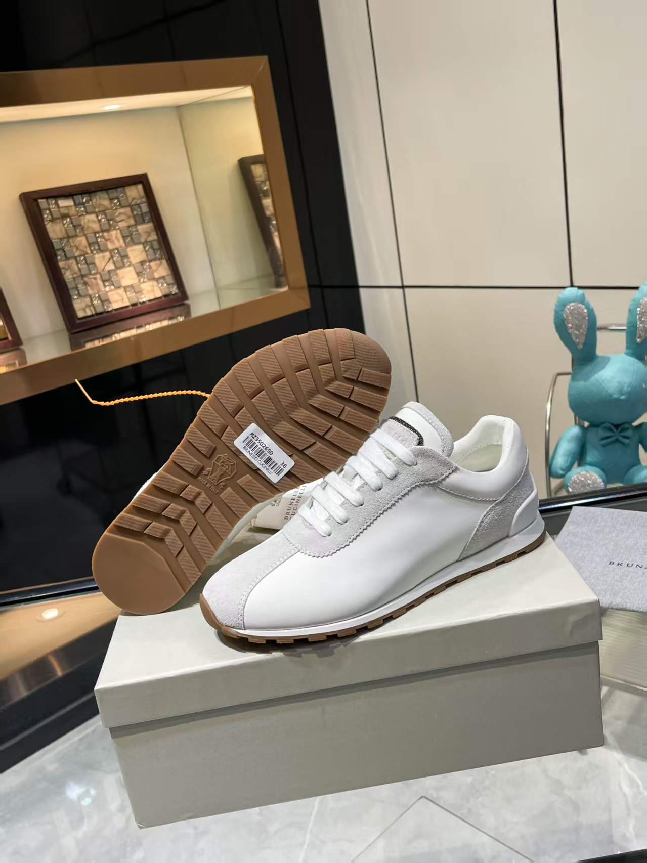 這款鞋子是AAAAA 1:1 質量(非常棒). 使用了和原版一模一樣的材料. 商標部分也保持了和Brunello Cucinelli一樣. 圖片拍攝是實物鞋子拍攝, 您所收到的實物保證和我們圖片一模一樣.