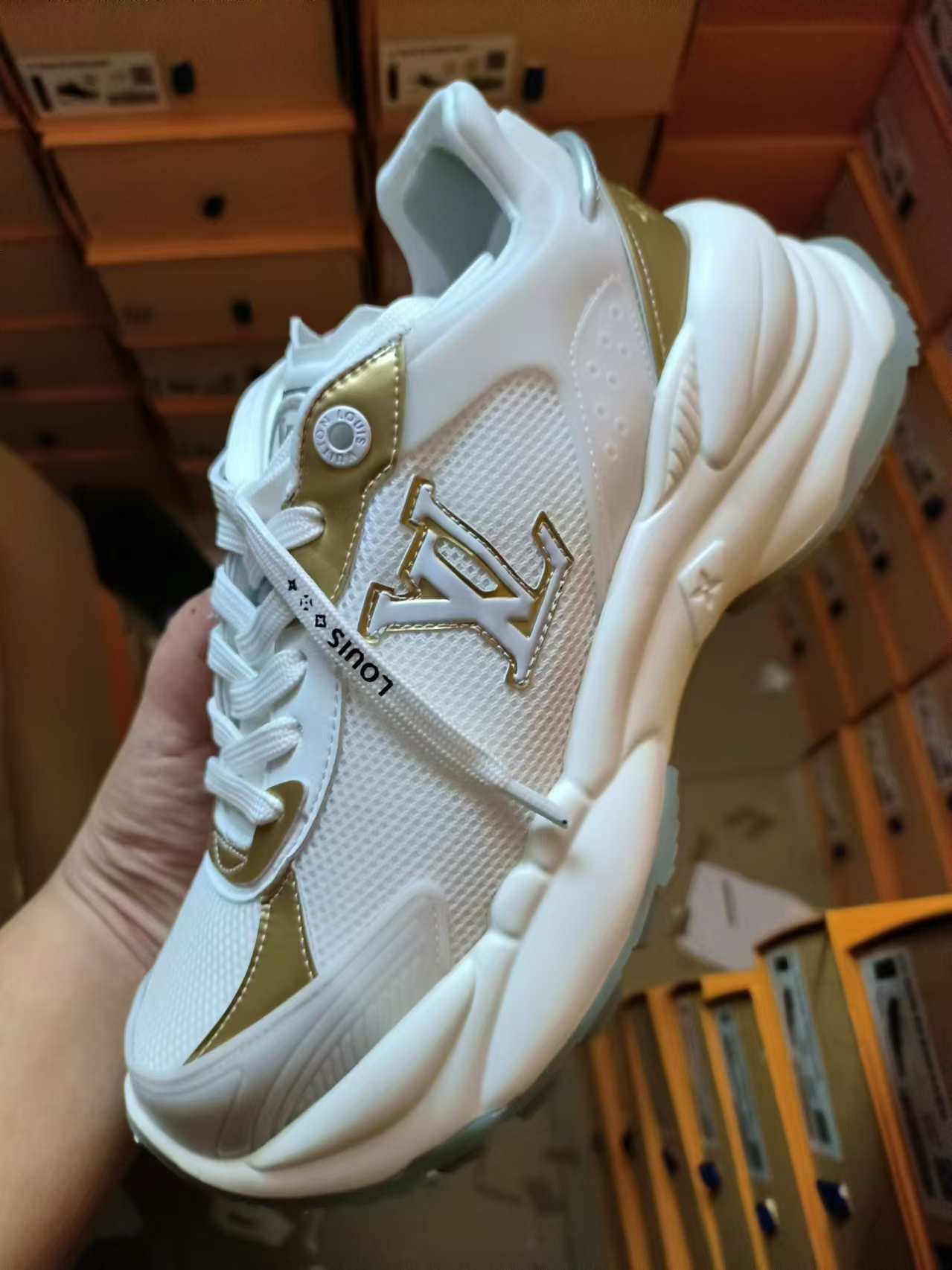 這款鞋子是AAAAA 1:1 質量(非常棒). 使用了和原版一模一樣的材料. 商標部分也保持了和路易威登/Louis Vuitton一樣. 圖片拍攝是實物鞋子拍攝, 您所收到的實物保證和我們圖片一模一樣.