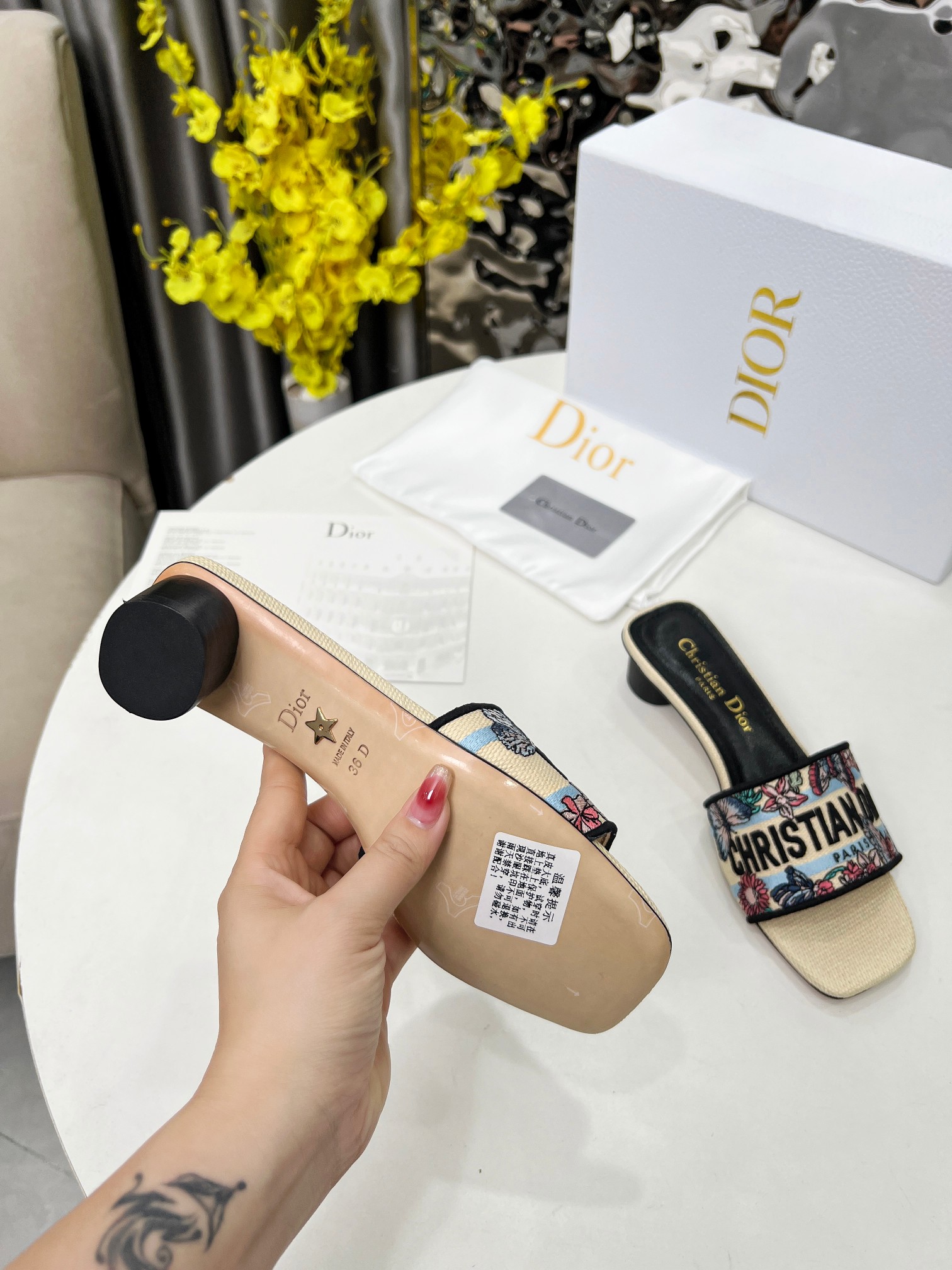 這款鞋子是AAAAA 1:1 質量(非常棒). 使用了和原版一模一樣的材料. 商標部分也保持了和迪奧/Dior一樣. 圖片拍攝是實物鞋子拍攝, 您所收到的實物保證和我們圖片一模一樣.