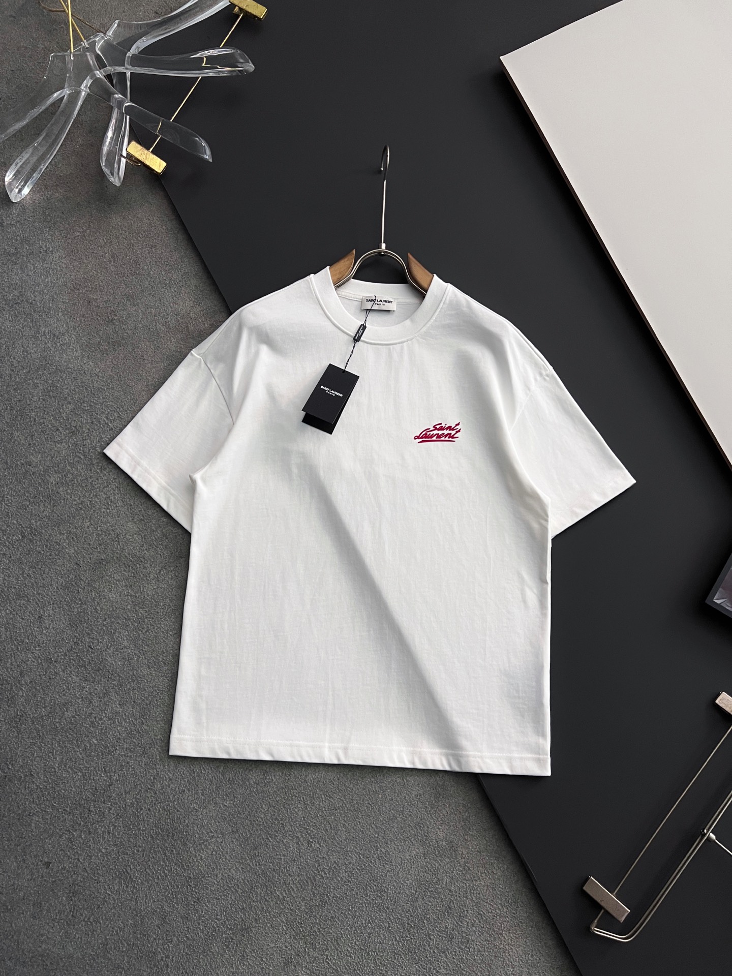 這款衣服是AAAAA 1:1 質量(非常棒). 使用了和原版一模一樣的材料. 商標部分也保持了和聖羅蘭/Saint Laurent一樣. 圖片拍攝是實物衣服拍攝, 您所收到的實物保證和我們圖片一模一樣.