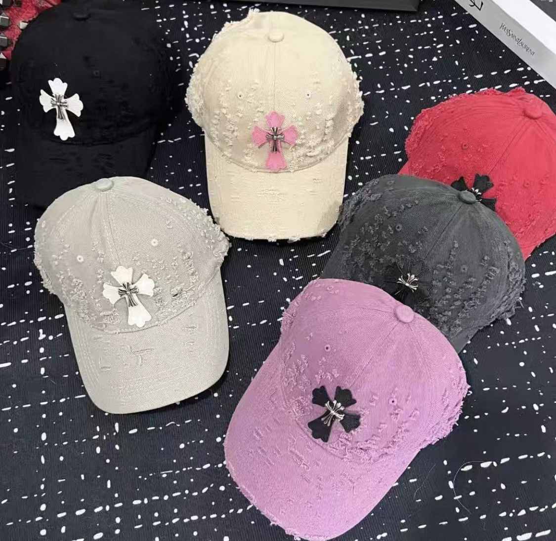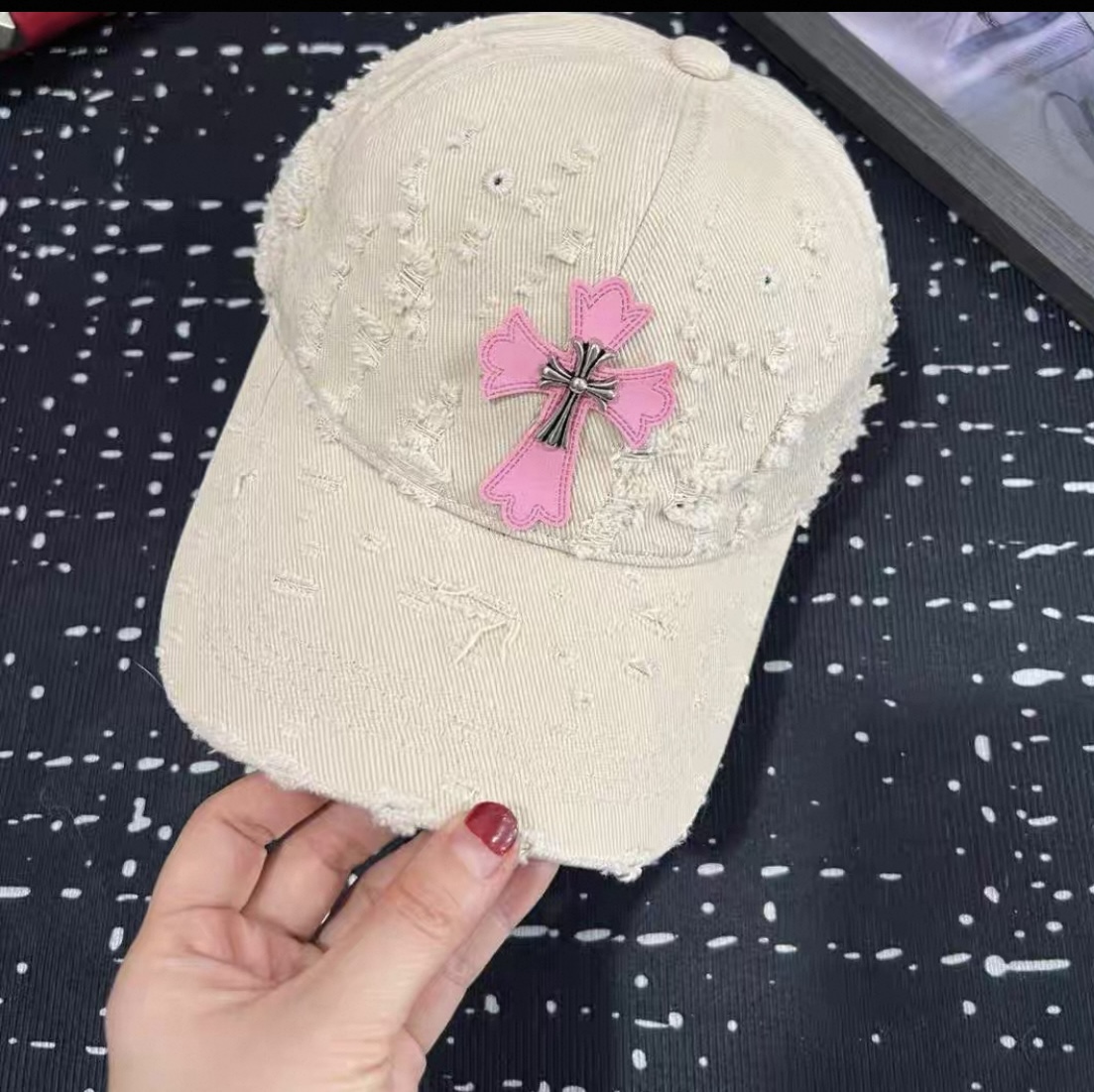 這款帽子是AAAAA 1:1 質量(非常棒). 使用了和原版一模一樣的材料. 商標部分也保持了和鉻心/Chrome Hearts一樣. 圖片拍攝是實物帽子拍攝, 您所收到的實物保證和我們圖片一模一樣.