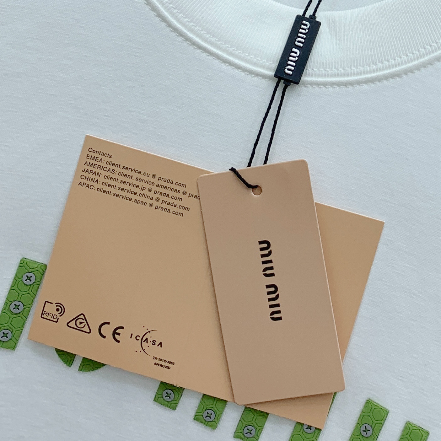 這款衣服是AAAAA 1:1 質量(非常棒). 使用了和原版一模一樣的材料. 商標部分也保持了和繆繆/Miu Miu一樣. 圖片拍攝是實物衣服拍攝, 您所收到的實物保證和我們圖片一模一樣.