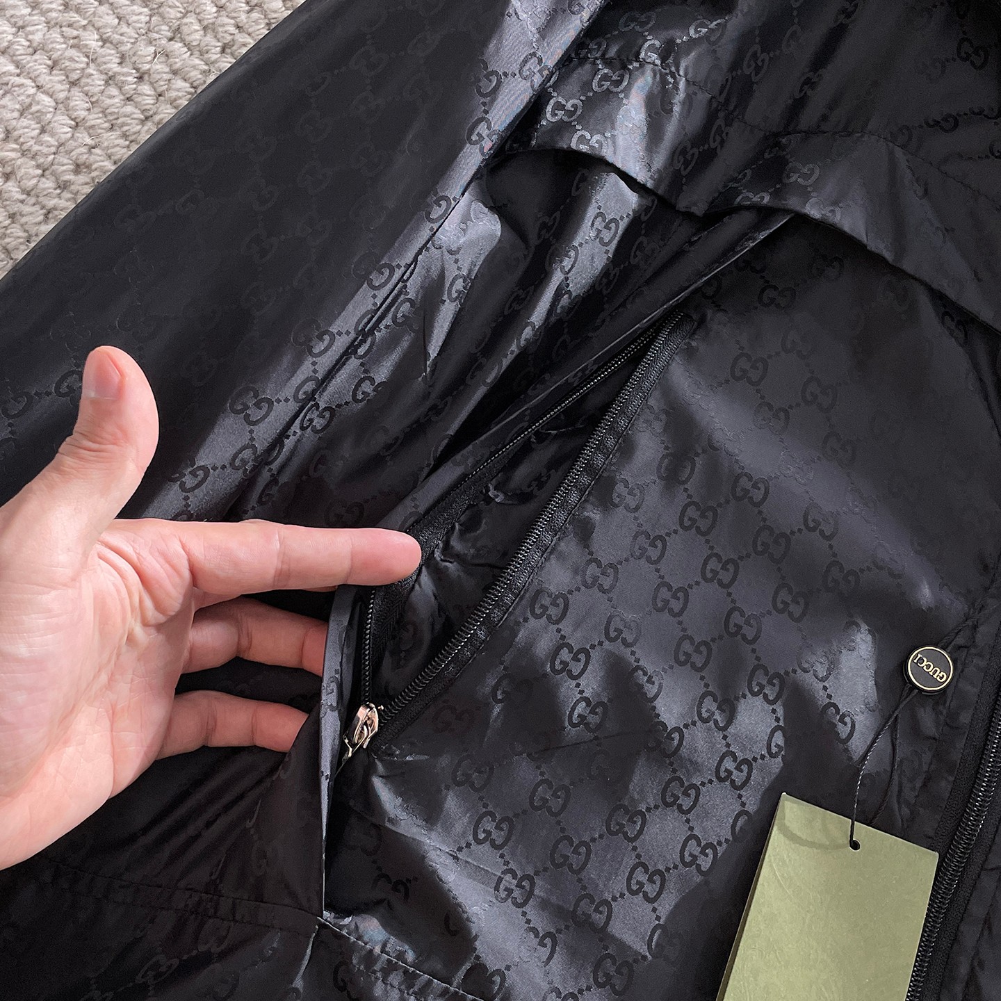 這款衣服是AAAAA 1:1 質量(非常棒). 使用了和原版一模一樣的材料. 商標部分也保持了和古奇/Gucci一樣. 圖片拍攝是實物衣服拍攝, 您所收到的實物保證和我們圖片一模一樣.