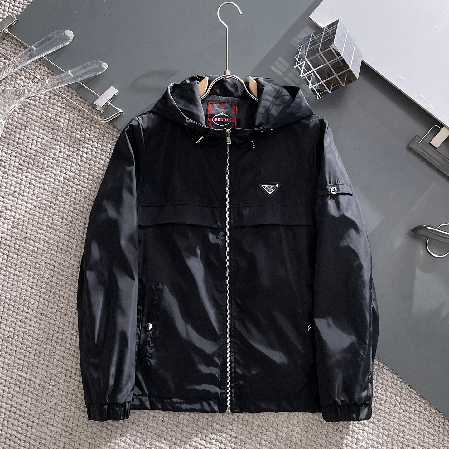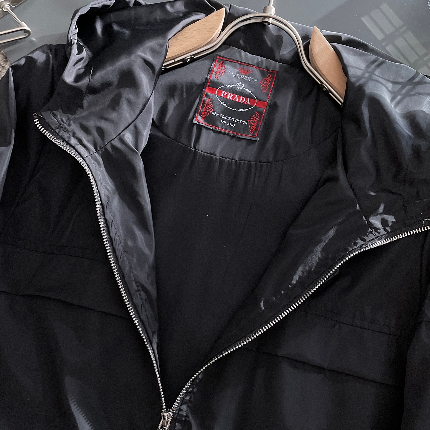 這款衣服是AAAAA 1:1 質量(非常棒). 使用了和原版一模一樣的材料. 商標部分也保持了和普拉達/Prada一樣. 圖片拍攝是實物衣服拍攝, 您所收到的實物保證和我們圖片一模一樣.