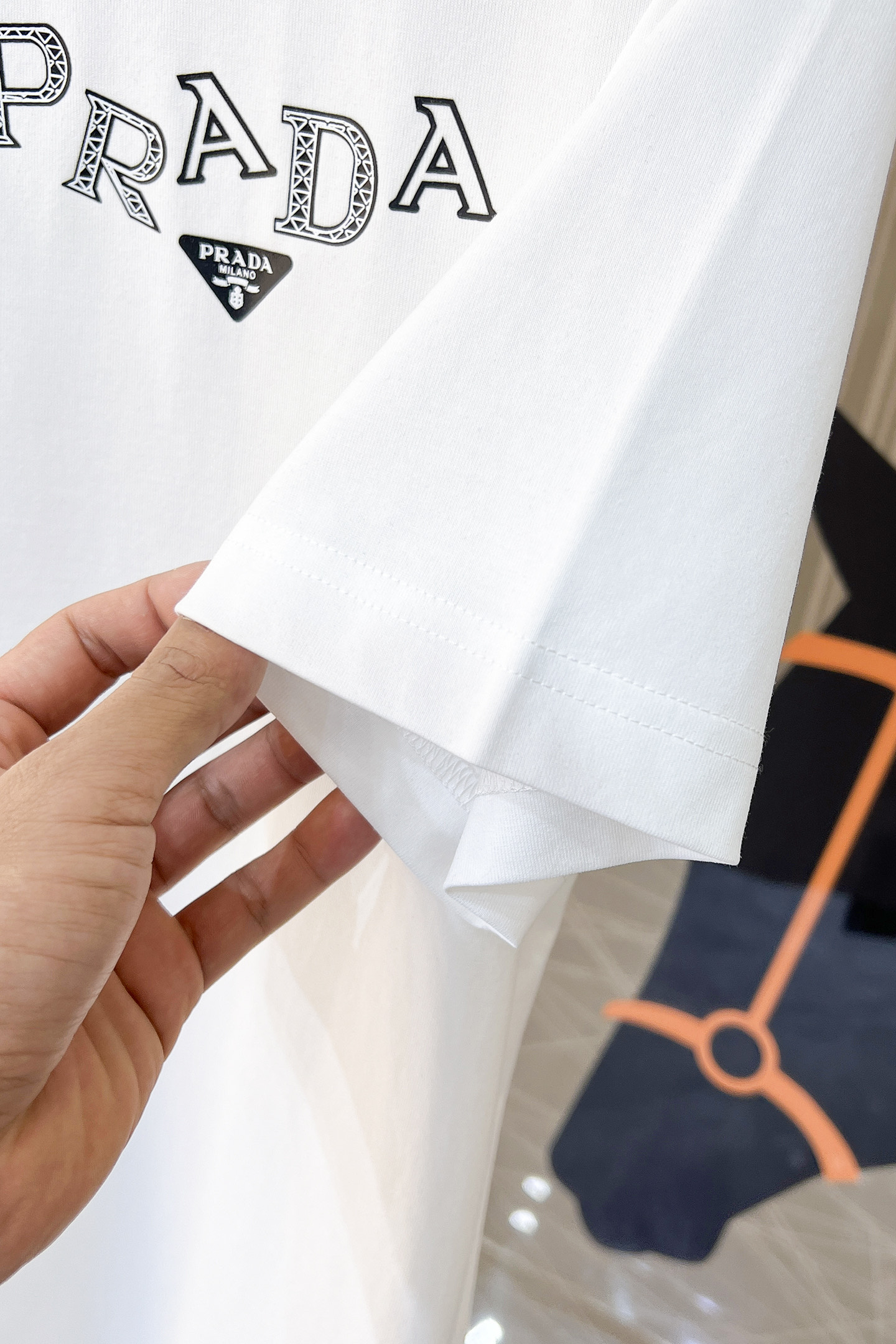 這款衣服是AAAAA 1:1 質量(非常棒). 使用了和原版一模一樣的材料. 商標部分也保持了和普拉達/Prada一樣. 圖片拍攝是實物衣服拍攝, 您所收到的實物保證和我們圖片一模一樣.