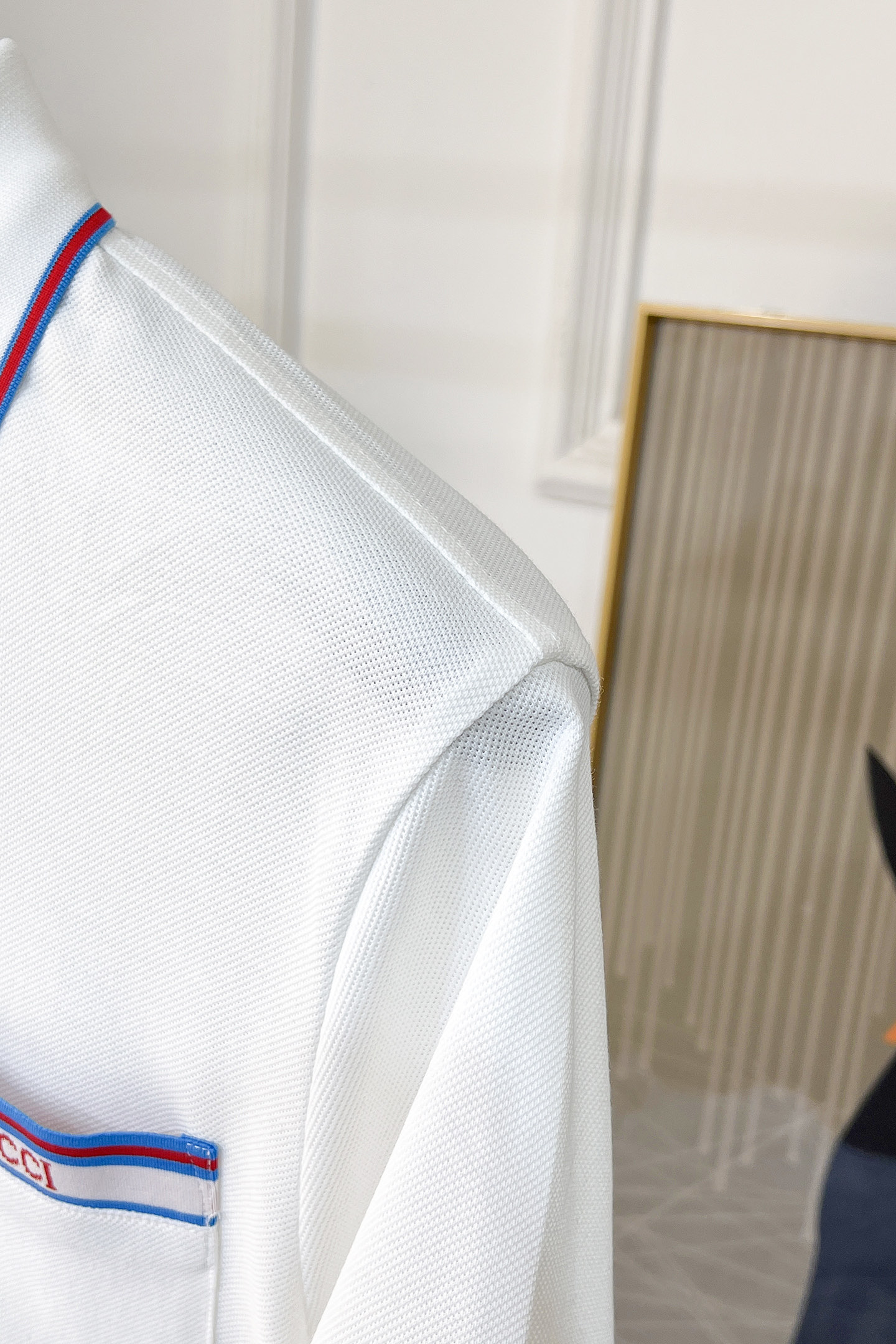 這款衣服是AAAAA 1:1 質量(非常棒). 使用了和原版一模一樣的材料. 商標部分也保持了和古奇/Gucci一樣. 圖片拍攝是實物衣服拍攝, 您所收到的實物保證和我們圖片一模一樣.