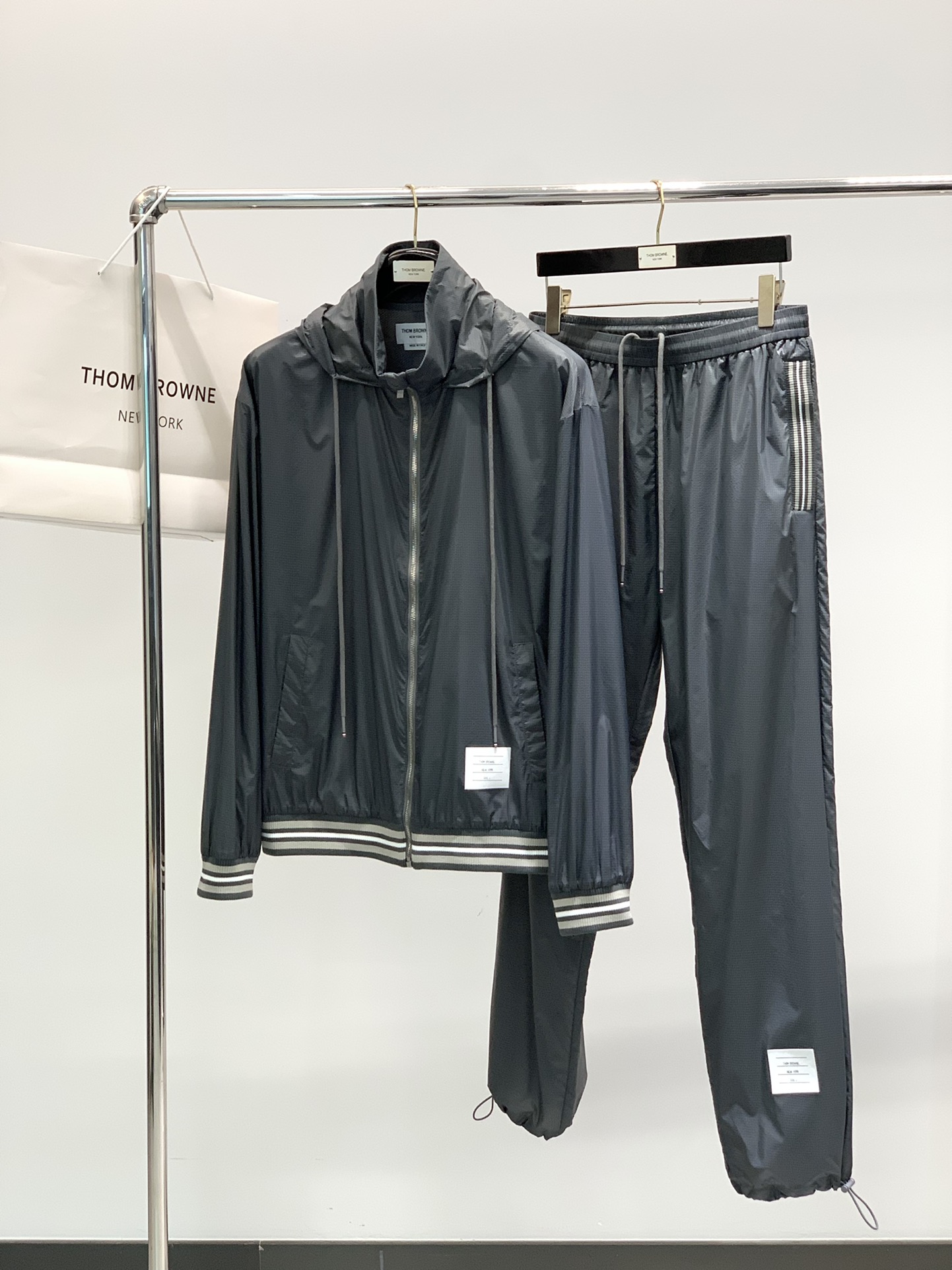 這款衣服是AAAAA 1:1 質量(非常棒). 使用了和原版一模一樣的材料. 商標部分也保持了和湯姆布朗/Thom Browne一樣. 圖片拍攝是實物衣服拍攝, 您所收到的實物保證和我們圖片一模一樣.