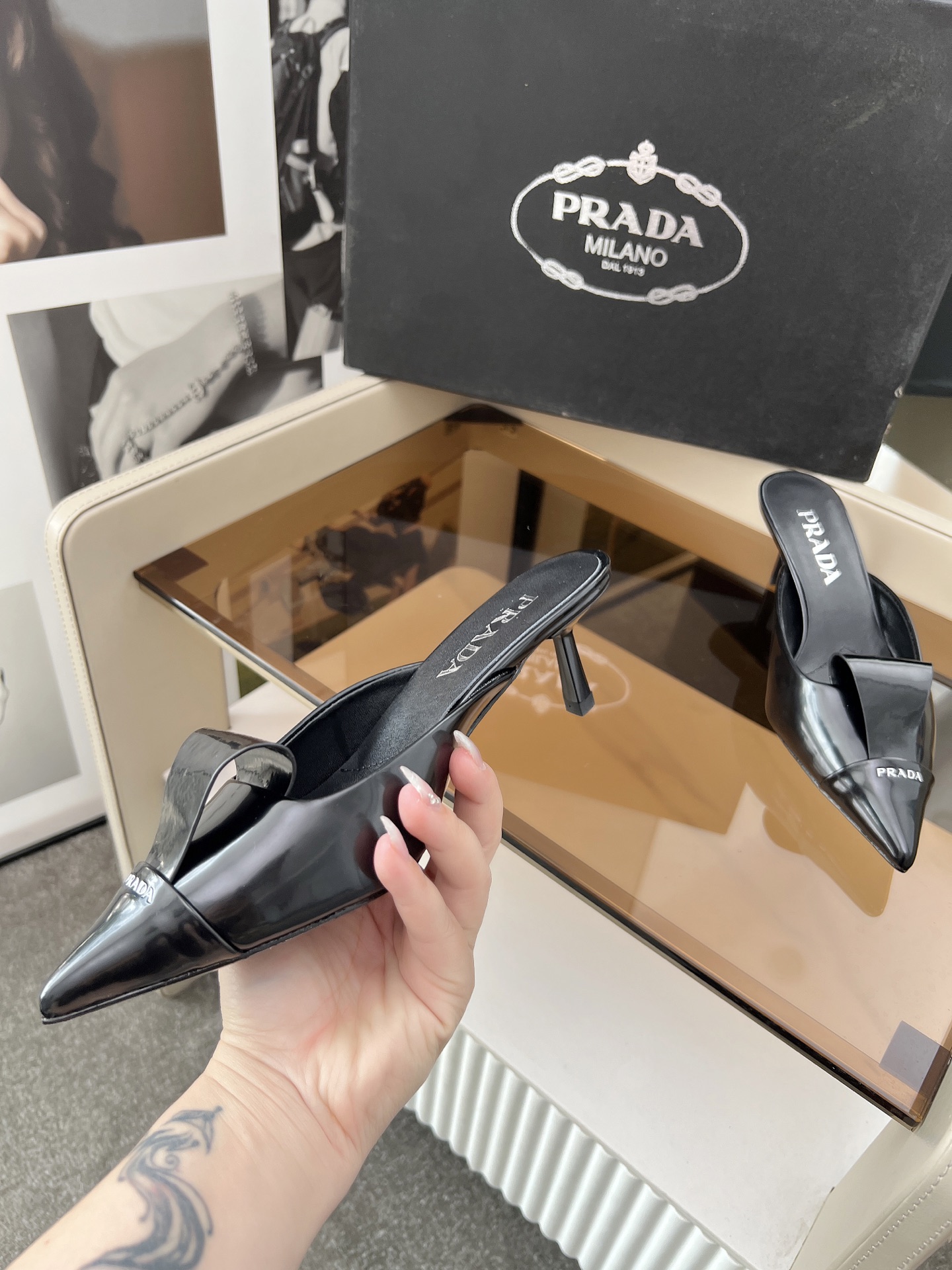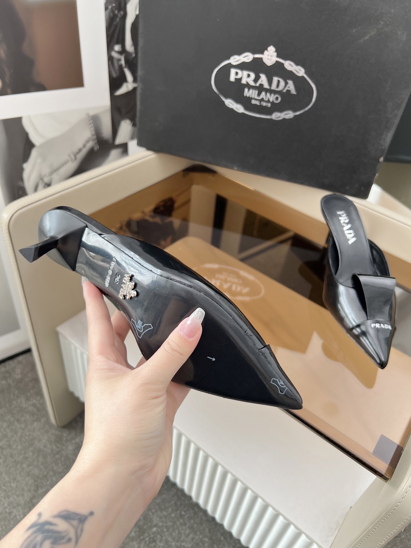 這款鞋子是AAAAA 1:1 質量(非常棒). 使用了和原版一模一樣的材料. 商標部分也保持了和普拉達/Prada一樣. 圖片拍攝是實物鞋子拍攝, 您所收到的實物保證和我們圖片一模一樣.