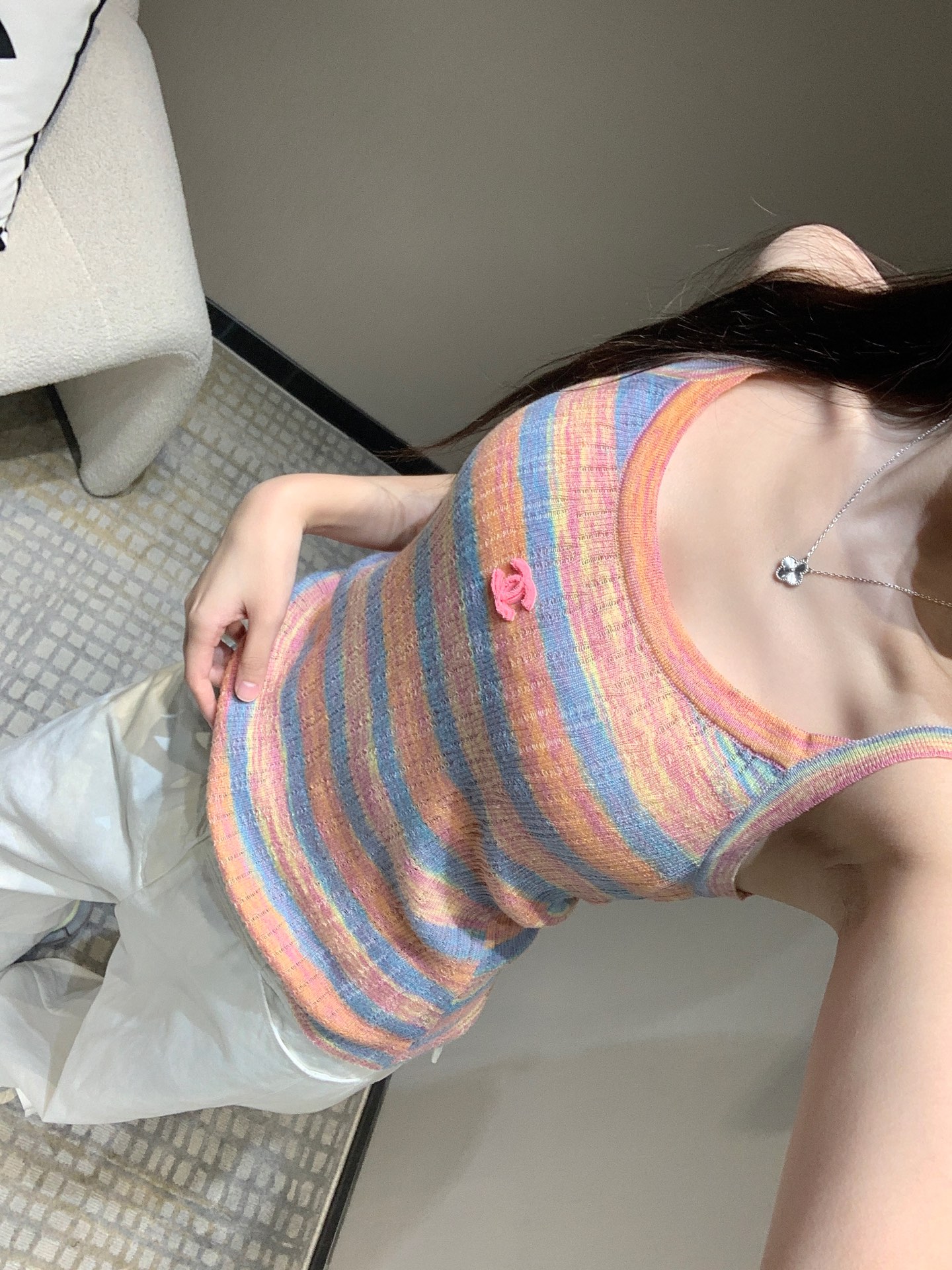 這款衣服是AAAAA 1:1 質量(非常棒). 使用了和原版一模一樣的材料. 商標部分也保持了和香奈兒/Chanel一樣. 圖片拍攝是實物衣服拍攝, 您所收到的實物保證和我們圖片一模一樣.