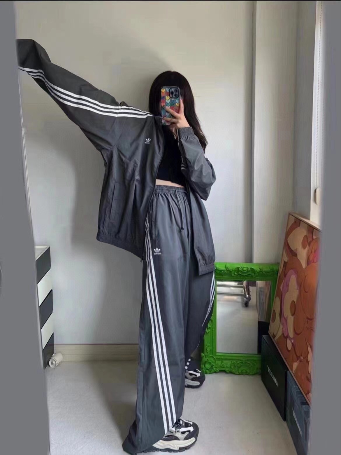 這款衣服是AAAAA 1:1 質量(非常棒). 使用了和原版一模一樣的材料. 商標部分也保持了和阿迪達斯/Adidas一樣. 圖片拍攝是實物衣服拍攝, 您所收到的實物保證和我們圖片一模一樣.