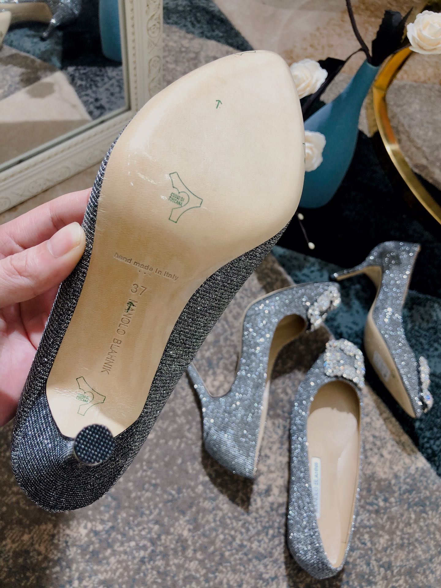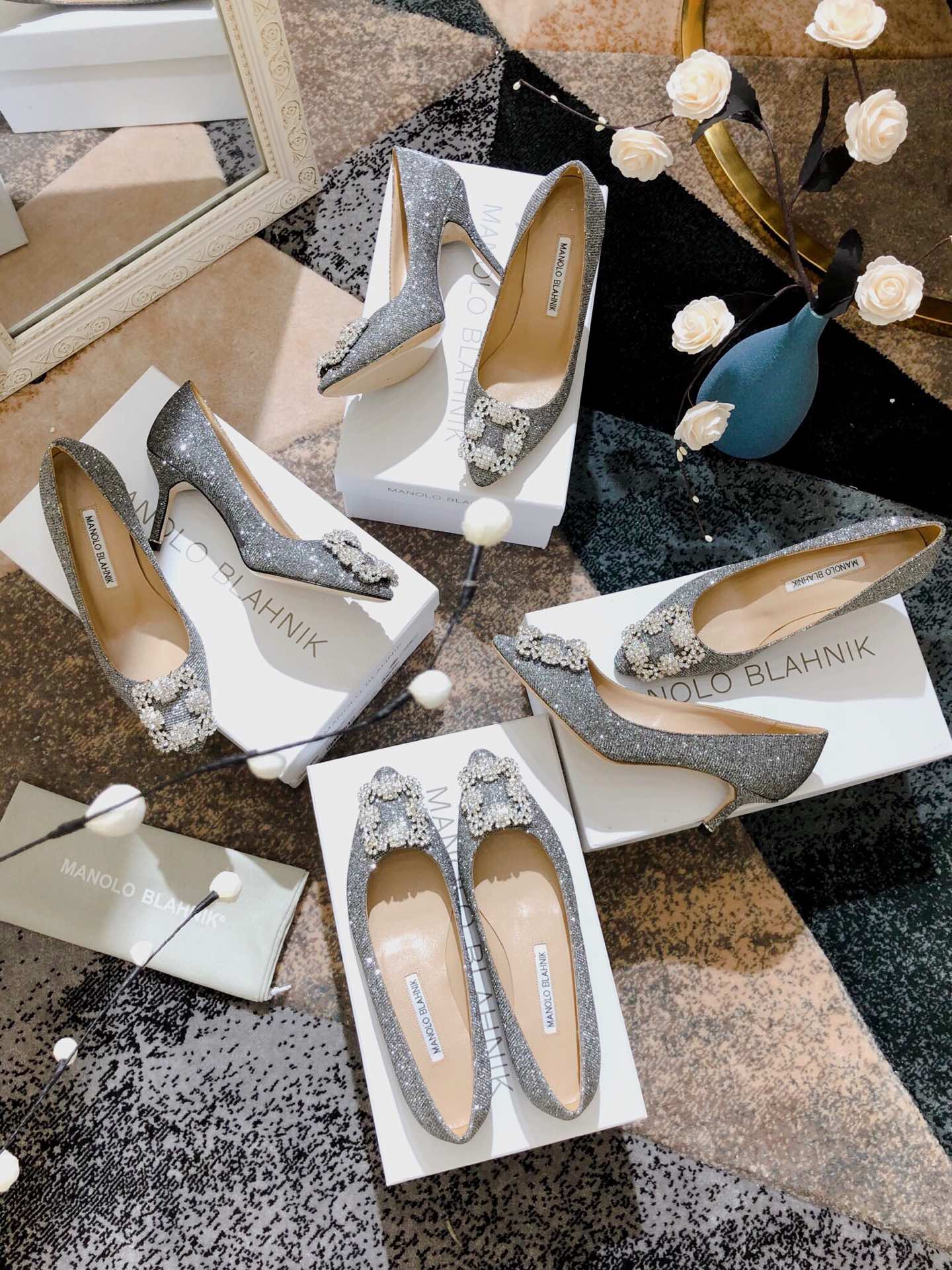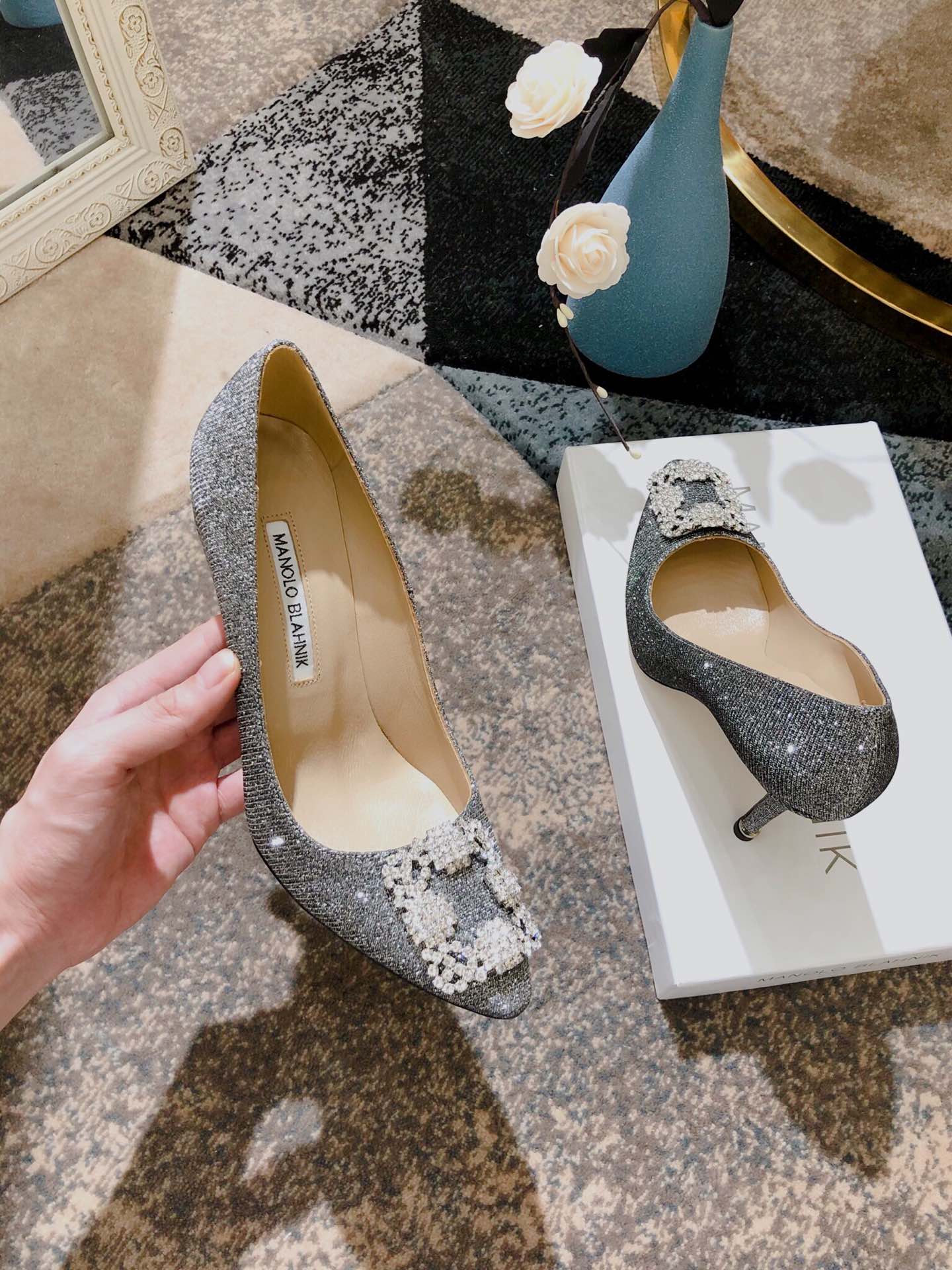 這款鞋子是AAAAA 1:1 質量(非常棒). 使用了和原版一模一樣的材料. 商標部分也保持了和馬諾洛·布拉尼克/Manolo Blahnik一樣. 圖片拍攝是實物鞋子拍攝, 您所收到的實物保證和我們圖片一模一樣.