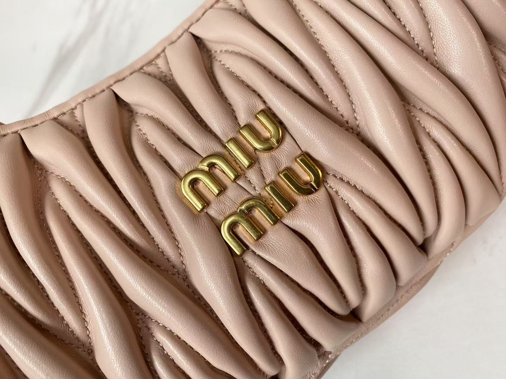 這款包包是AAAAA 1:1 質量(非常棒). 使用了和原版一模一樣的材料. 商標部分也保持了和繆繆/Miu Miu一樣. 圖片拍攝是實物包包拍攝, 您所收到的實物保證和我們圖片一模一樣.