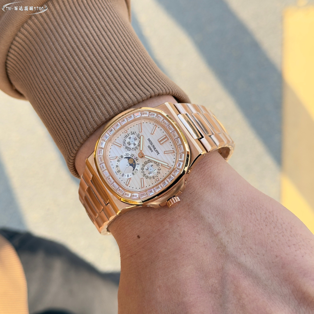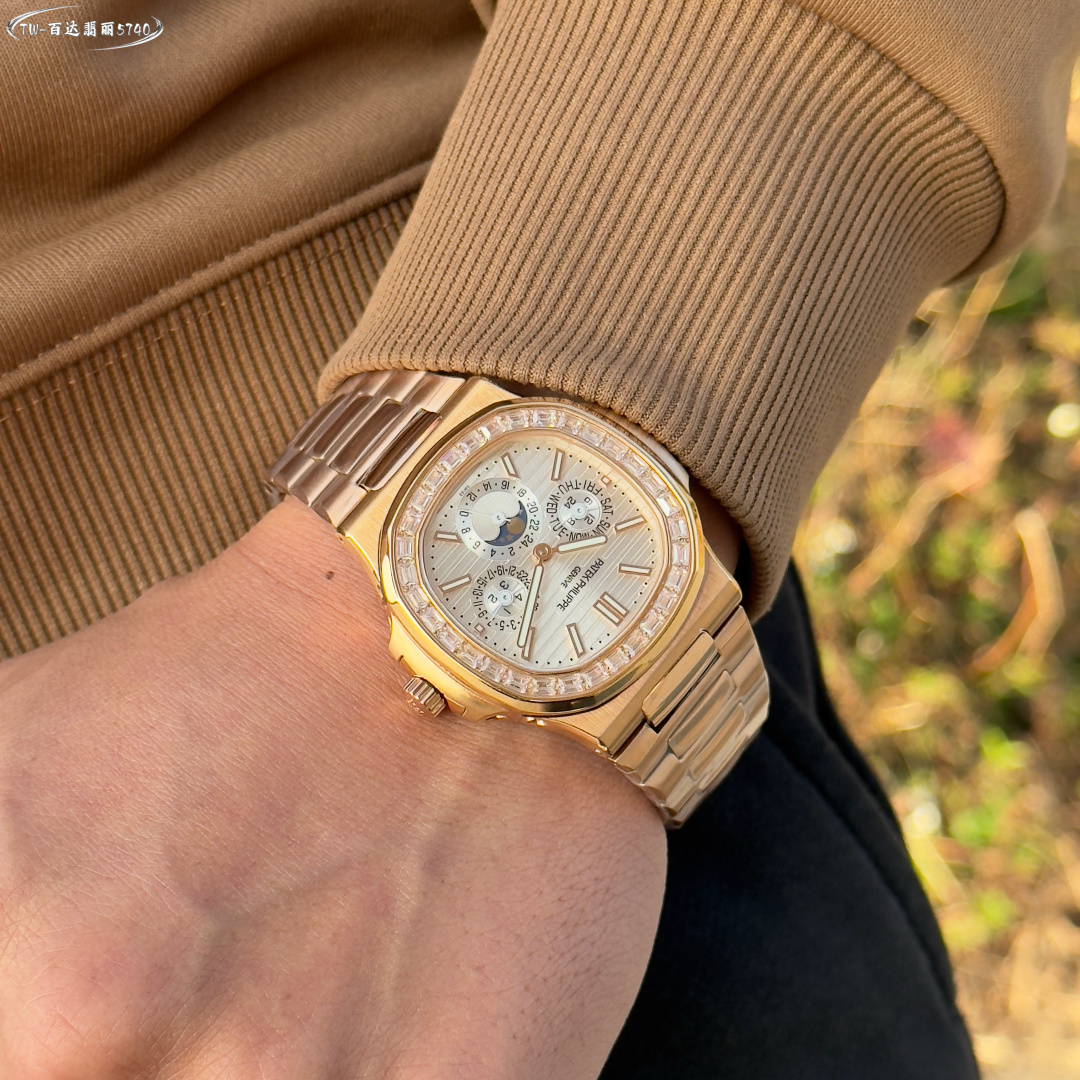 這款手錶是AAAAA 1:1 質量(非常棒). 使用了和原版一模一樣的材料. 商標部分也保持了和百達翡麗/Patek Philippe一樣. 圖片拍攝是實物手錶拍攝, 您所收到的實物保證和我們圖片一模一樣.