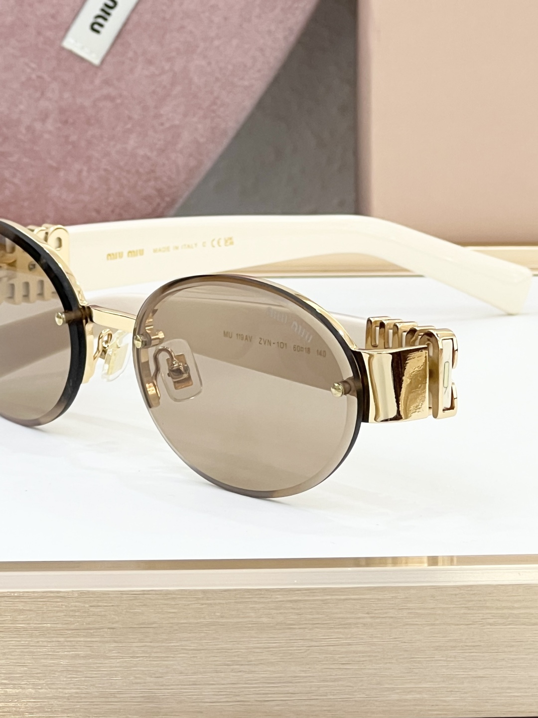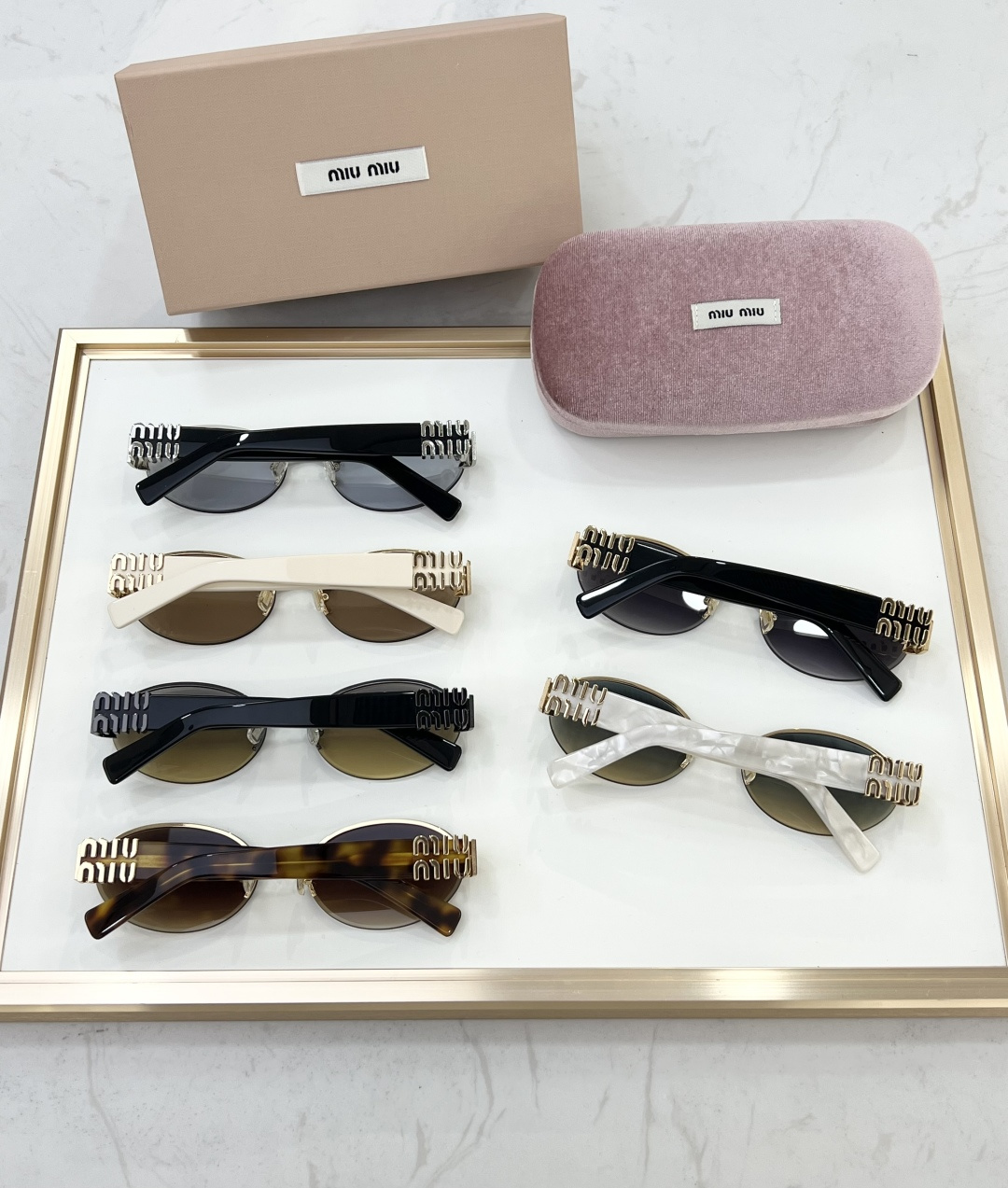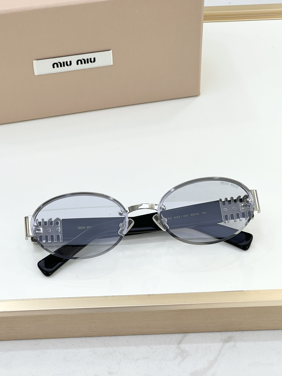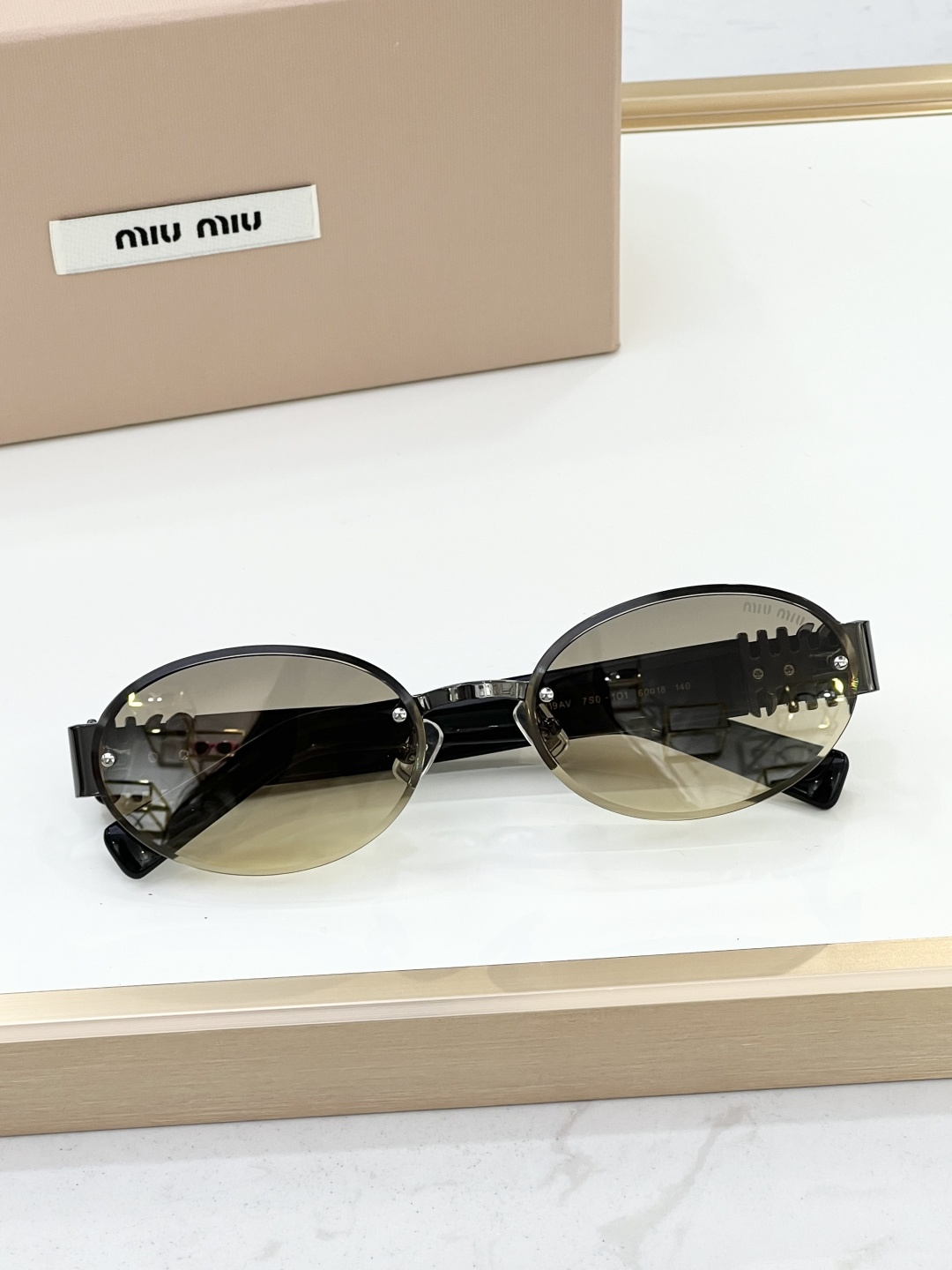 這款太陽眼鏡是AAAAA 1:1 質量(非常棒). 使用了和原版一模一樣的材料. 商標部分也保持了和繆繆/Miu Miu一樣. 圖片拍攝是實物太陽眼鏡拍攝, 您所收到的實物保證和我們圖片一模一樣.