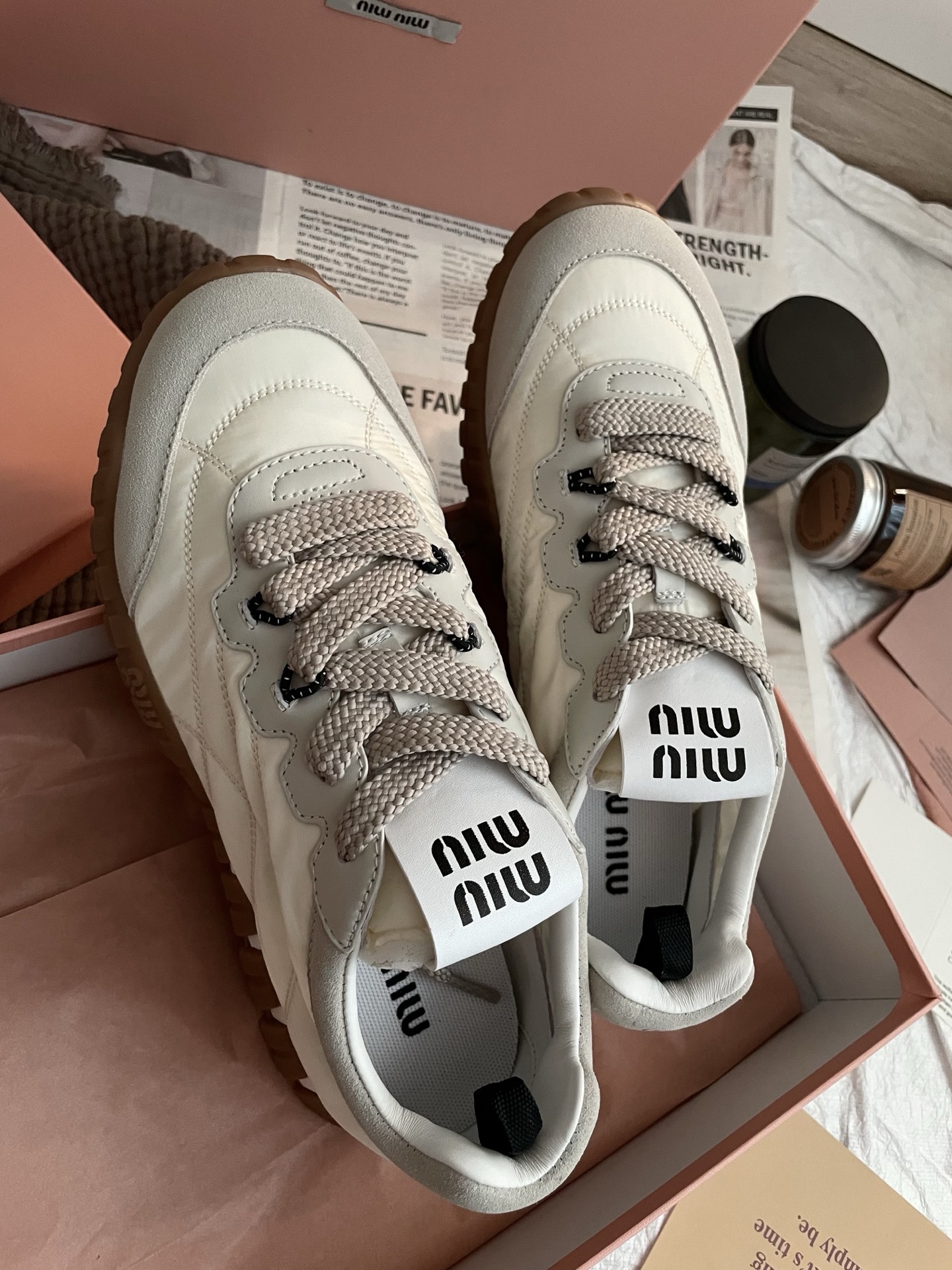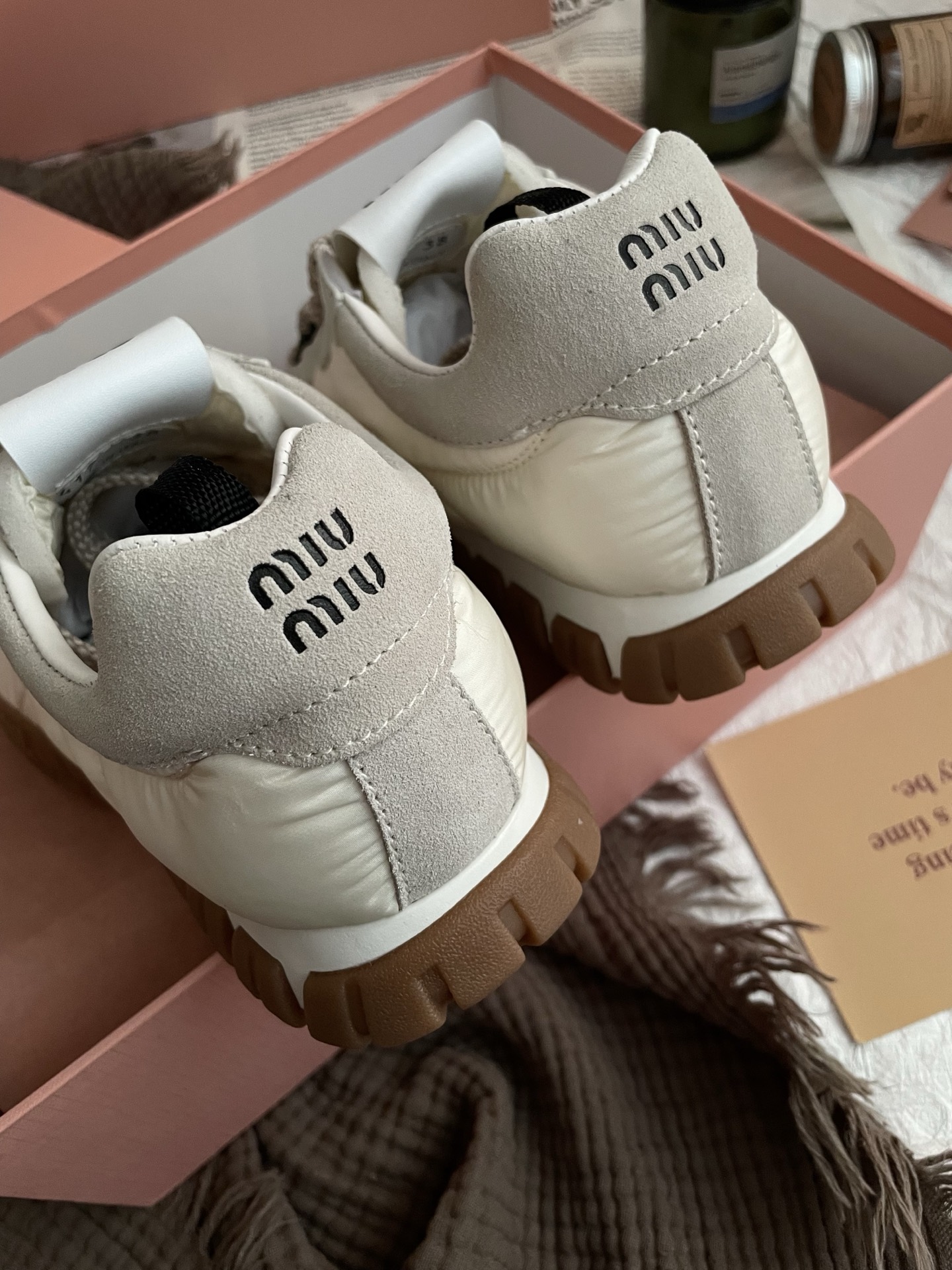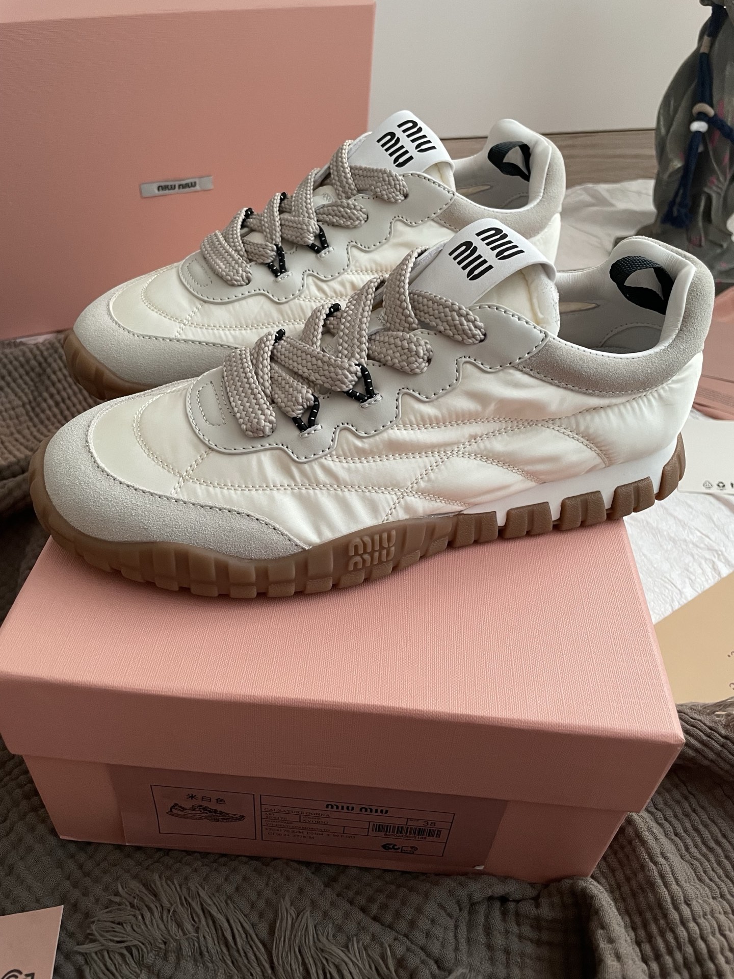這款鞋子是AAAAA 1:1 質量(非常棒). 使用了和原版一模一樣的材料. 商標部分也保持了和繆繆/Miu Miu一樣. 圖片拍攝是實物鞋子拍攝, 您所收到的實物保證和我們圖片一模一樣.