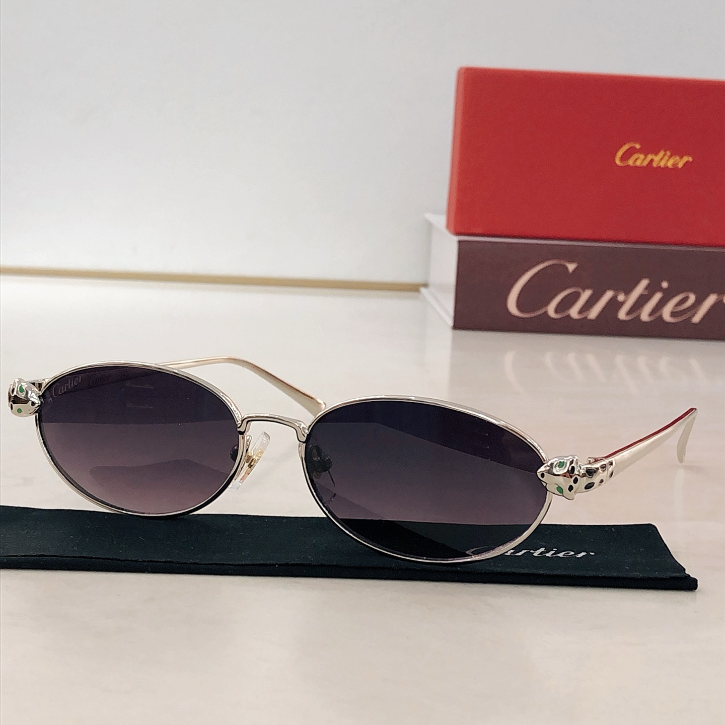 這款太陽眼鏡是AAAAA 1:1 質量(非常棒). 使用了和原版一模一樣的材料. 商標部分也保持了和卡地亞/Cartier一樣. 圖片拍攝是實物太陽眼鏡拍攝, 您所收到的實物保證和我們圖片一模一樣.