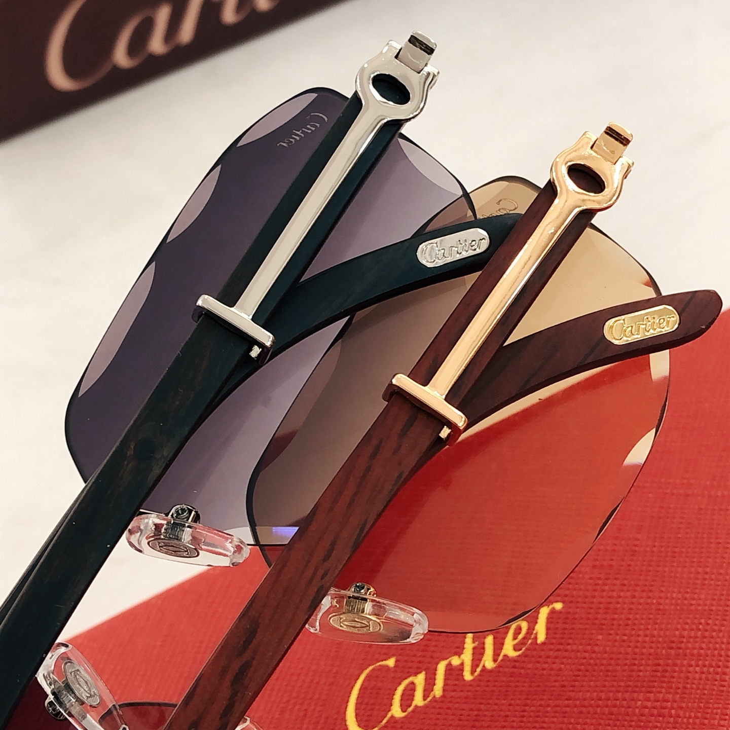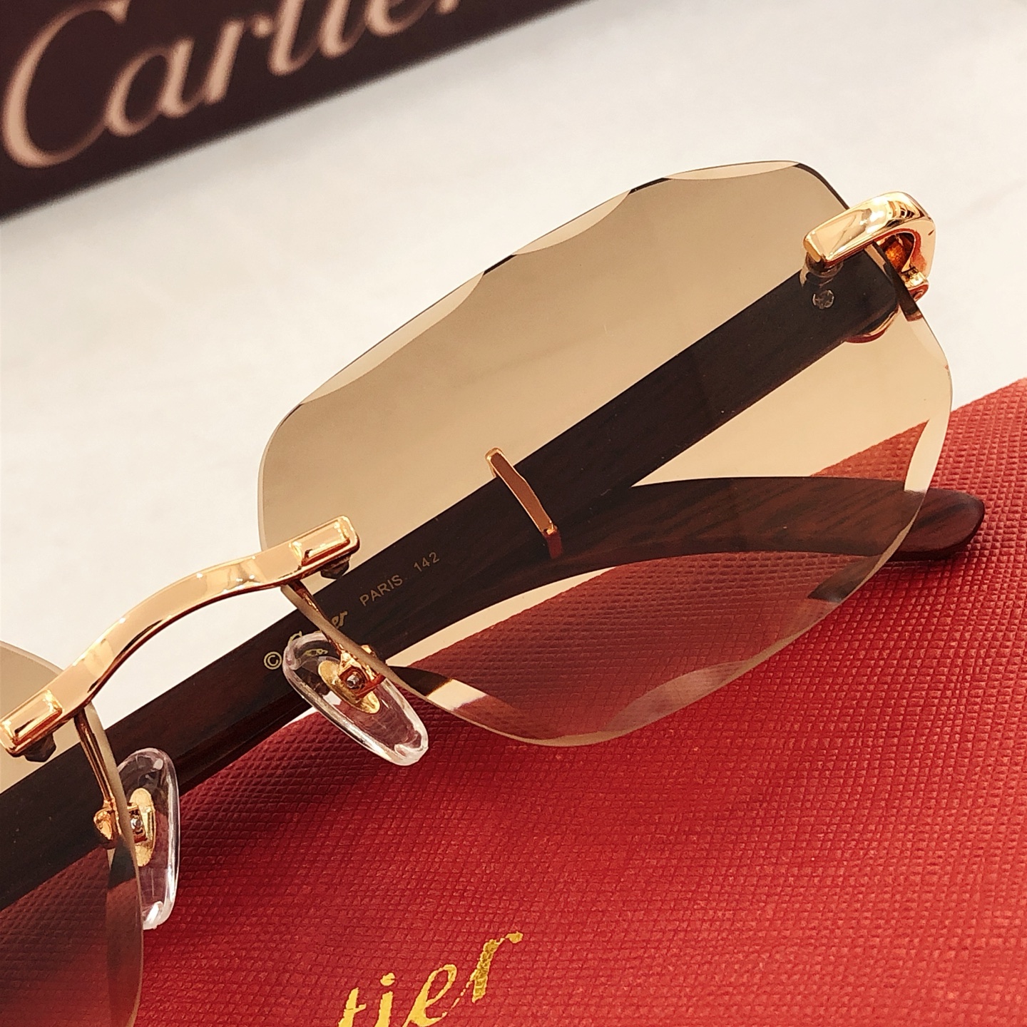 這款太陽眼鏡是AAAAA 1:1 質量(非常棒). 使用了和原版一模一樣的材料. 商標部分也保持了和卡地亞/Cartier一樣. 圖片拍攝是實物太陽眼鏡拍攝, 您所收到的實物保證和我們圖片一模一樣.