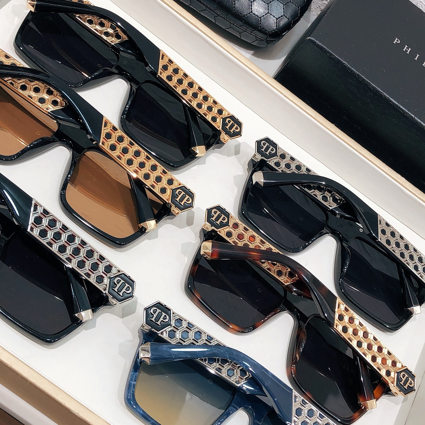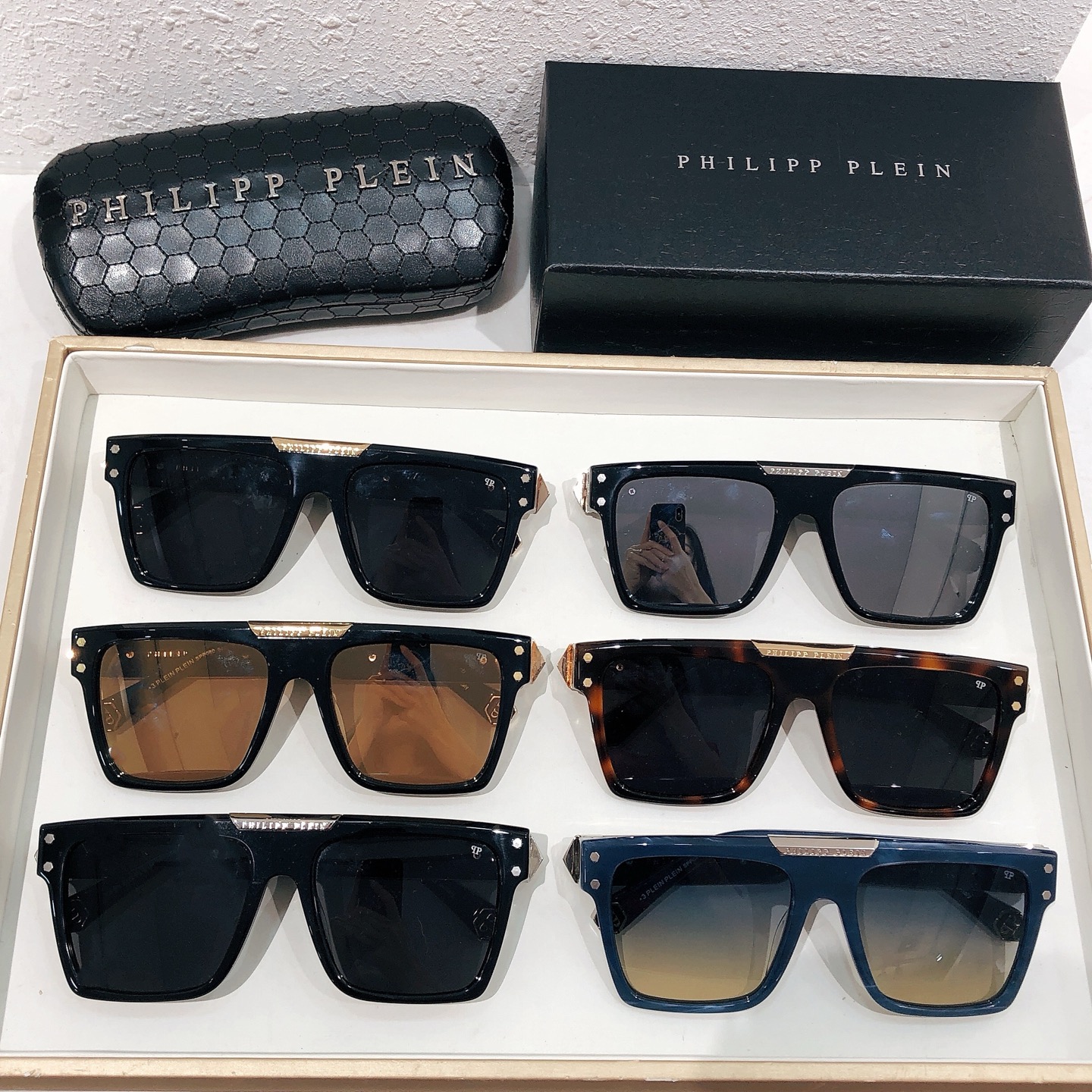 這款太陽眼鏡是AAAAA 1:1 質量(非常棒). 使用了和原版一模一樣的材料. 商標部分也保持了和菲利普·普林/Philipp Plein一樣. 圖片拍攝是實物太陽眼鏡拍攝, 您所收到的實物保證和我們圖片一模一樣.
