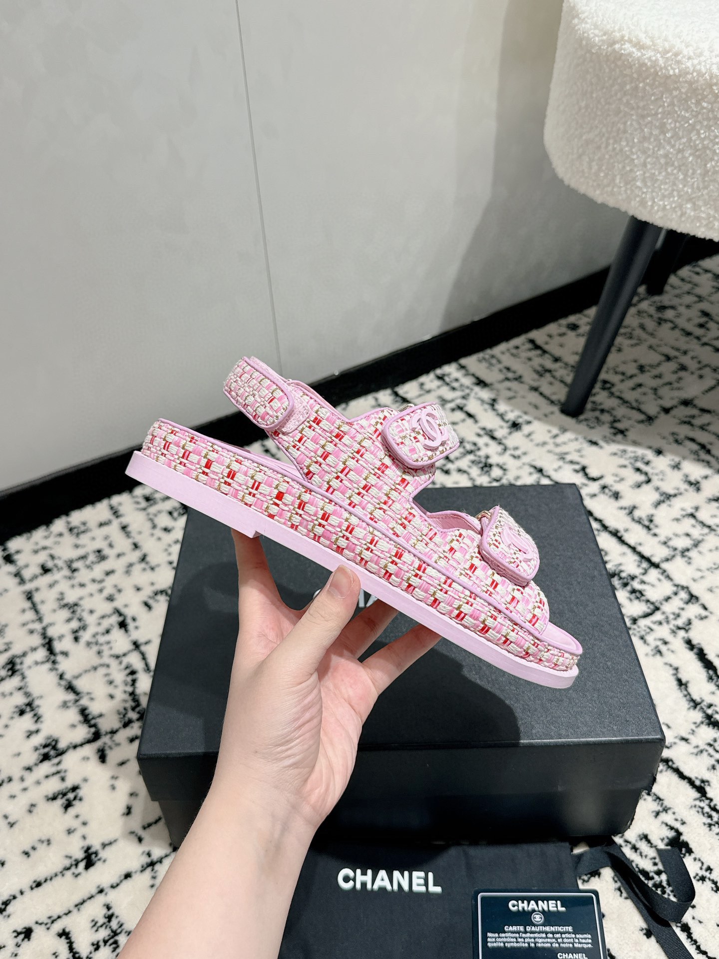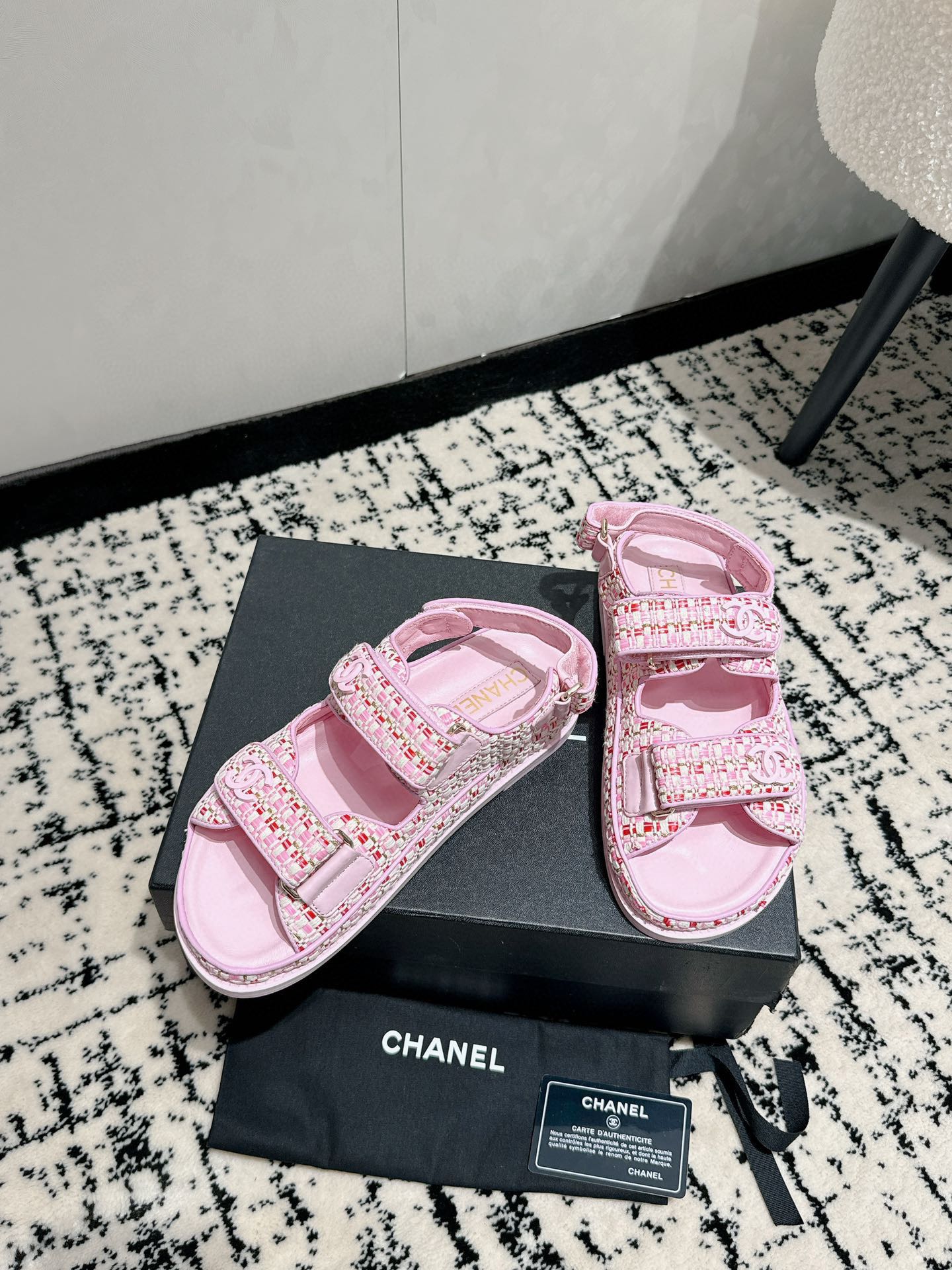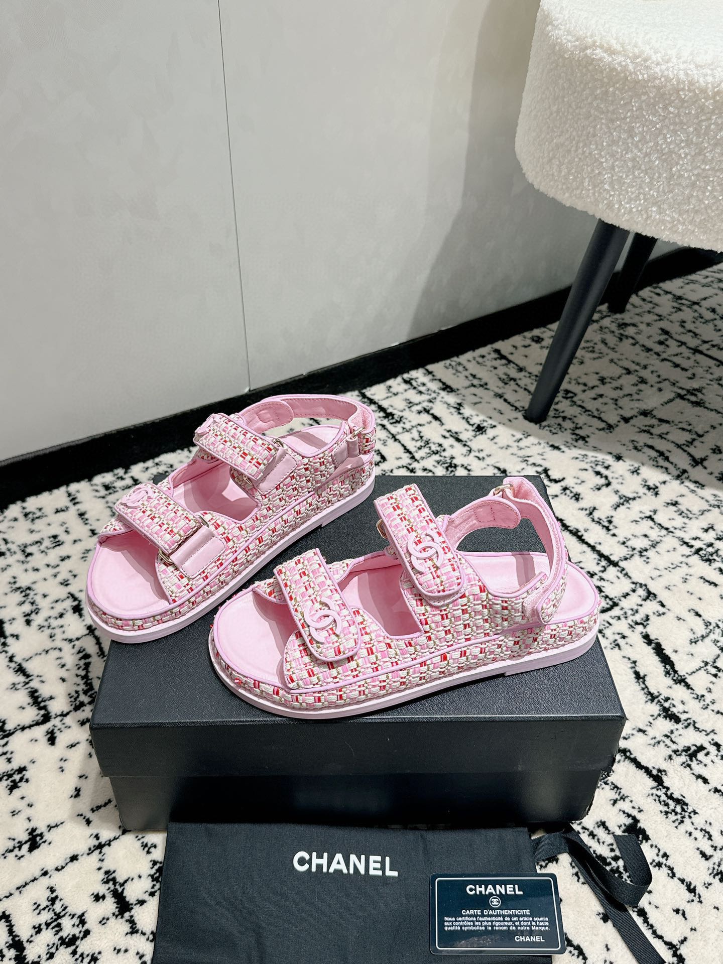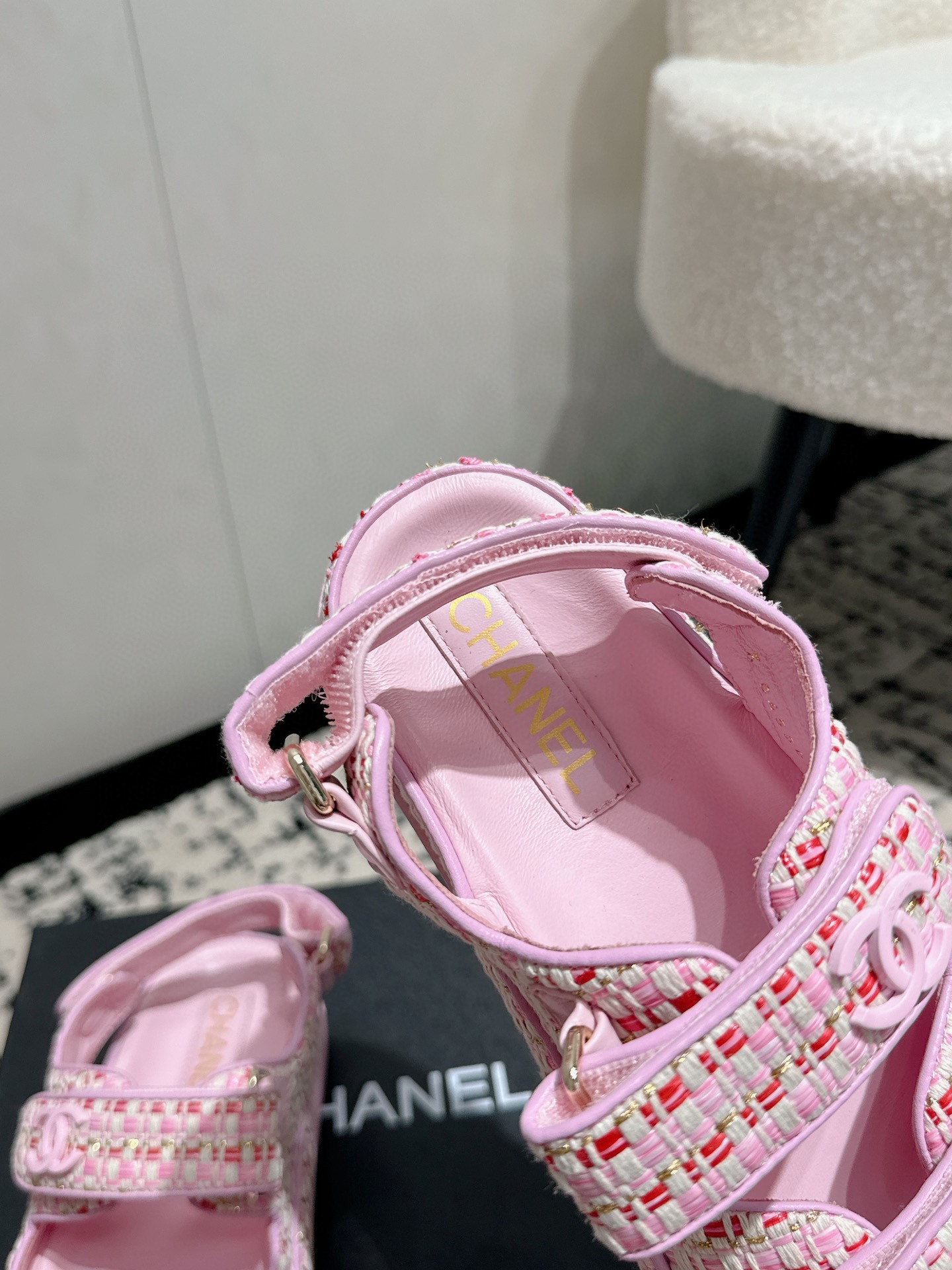 這款鞋子是AAAAA 1:1 質量(非常棒). 使用了和原版一模一樣的材料. 商標部分也保持了和香奈兒/Chanel一樣. 圖片拍攝是實物鞋子拍攝, 您所收到的實物保證和我們圖片一模一樣.