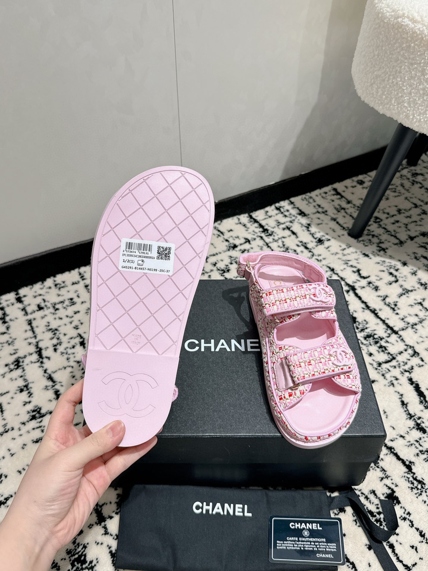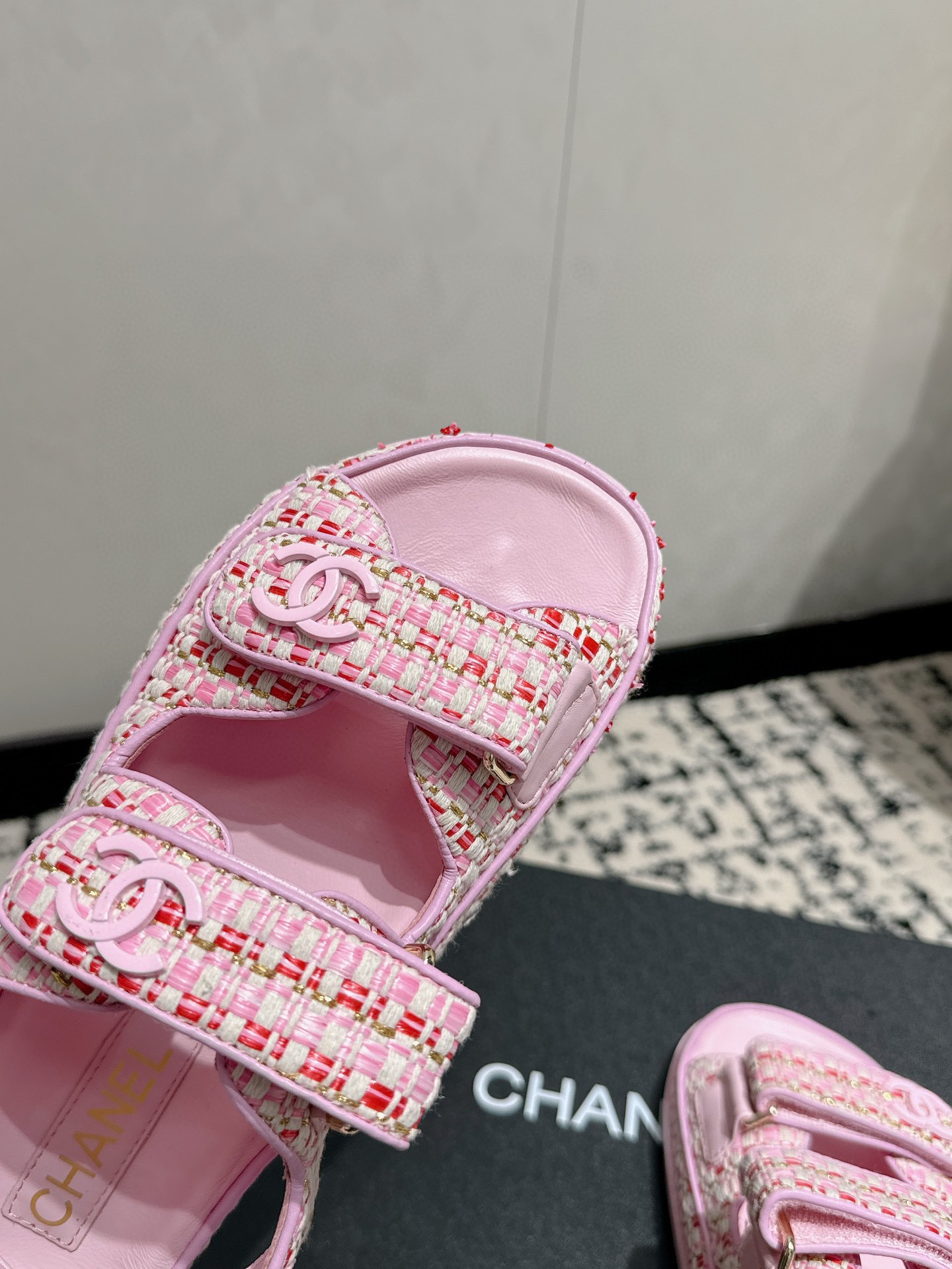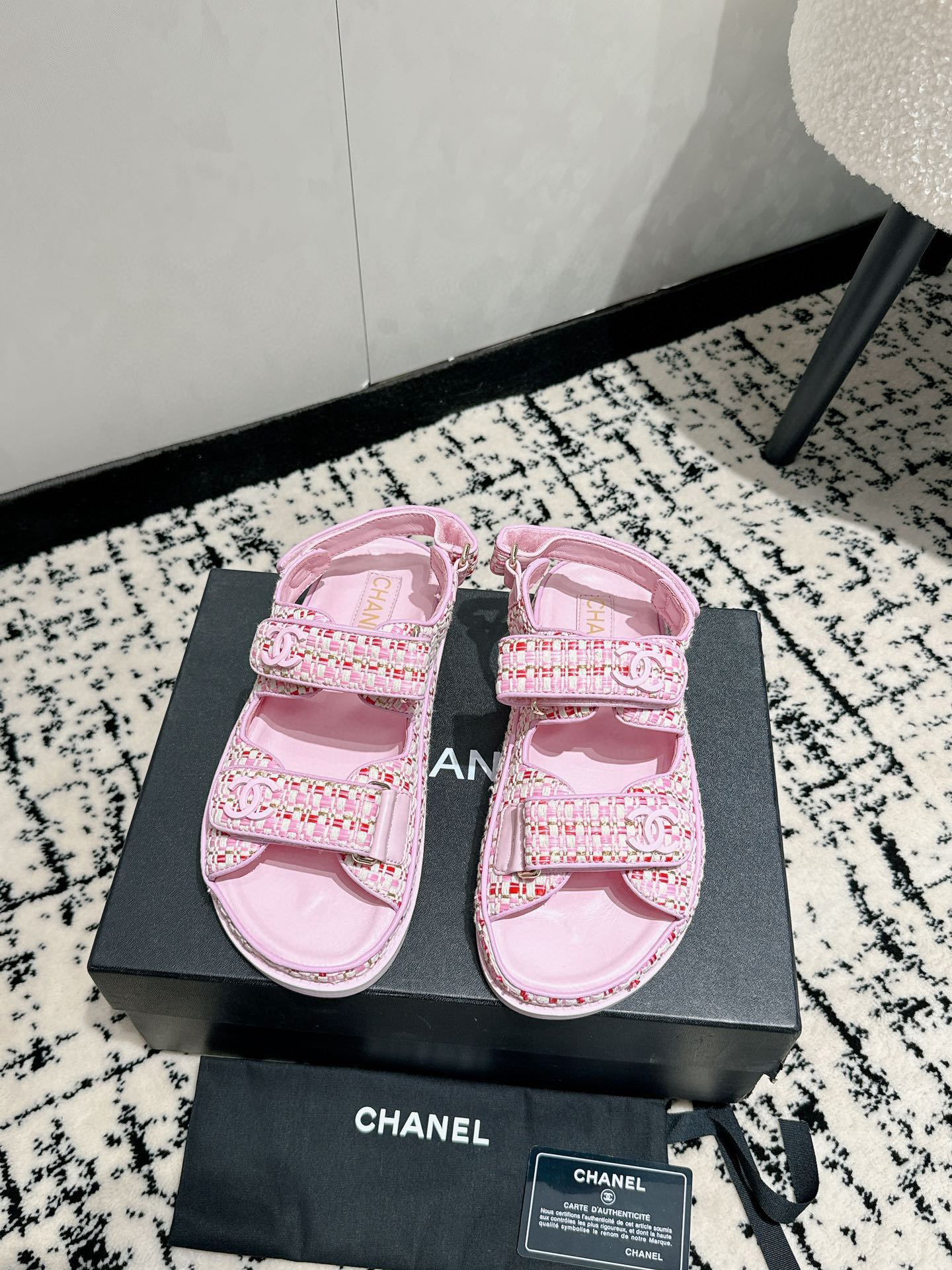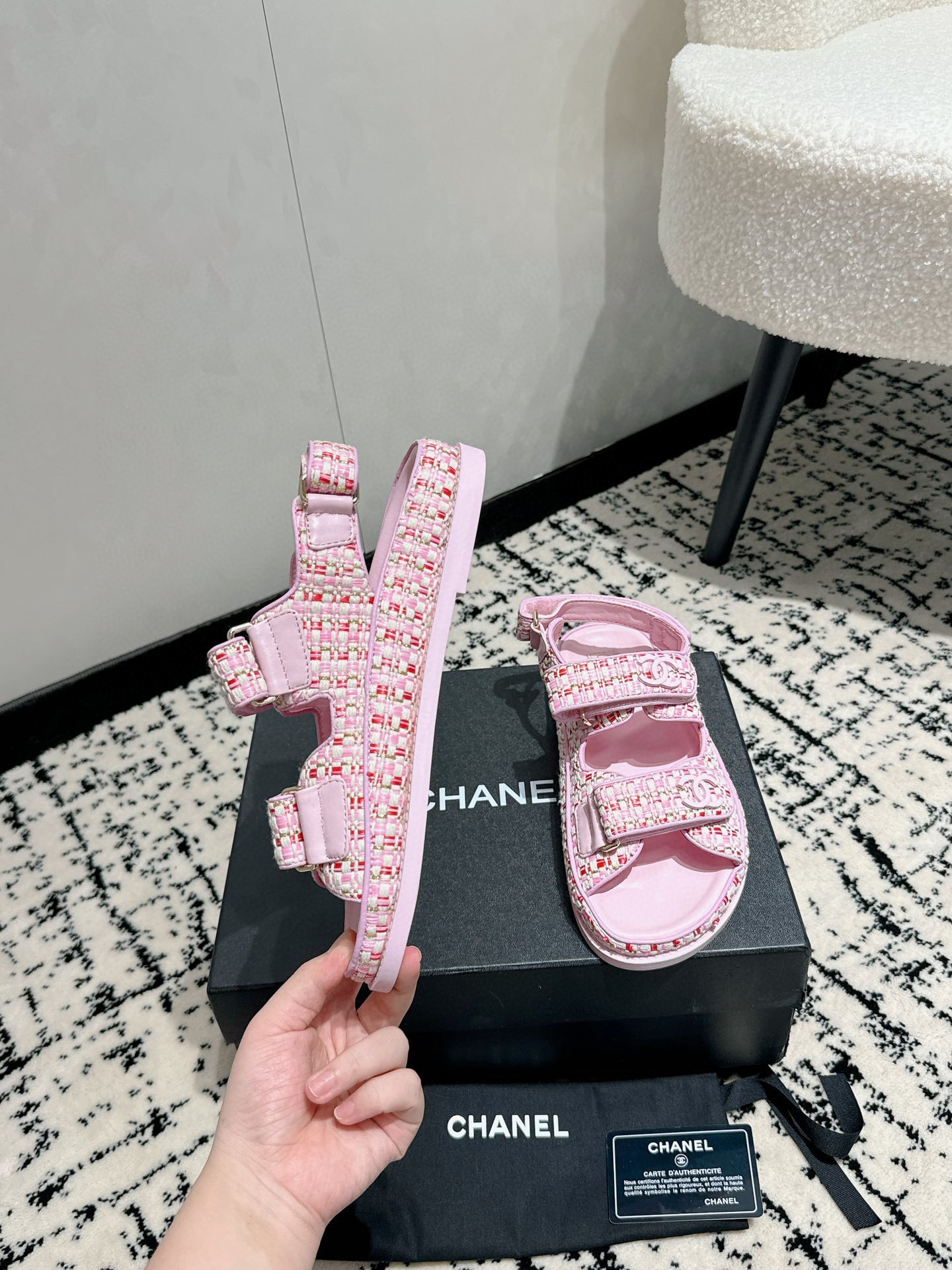 這款鞋子是AAAAA 1:1 質量(非常棒). 使用了和原版一模一樣的材料. 商標部分也保持了和香奈兒/Chanel一樣. 圖片拍攝是實物鞋子拍攝, 您所收到的實物保證和我們圖片一模一樣.