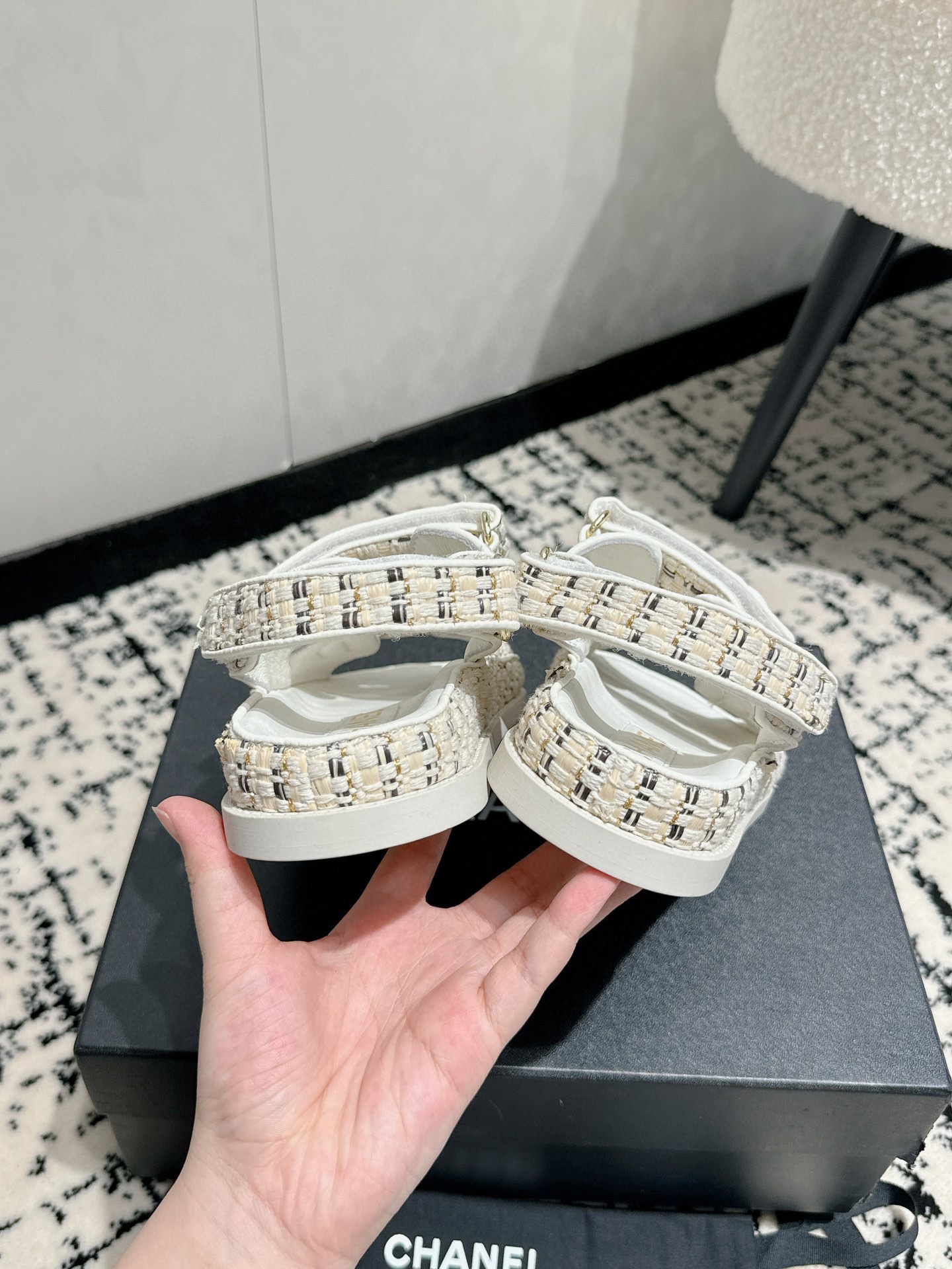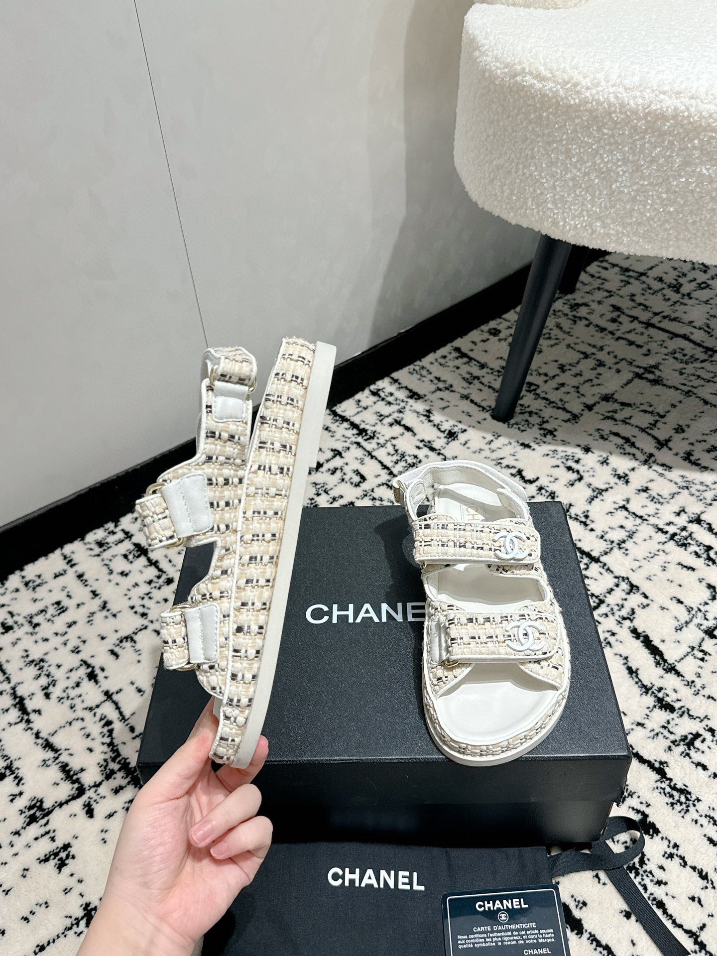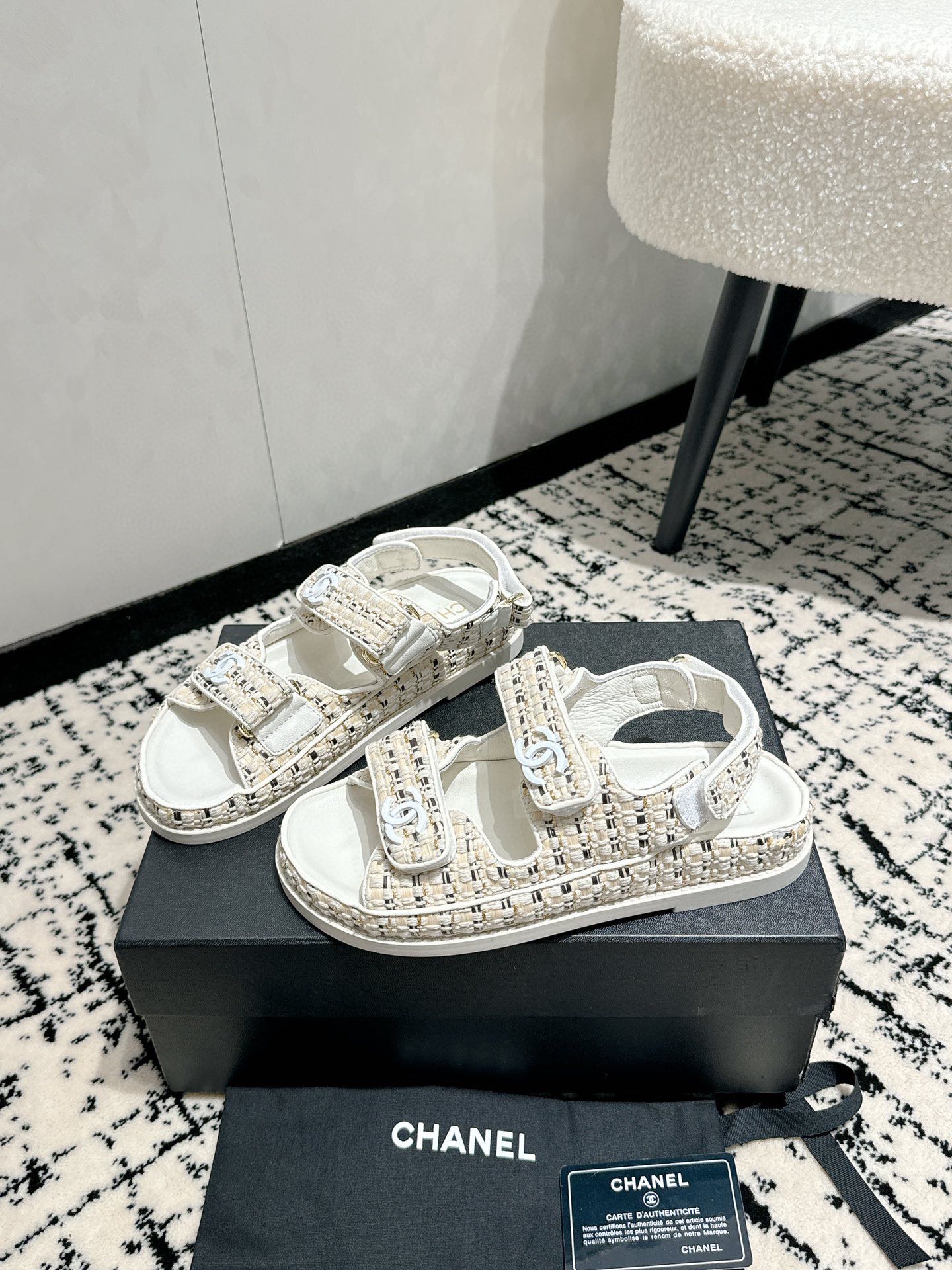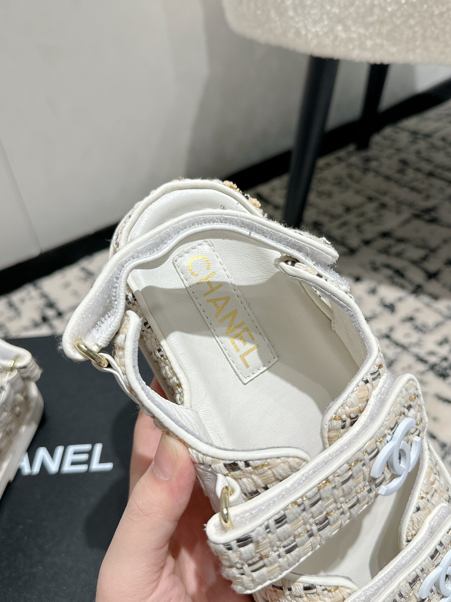 這款鞋子是AAAAA 1:1 質量(非常棒). 使用了和原版一模一樣的材料. 商標部分也保持了和香奈兒/Chanel一樣. 圖片拍攝是實物鞋子拍攝, 您所收到的實物保證和我們圖片一模一樣.