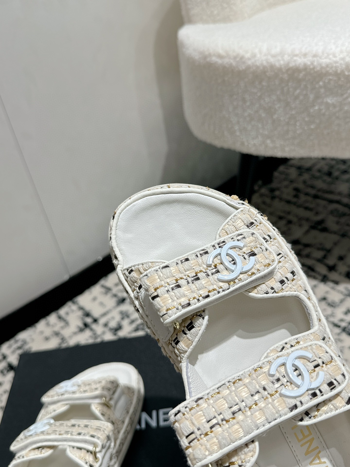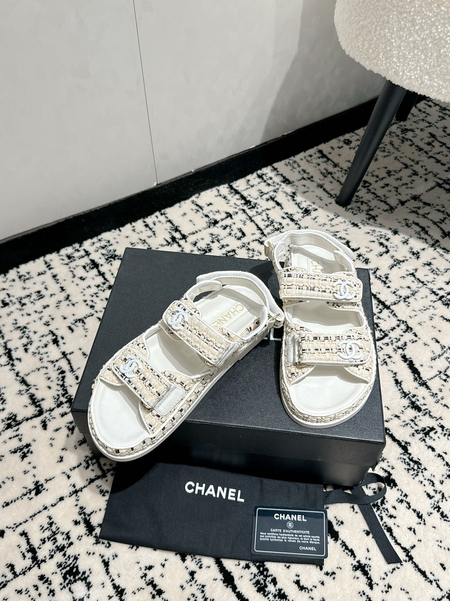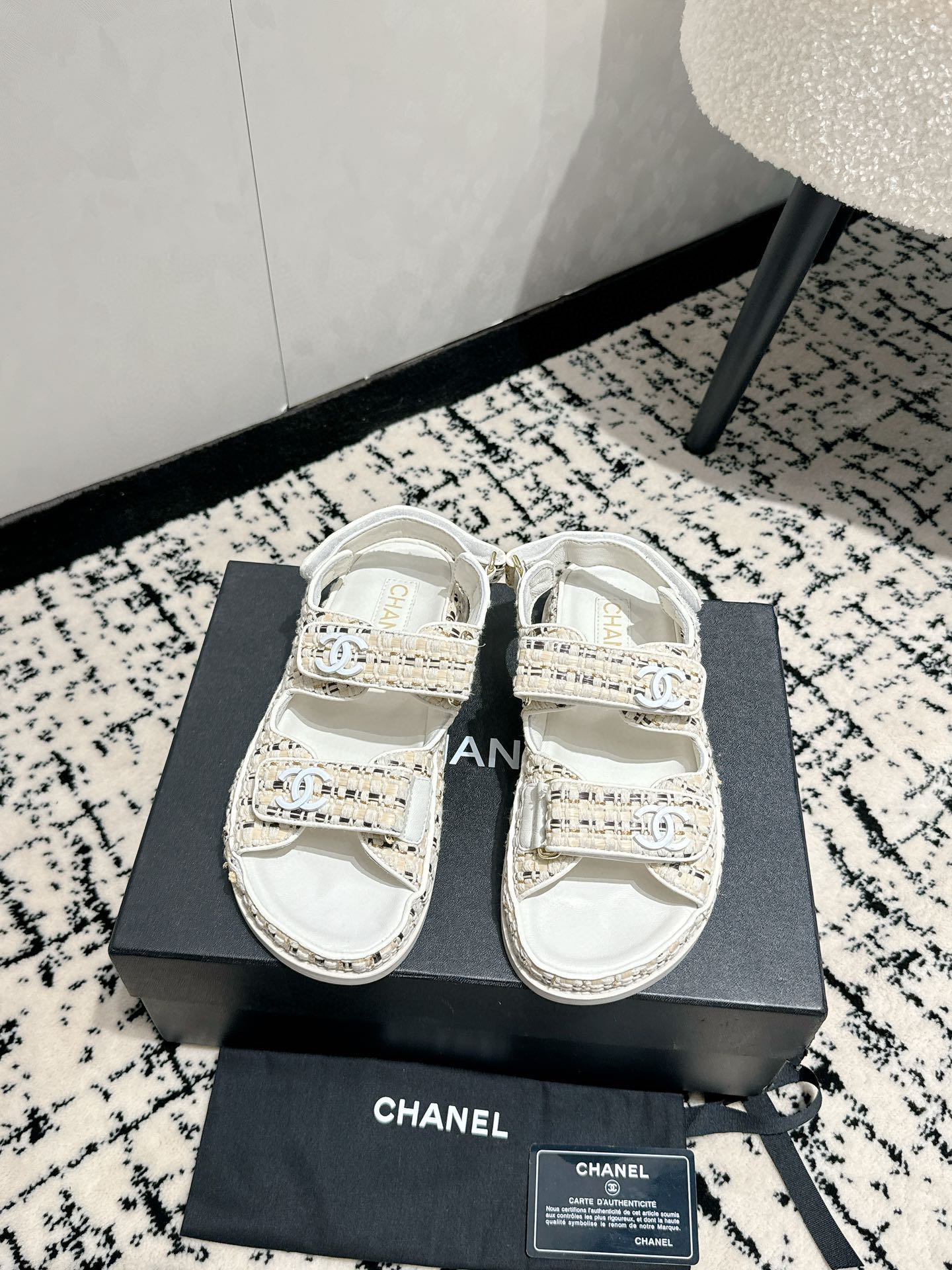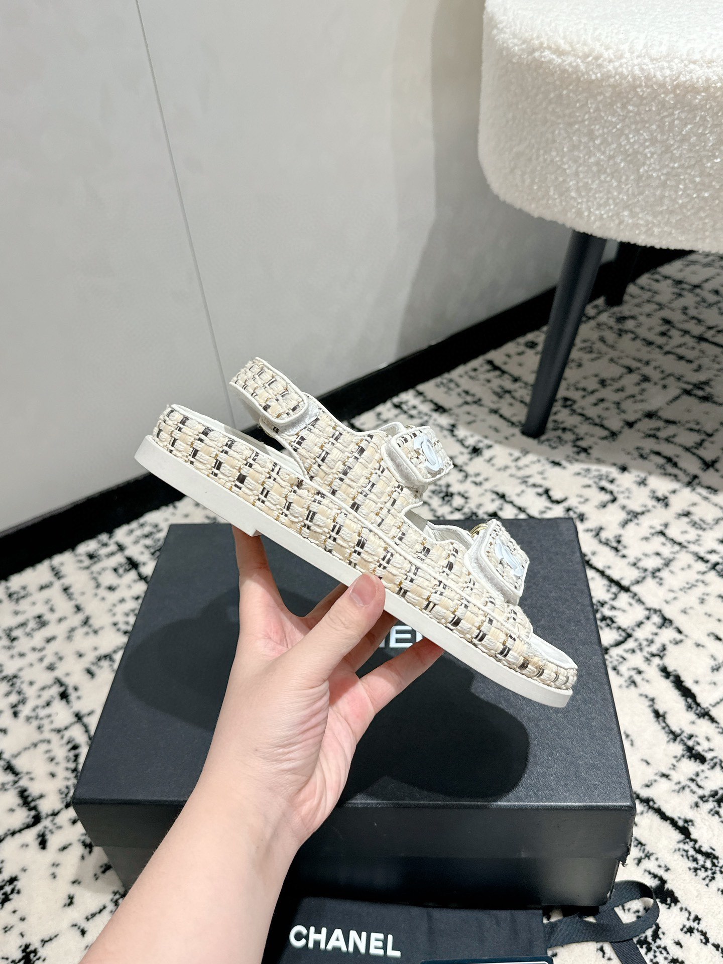 這款鞋子是AAAAA 1:1 質量(非常棒). 使用了和原版一模一樣的材料. 商標部分也保持了和香奈兒/Chanel一樣. 圖片拍攝是實物鞋子拍攝, 您所收到的實物保證和我們圖片一模一樣.