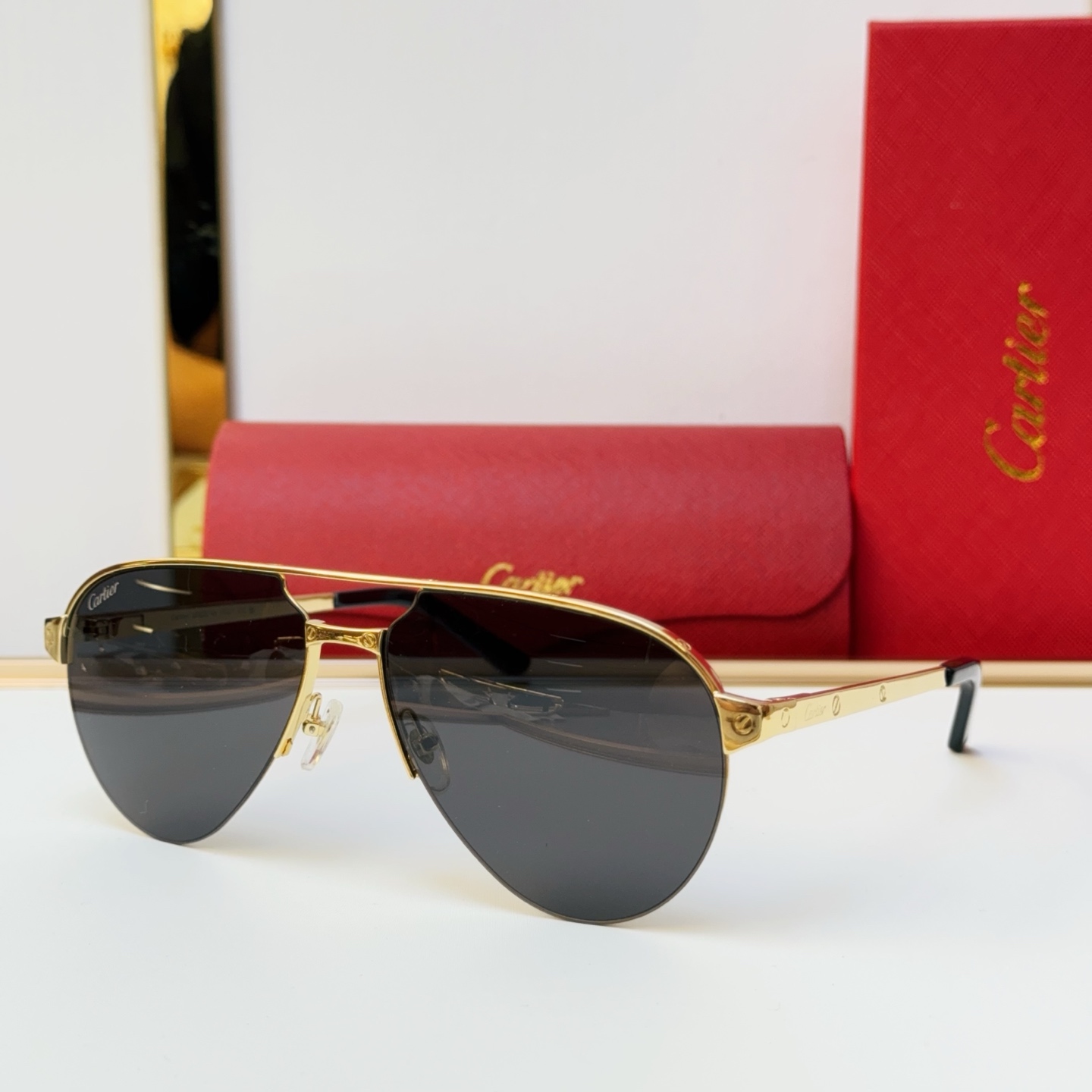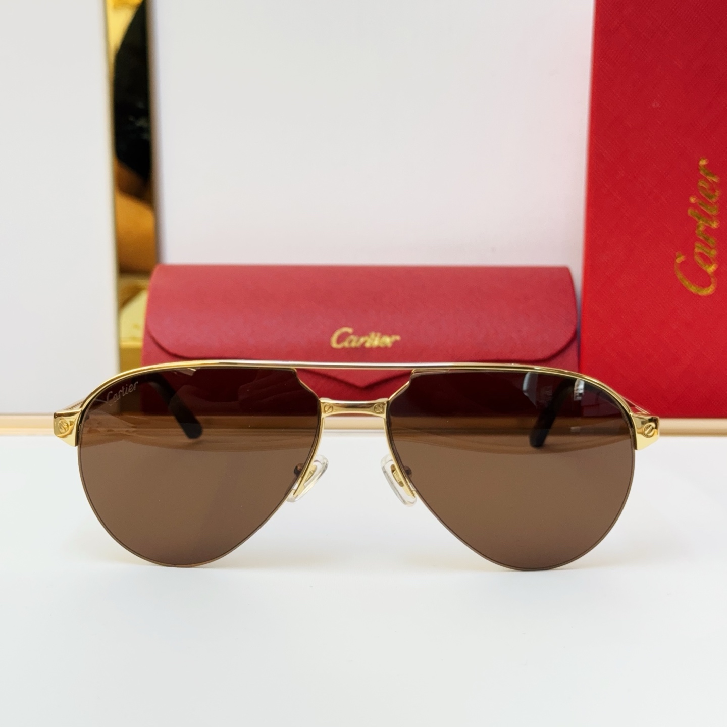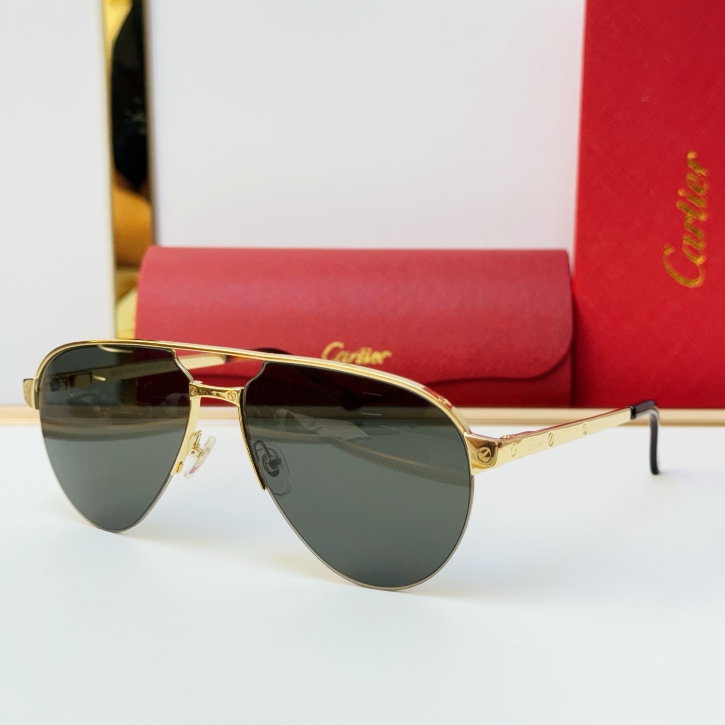 這款太陽眼鏡是AAAAA 1:1 質量(非常棒). 使用了和原版一模一樣的材料. 商標部分也保持了和卡地亞/Cartier一樣. 圖片拍攝是實物太陽眼鏡拍攝, 您所收到的實物保證和我們圖片一模一樣.