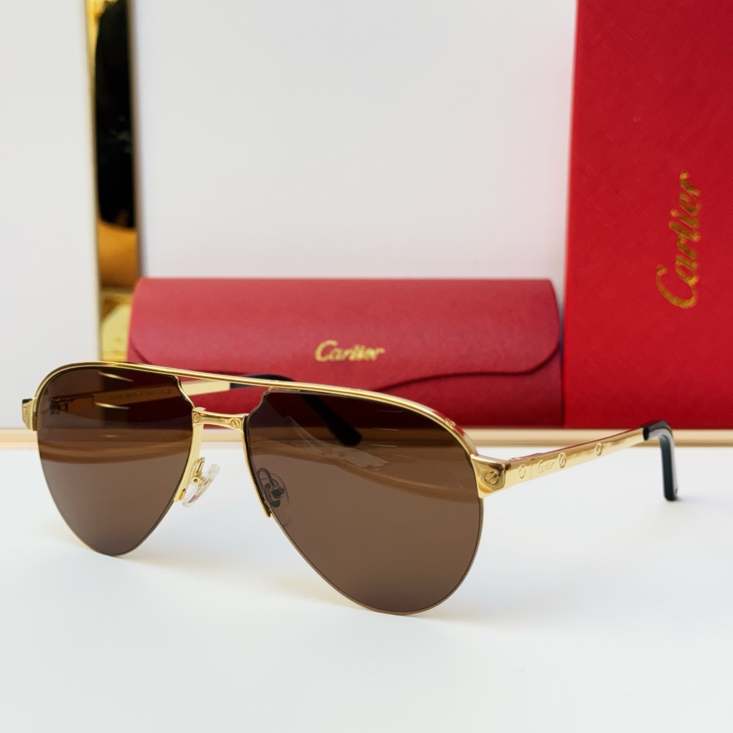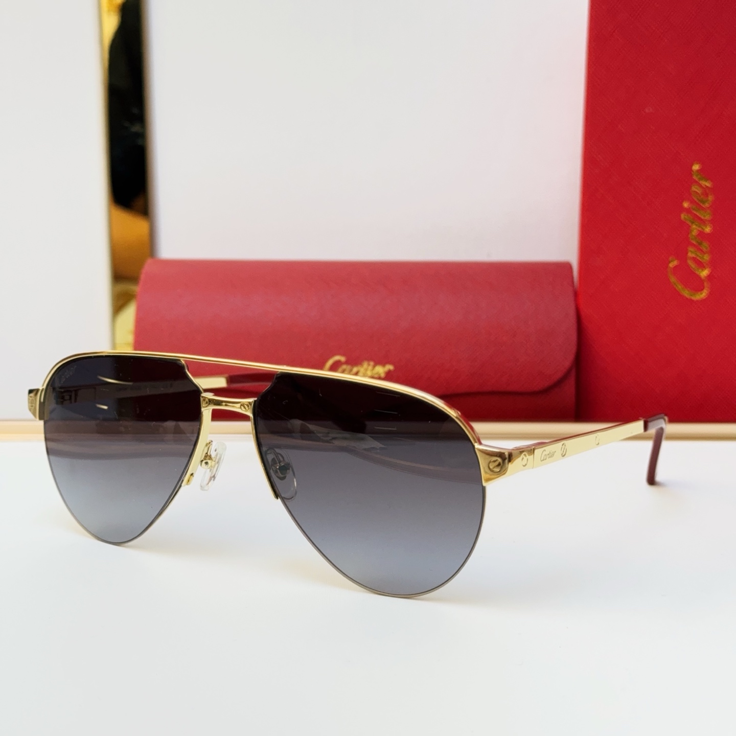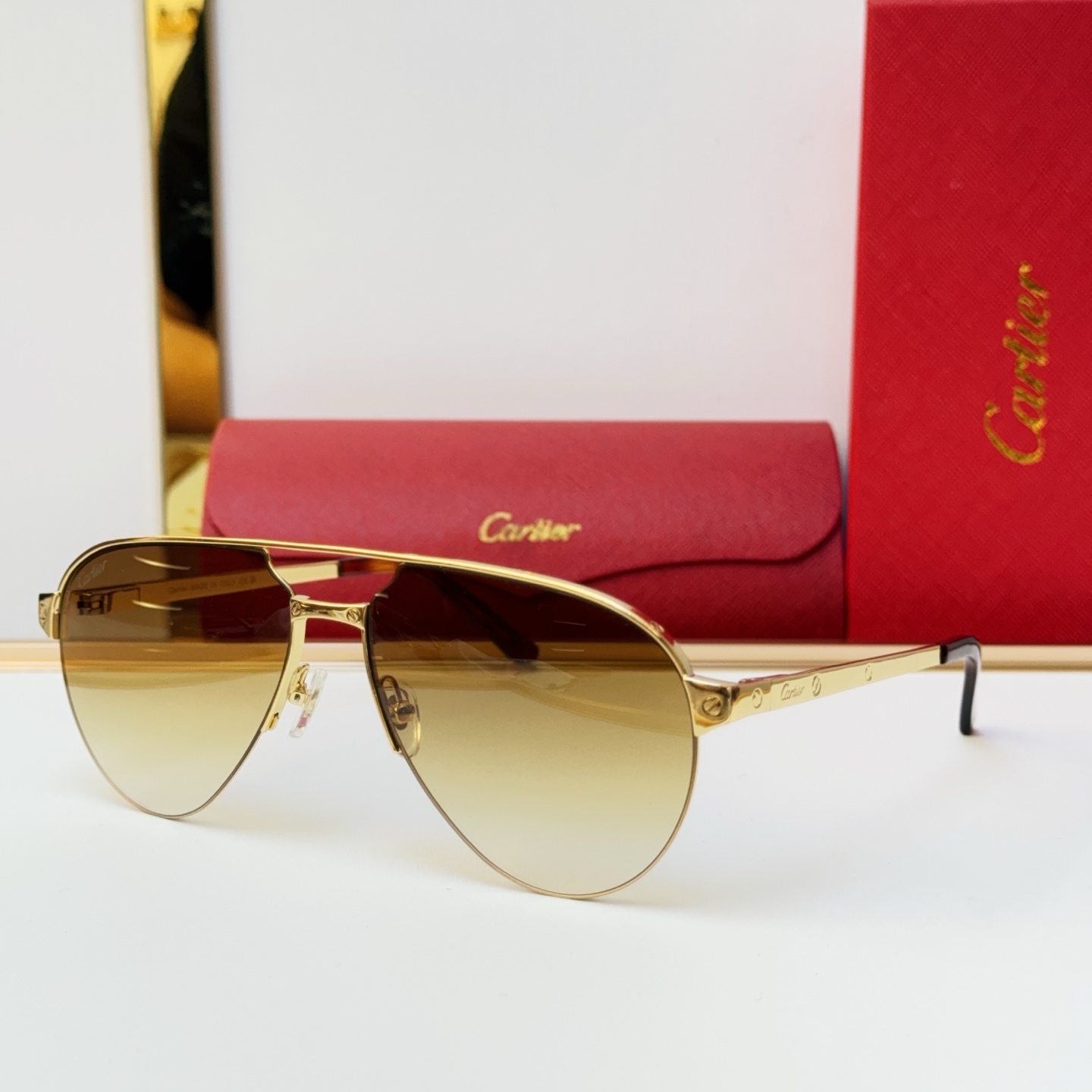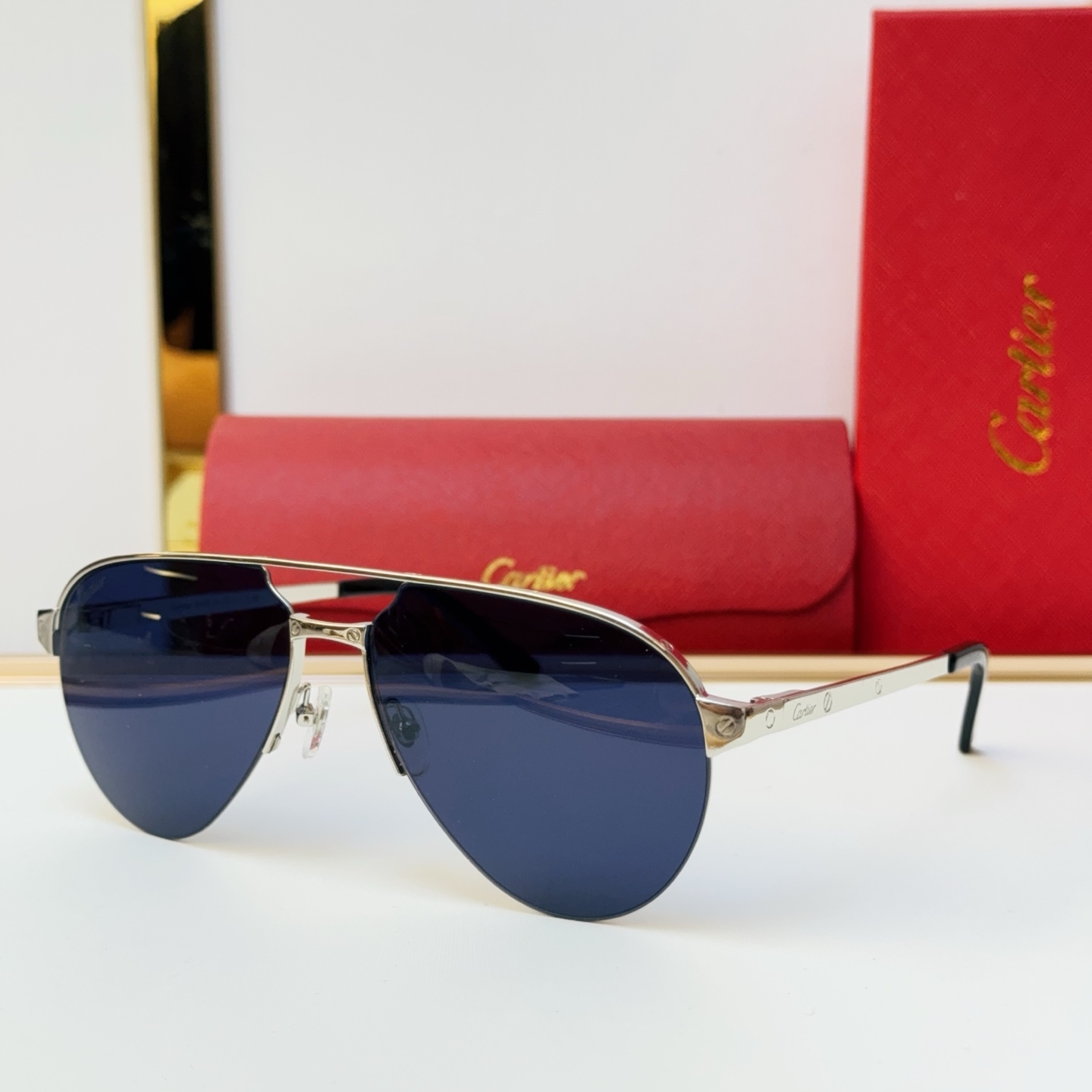 這款太陽眼鏡是AAAAA 1:1 質量(非常棒). 使用了和原版一模一樣的材料. 商標部分也保持了和卡地亞/Cartier一樣. 圖片拍攝是實物太陽眼鏡拍攝, 您所收到的實物保證和我們圖片一模一樣.
