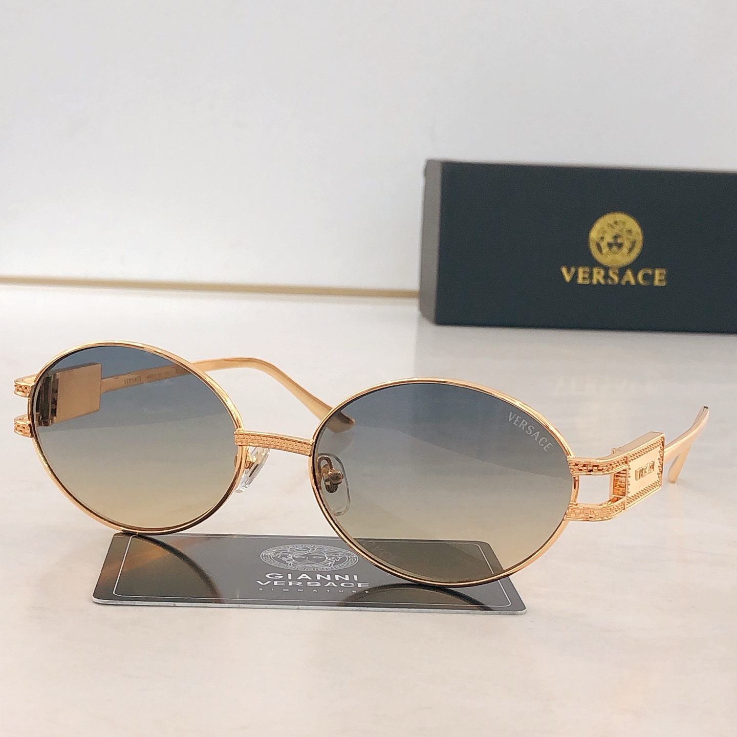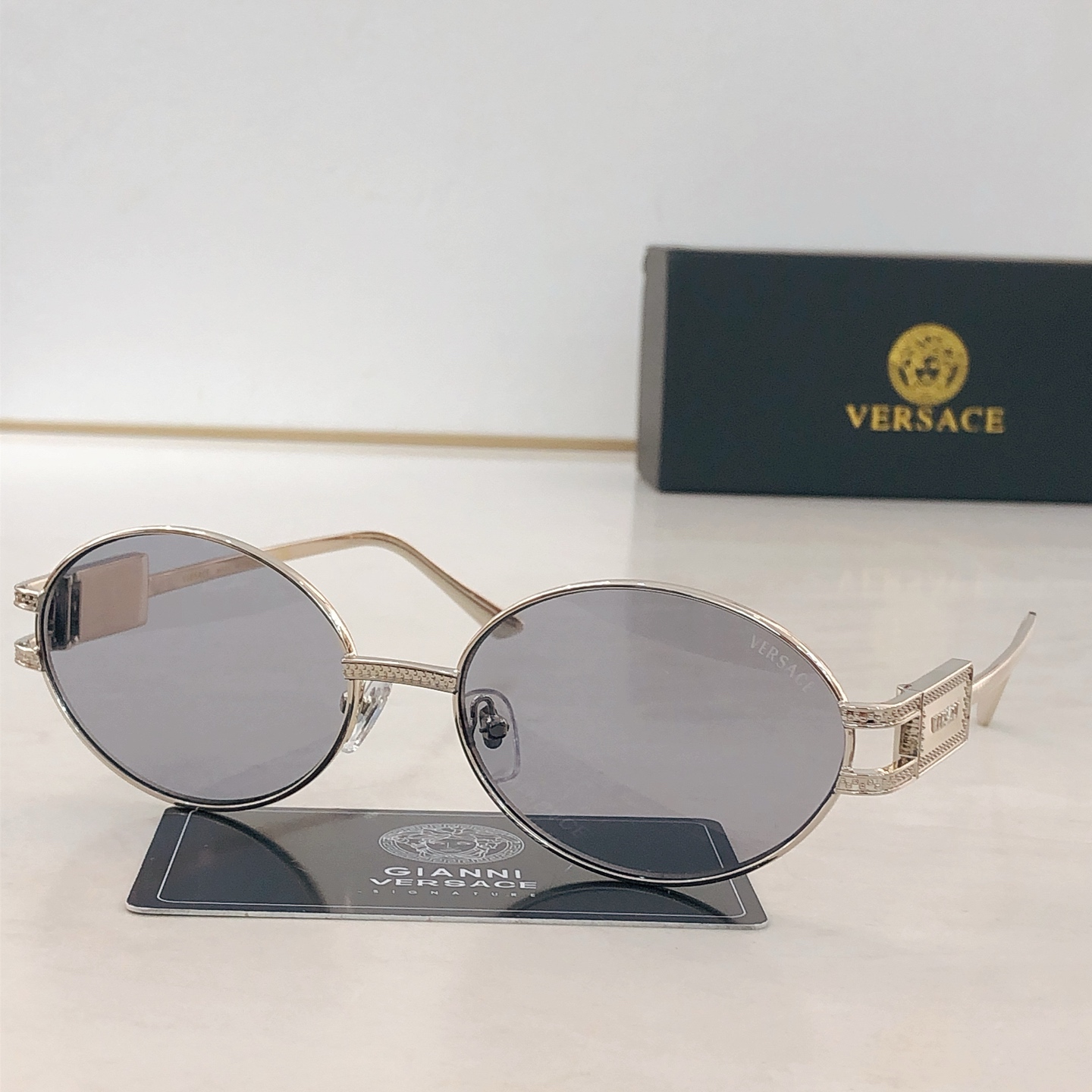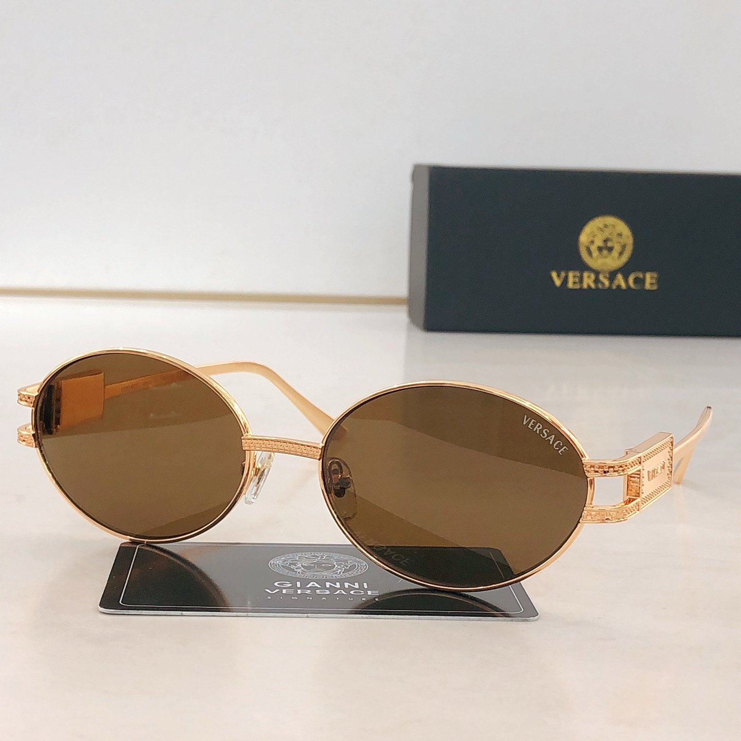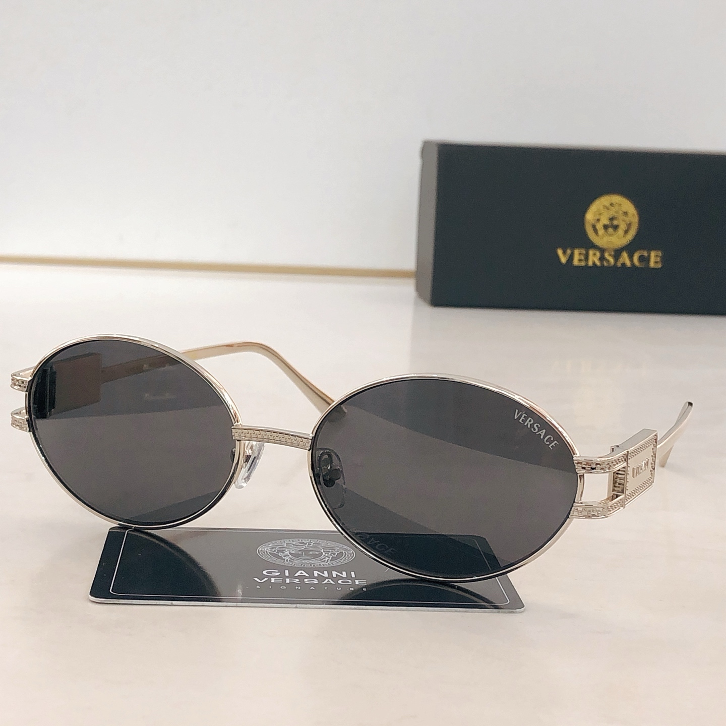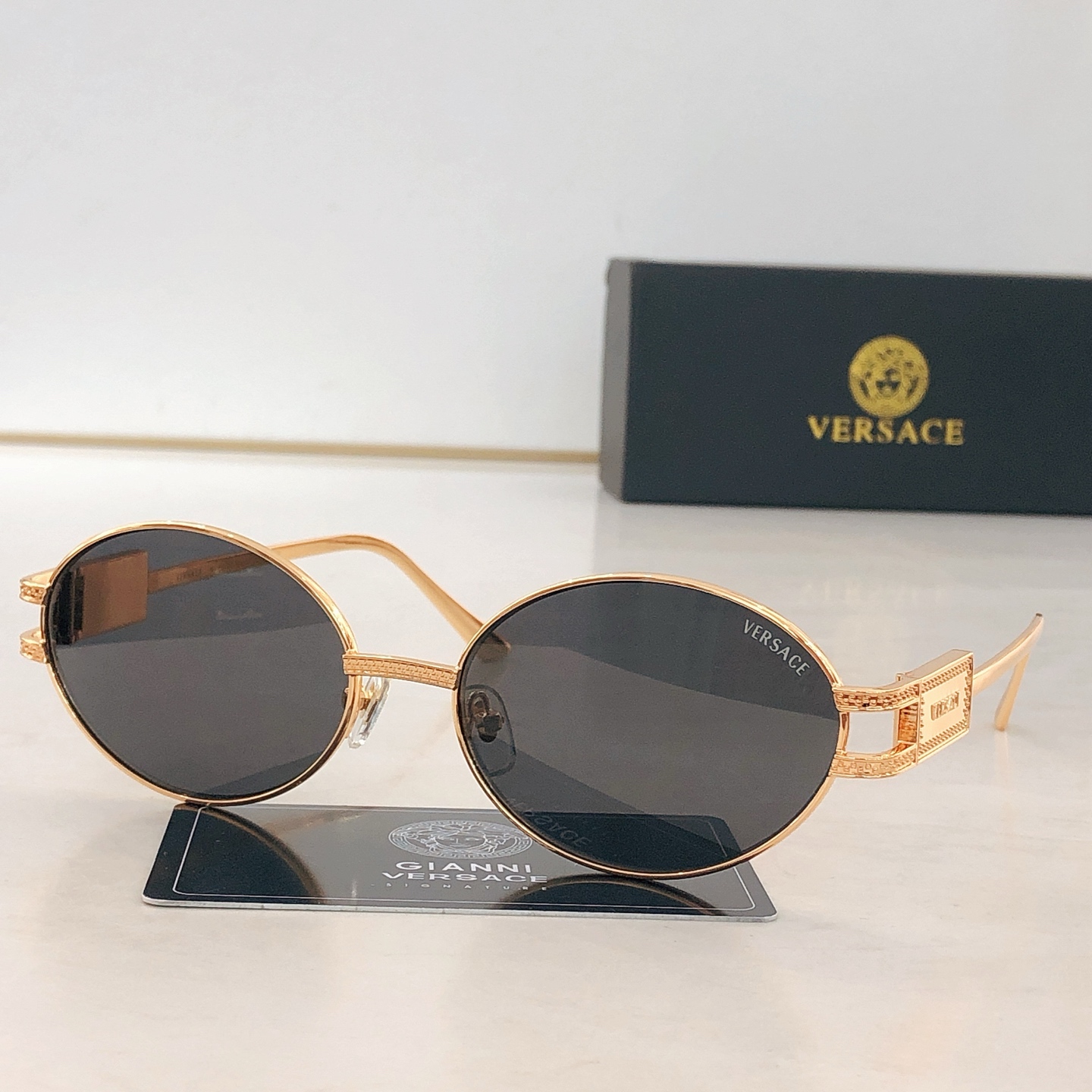 這款太陽眼鏡是AAAAA 1:1 質量(非常棒). 使用了和原版一模一樣的材料. 商標部分也保持了和范思哲/Versace一樣. 圖片拍攝是實物太陽眼鏡拍攝, 您所收到的實物保證和我們圖片一模一樣.
