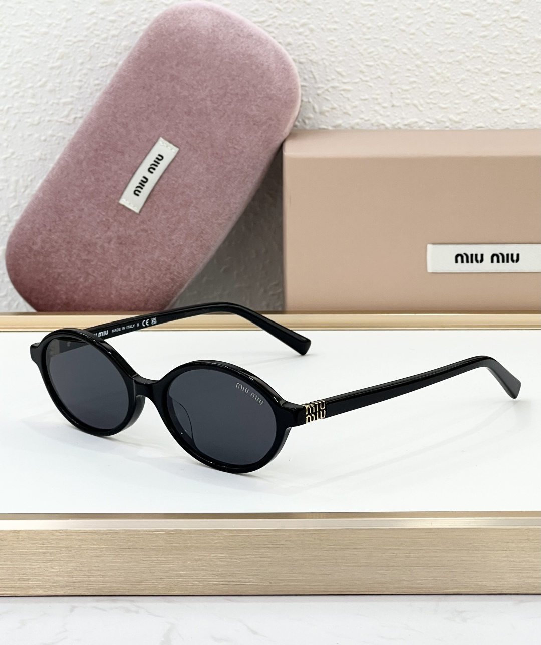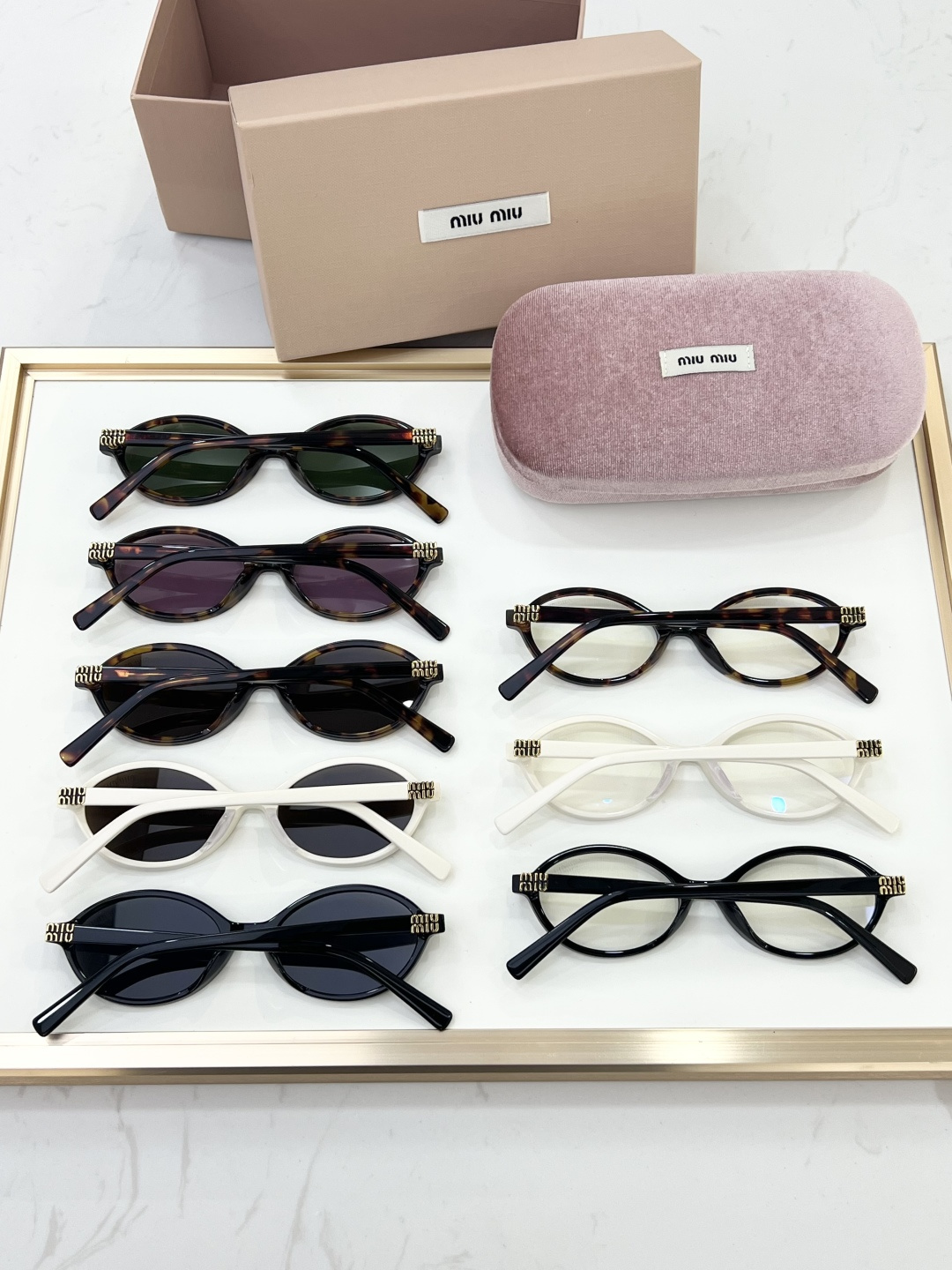 這款太陽眼鏡是AAAAA 1:1 質量(非常棒). 使用了和原版一模一樣的材料. 商標部分也保持了和繆繆/Miu Miu一樣. 圖片拍攝是實物太陽眼鏡拍攝, 您所收到的實物保證和我們圖片一模一樣.