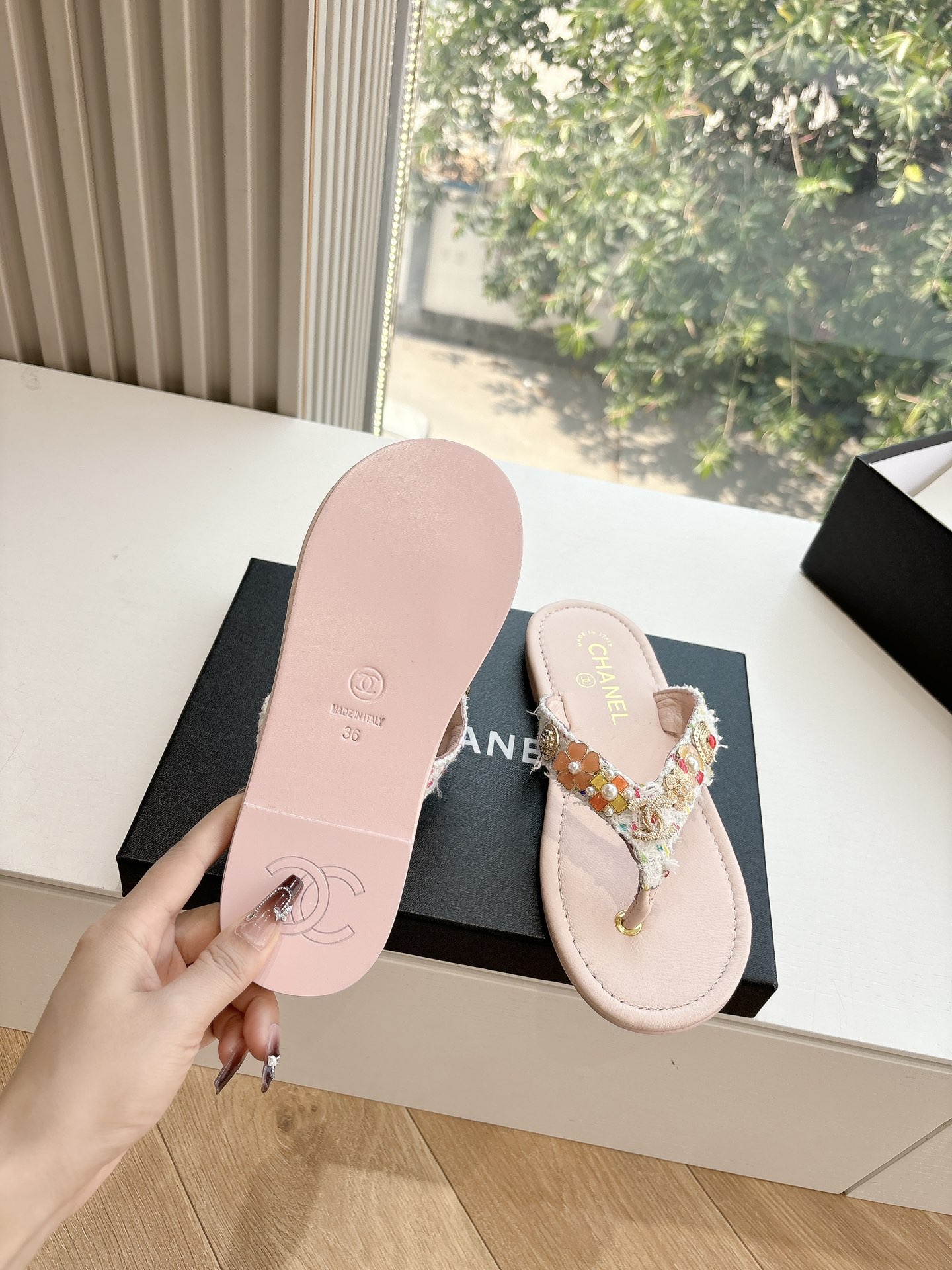 這款鞋子是AAAAA 1:1 質量(非常棒). 使用了和原版一模一樣的材料. 商標部分也保持了和香奈兒/Chanel一樣. 圖片拍攝是實物鞋子拍攝, 您所收到的實物保證和我們圖片一模一樣.