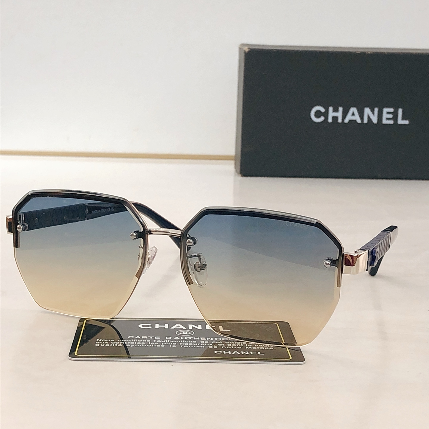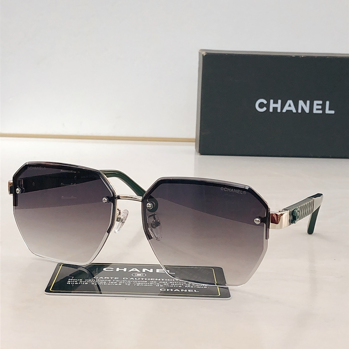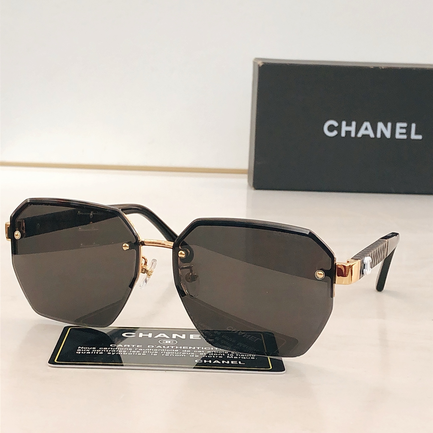 這款太陽眼鏡是AAAAA 1:1 質量(非常棒). 使用了和原版一模一樣的材料. 商標部分也保持了和香奈兒/Chanel一樣. 圖片拍攝是實物太陽眼鏡拍攝, 您所收到的實物保證和我們圖片一模一樣.