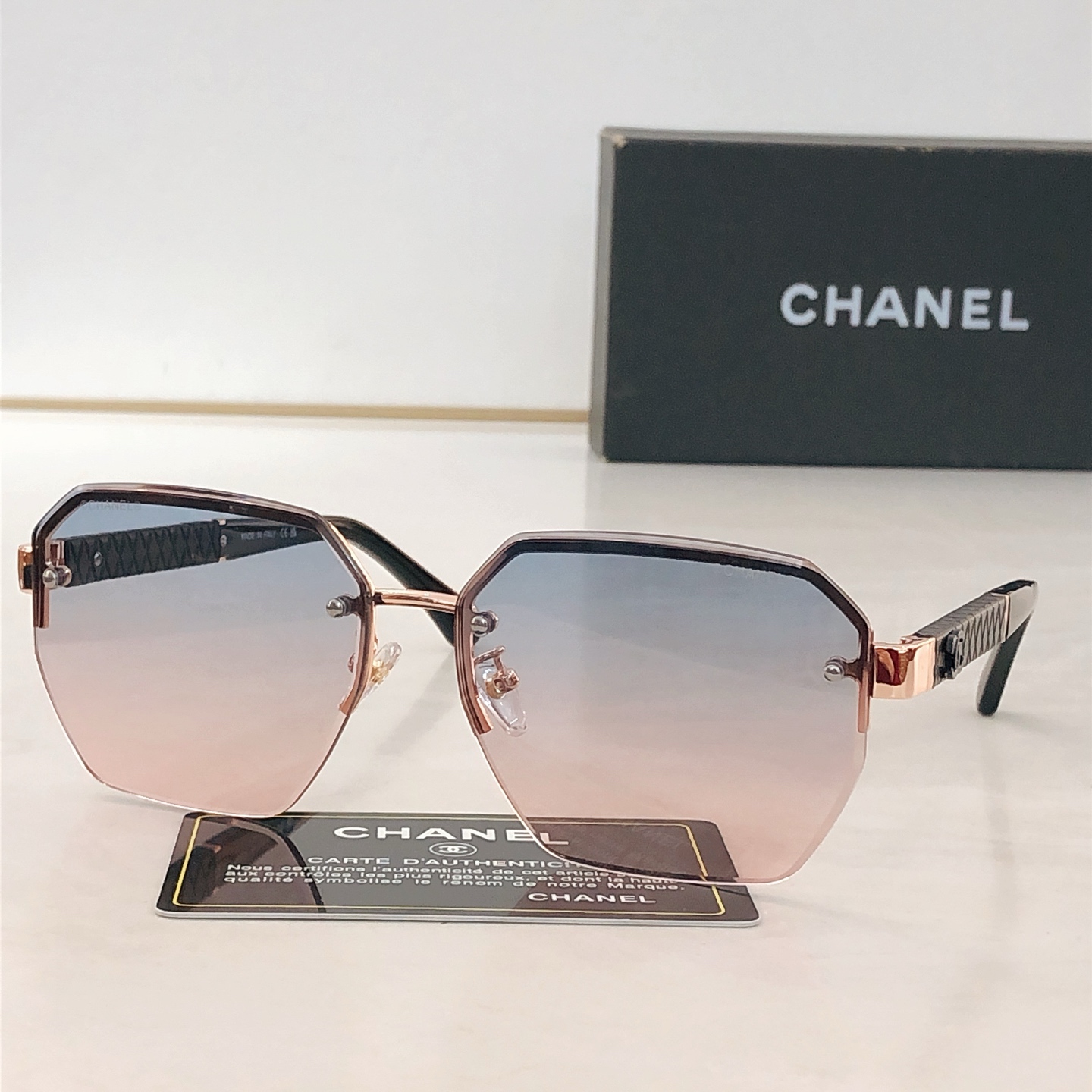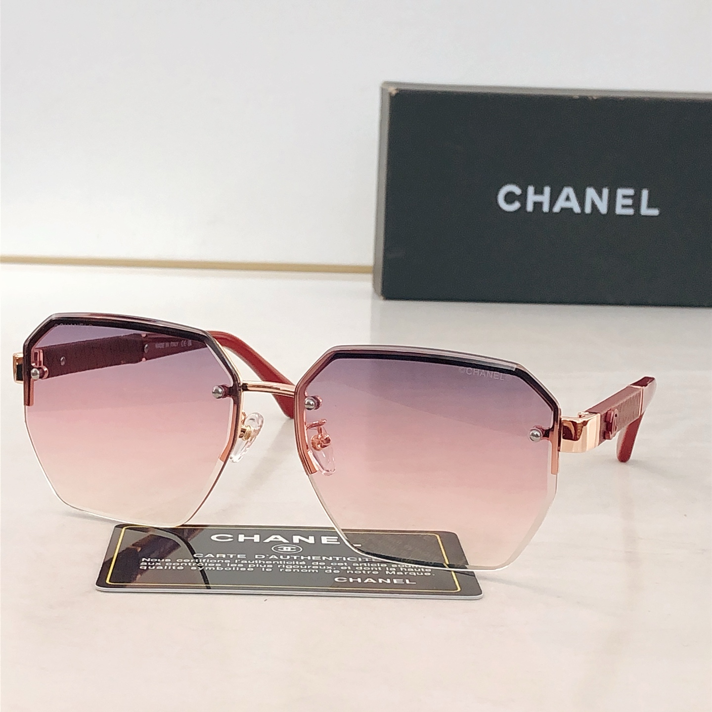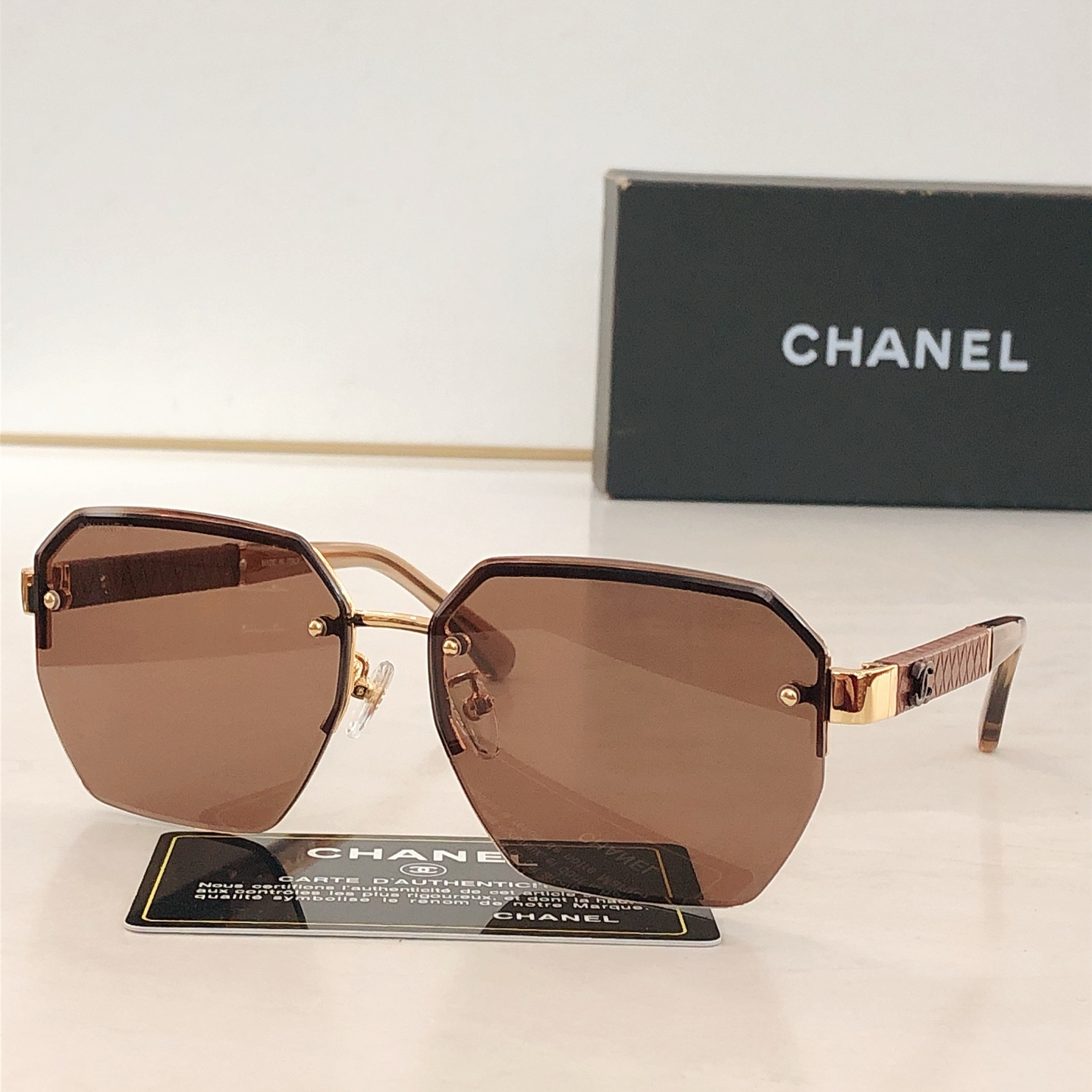 這款太陽眼鏡是AAAAA 1:1 質量(非常棒). 使用了和原版一模一樣的材料. 商標部分也保持了和香奈兒/Chanel一樣. 圖片拍攝是實物太陽眼鏡拍攝, 您所收到的實物保證和我們圖片一模一樣.