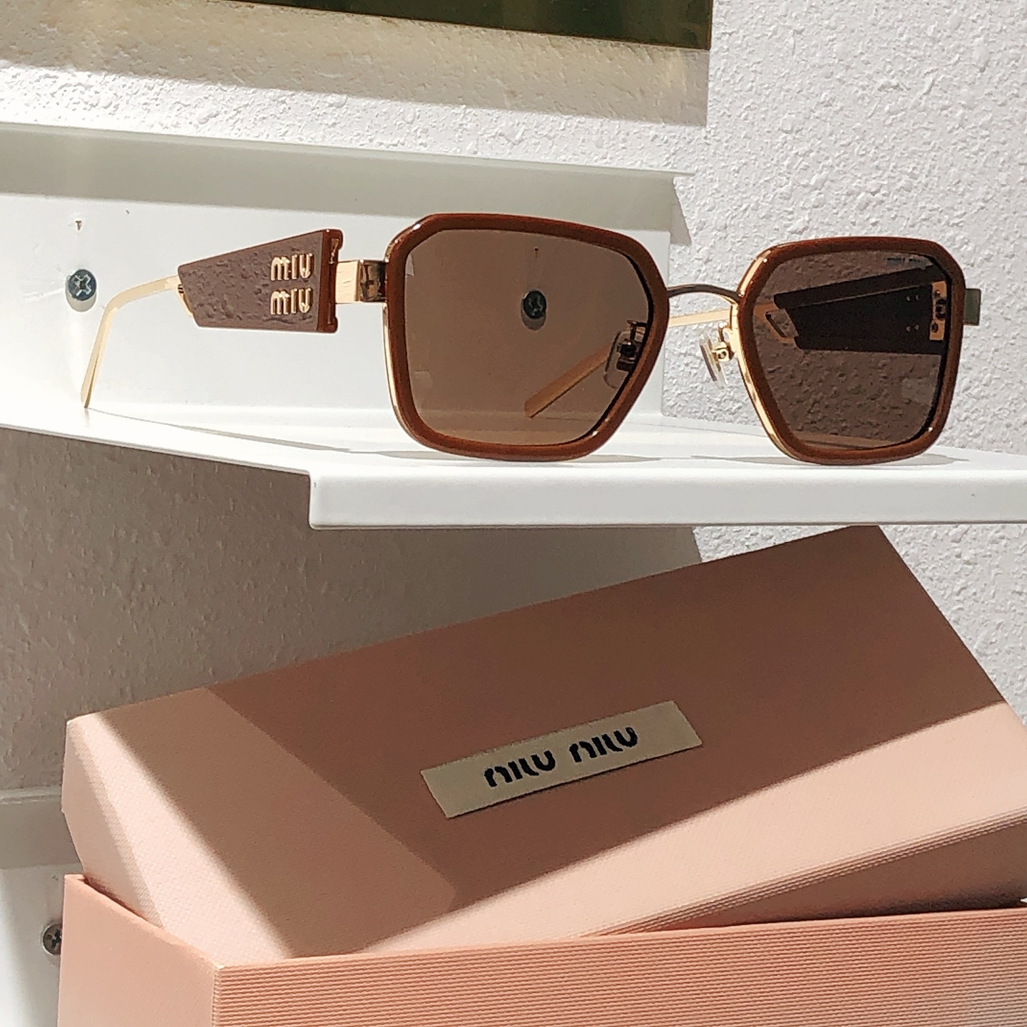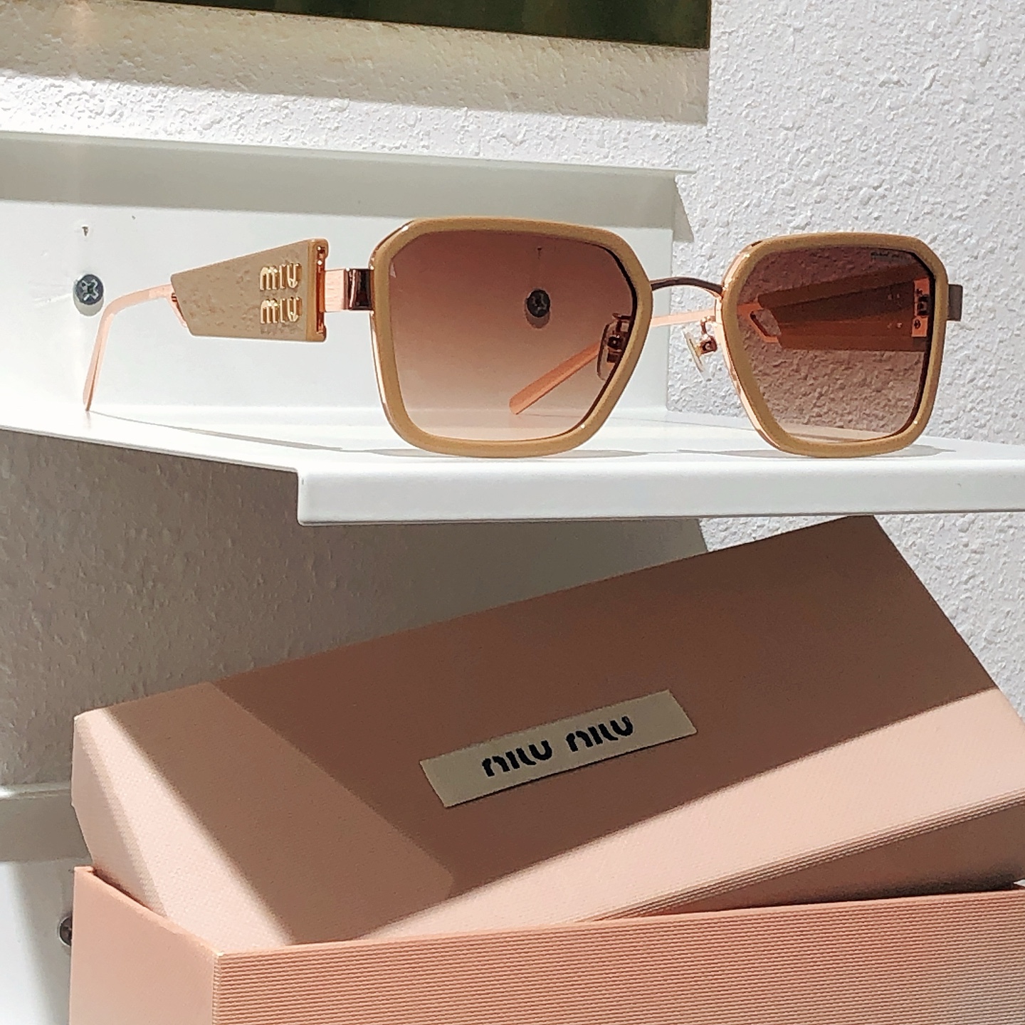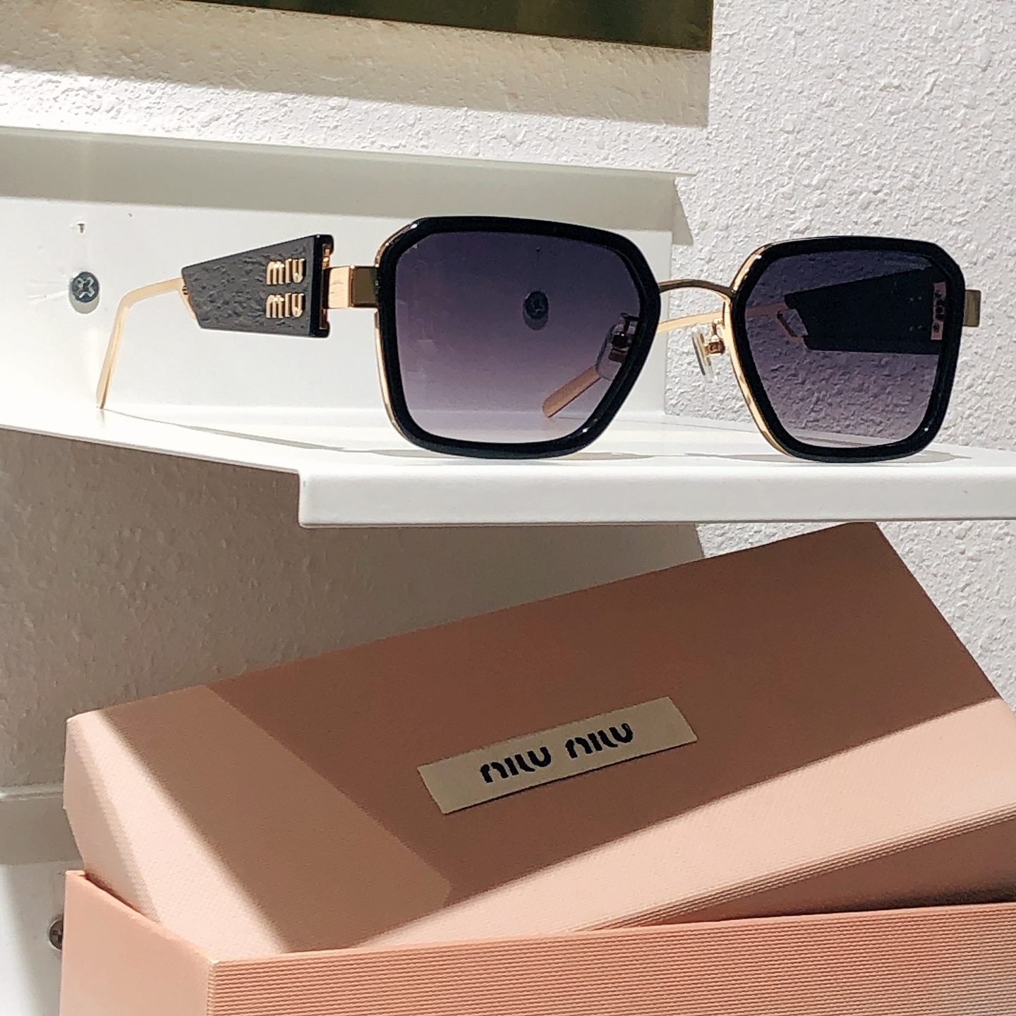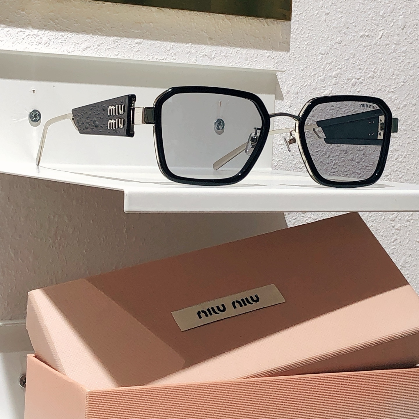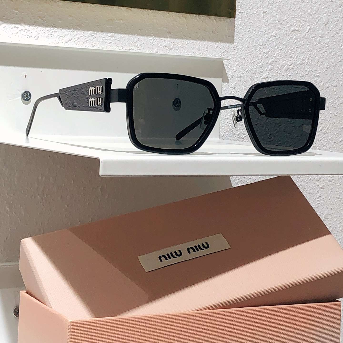 這款太陽眼鏡是AAAAA 1:1 質量(非常棒). 使用了和原版一模一樣的材料. 商標部分也保持了和繆繆/Miu Miu一樣. 圖片拍攝是實物太陽眼鏡拍攝, 您所收到的實物保證和我們圖片一模一樣.