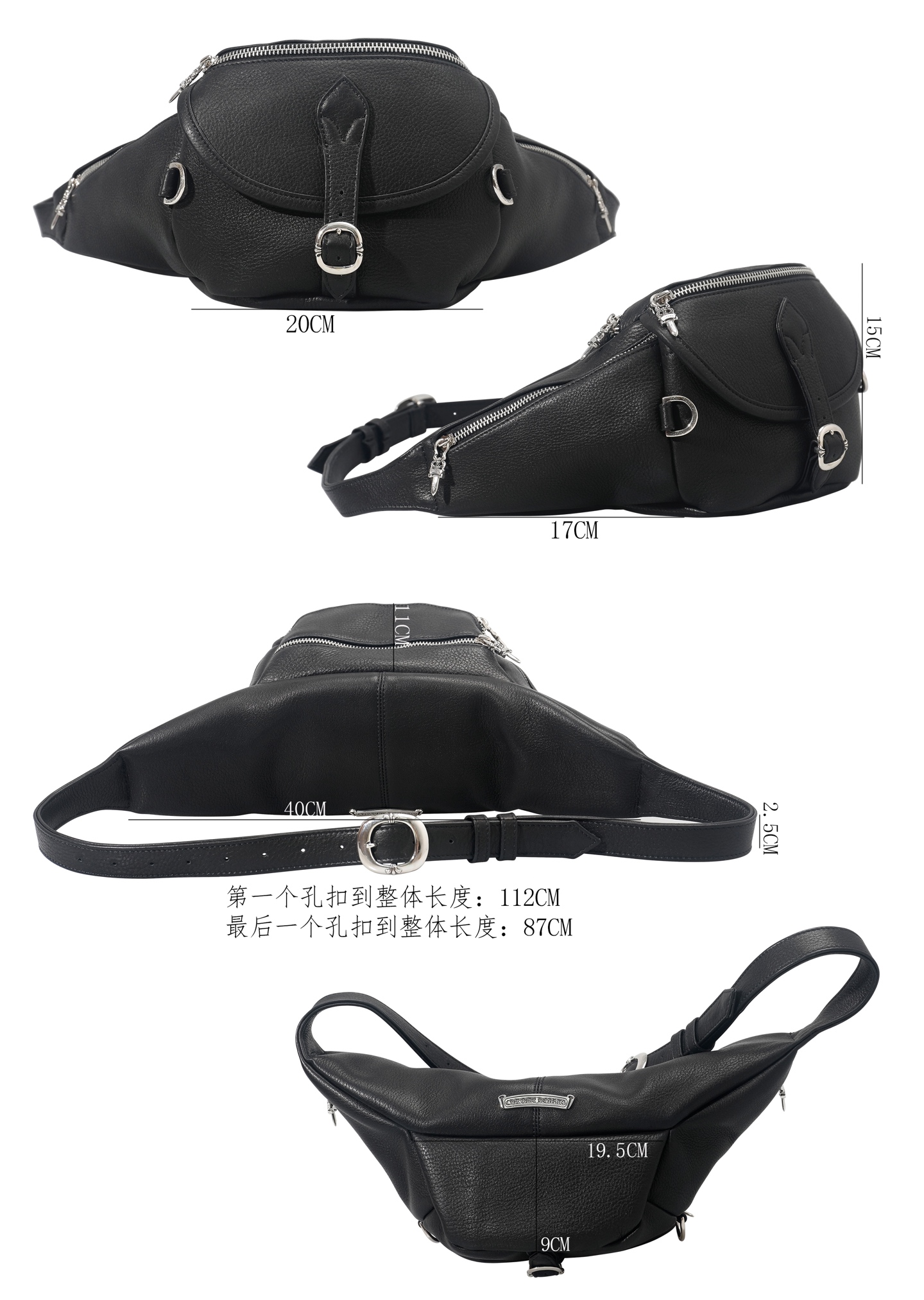 這款包包是AAAAA 1:1 質量(非常棒). 使用了和原版一模一樣的材料. 商標部分也保持了和鉻心/Chrome Hearts一樣. 圖片拍攝是實物包包拍攝, 您所收到的實物保證和我們圖片一模一樣.