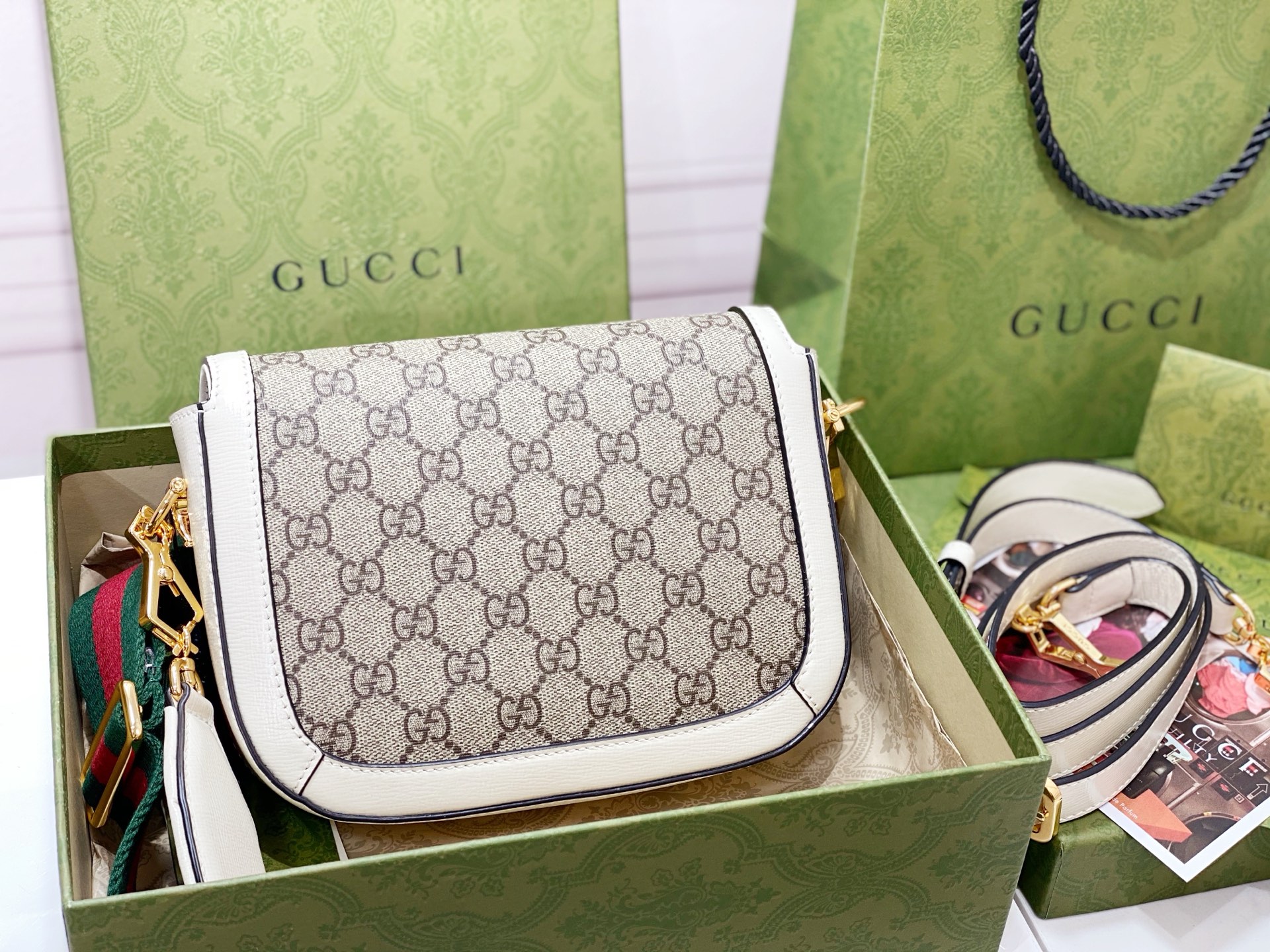 這款包包是AAAAA 1:1 質量(非常棒). 使用了和原版一模一樣的材料. 商標部分也保持了和古奇/Gucci一樣. 圖片拍攝是實物包包拍攝, 您所收到的實物保證和我們圖片一模一樣.
