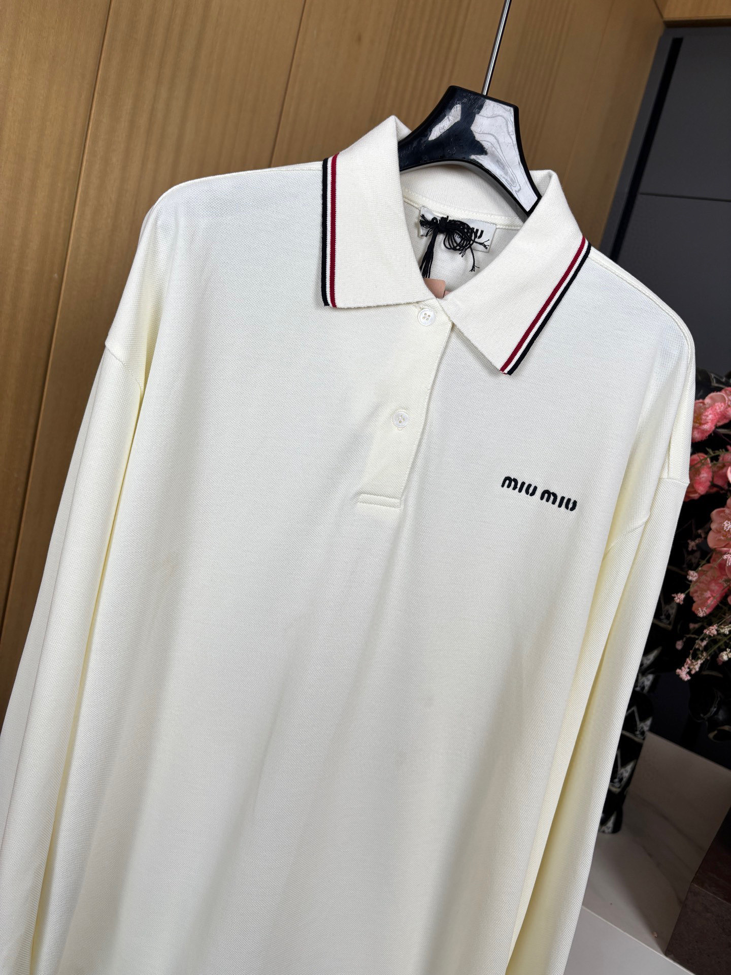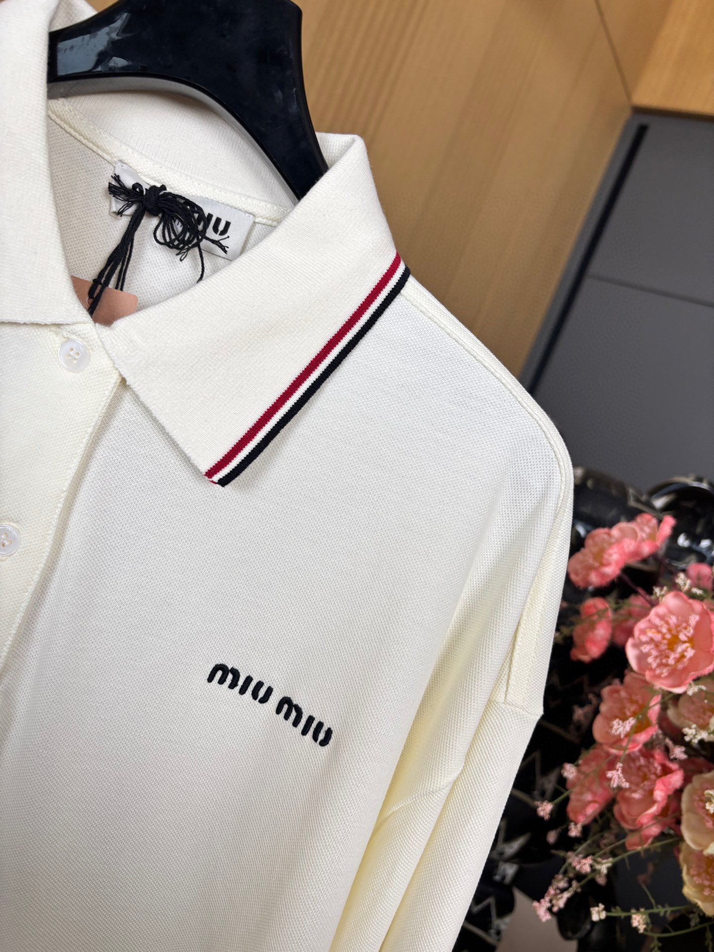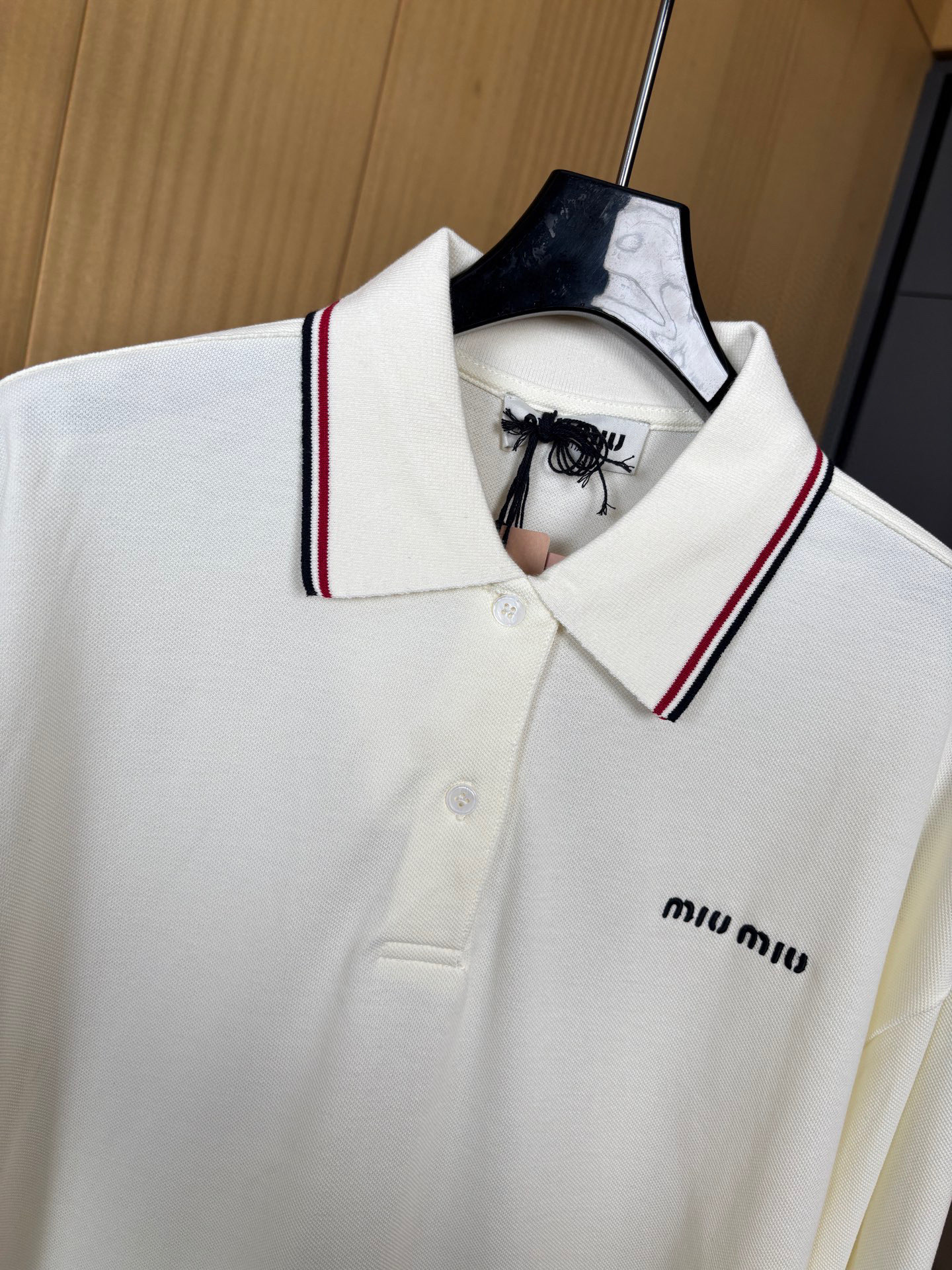 這款衣服是AAAAA 1:1 質量(非常棒). 使用了和原版一模一樣的材料. 商標部分也保持了和繆繆/Miu Miu一樣. 圖片拍攝是實物衣服拍攝, 您所收到的實物保證和我們圖片一模一樣.
