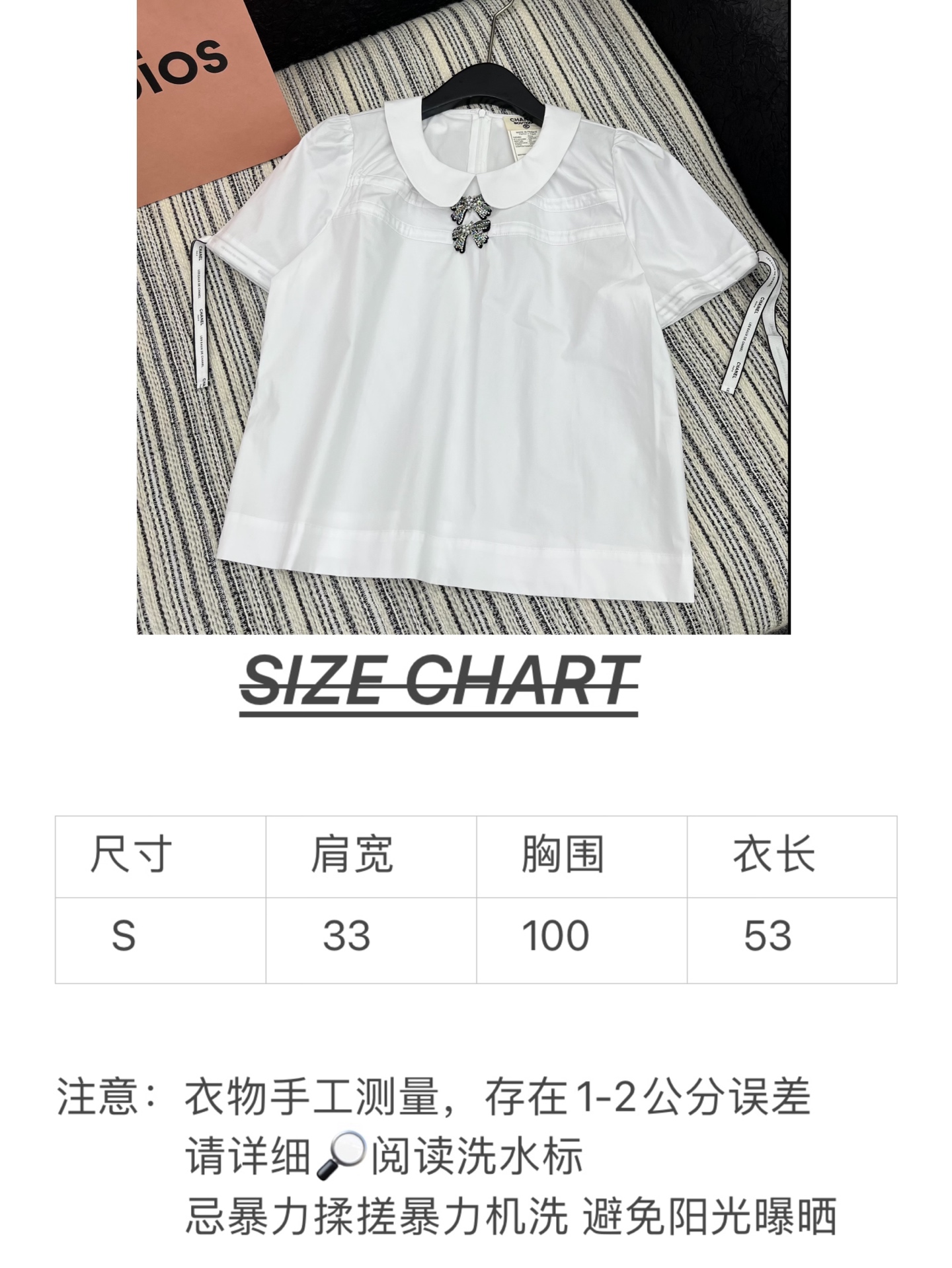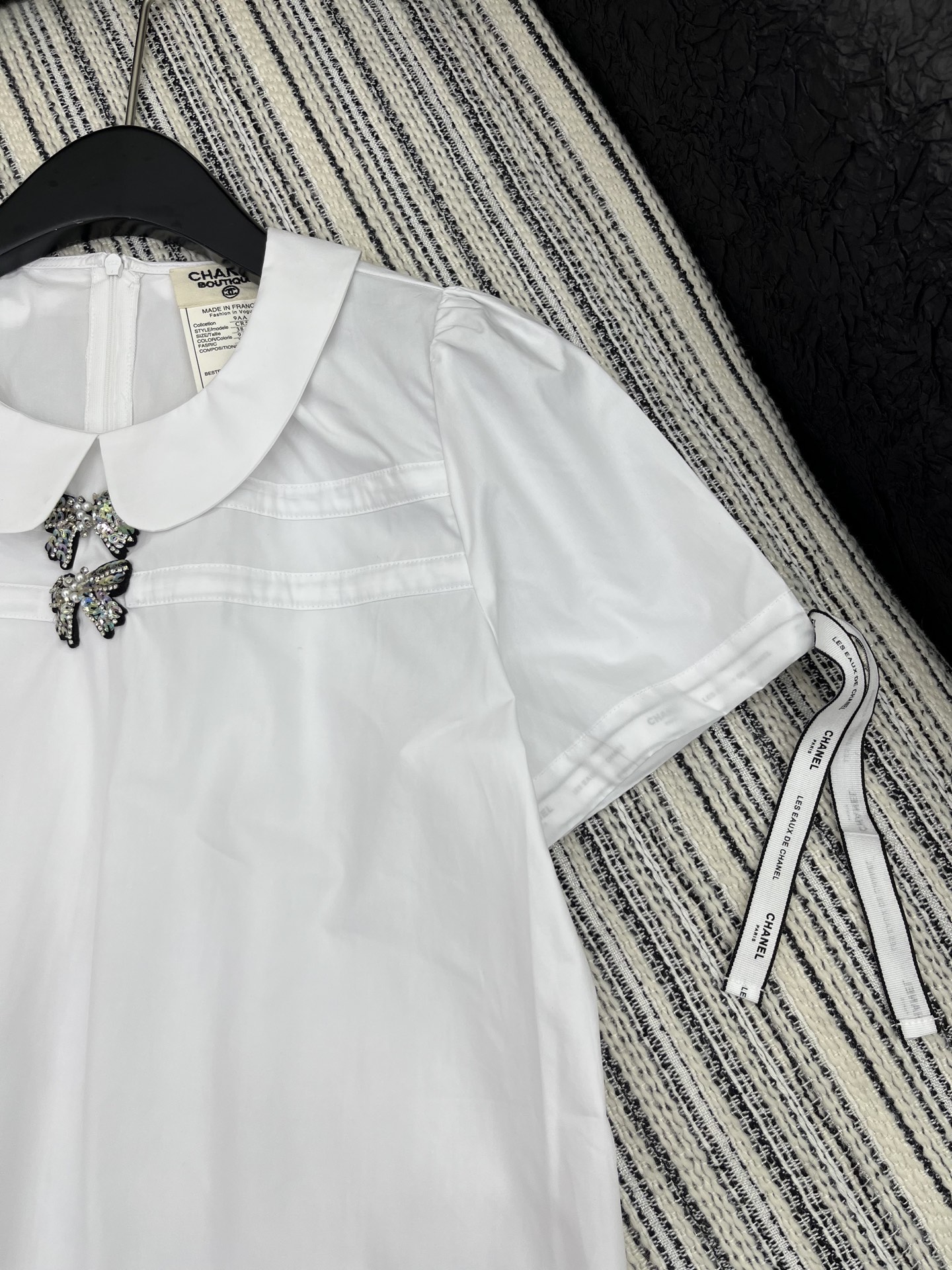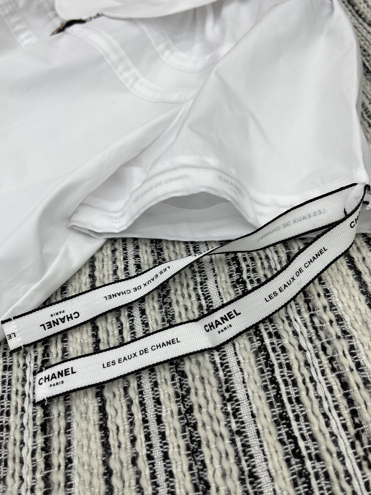 這款衣服是AAAAA 1:1 質量(非常棒). 使用了和原版一模一樣的材料. 商標部分也保持了和香奈兒/Chanel一樣. 圖片拍攝是實物衣服拍攝, 您所收到的實物保證和我們圖片一模一樣.