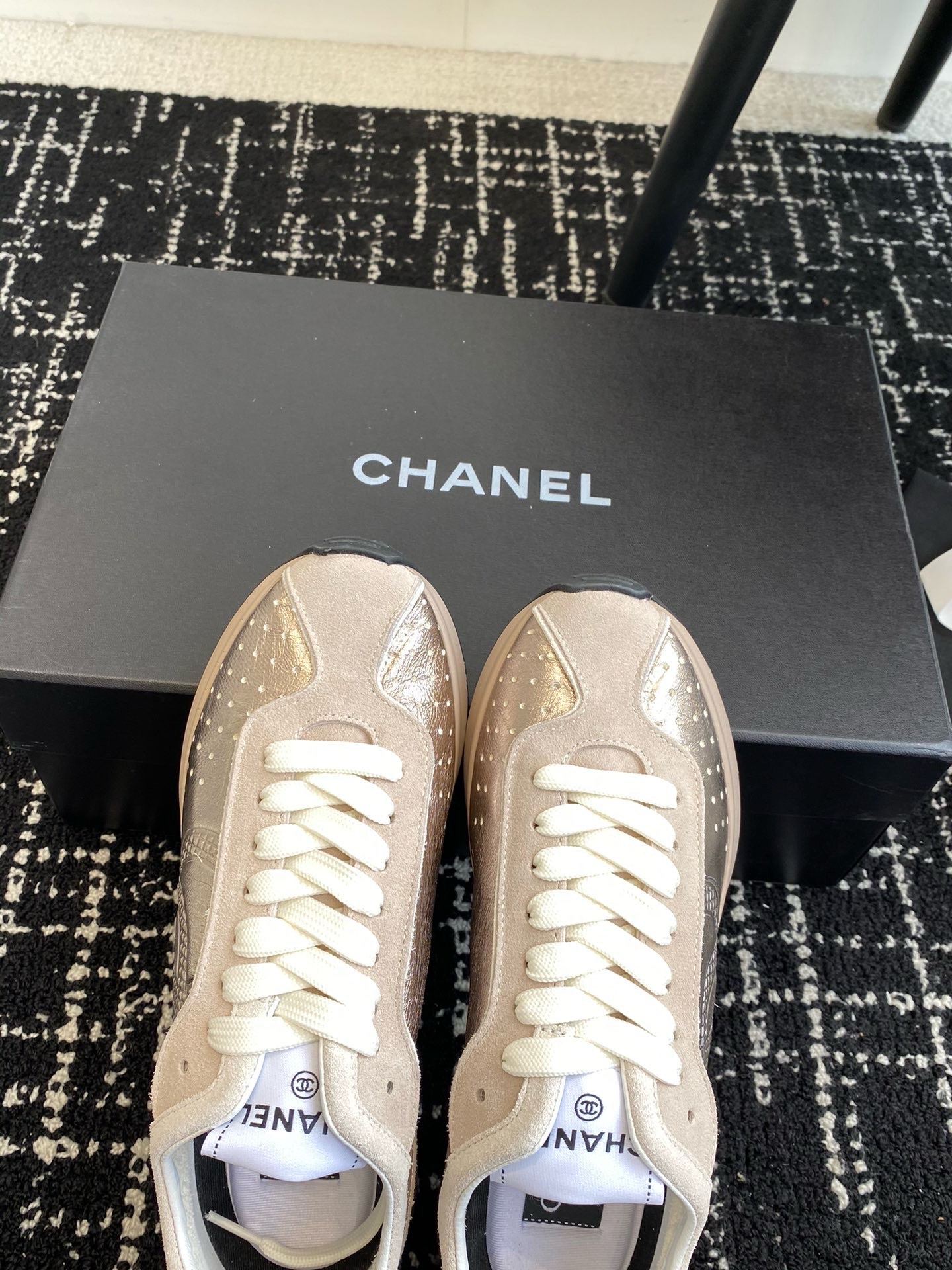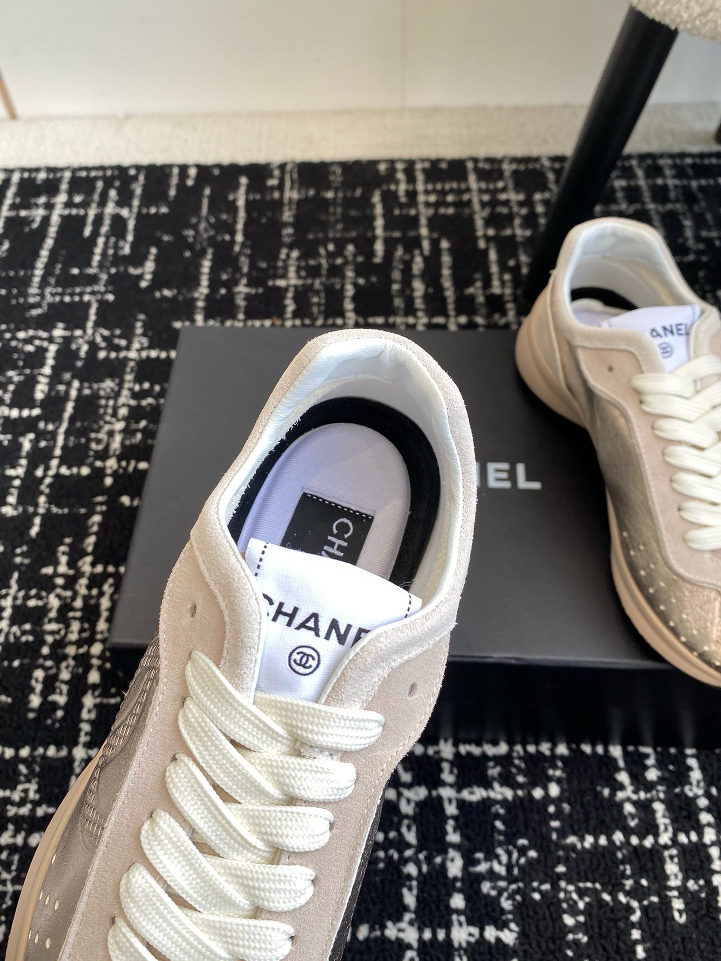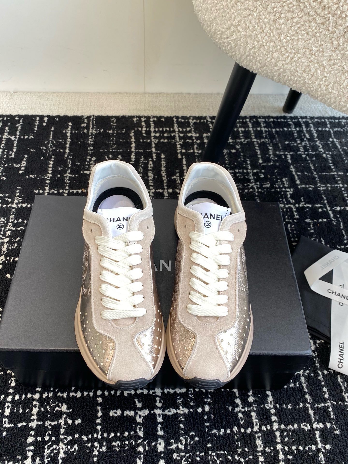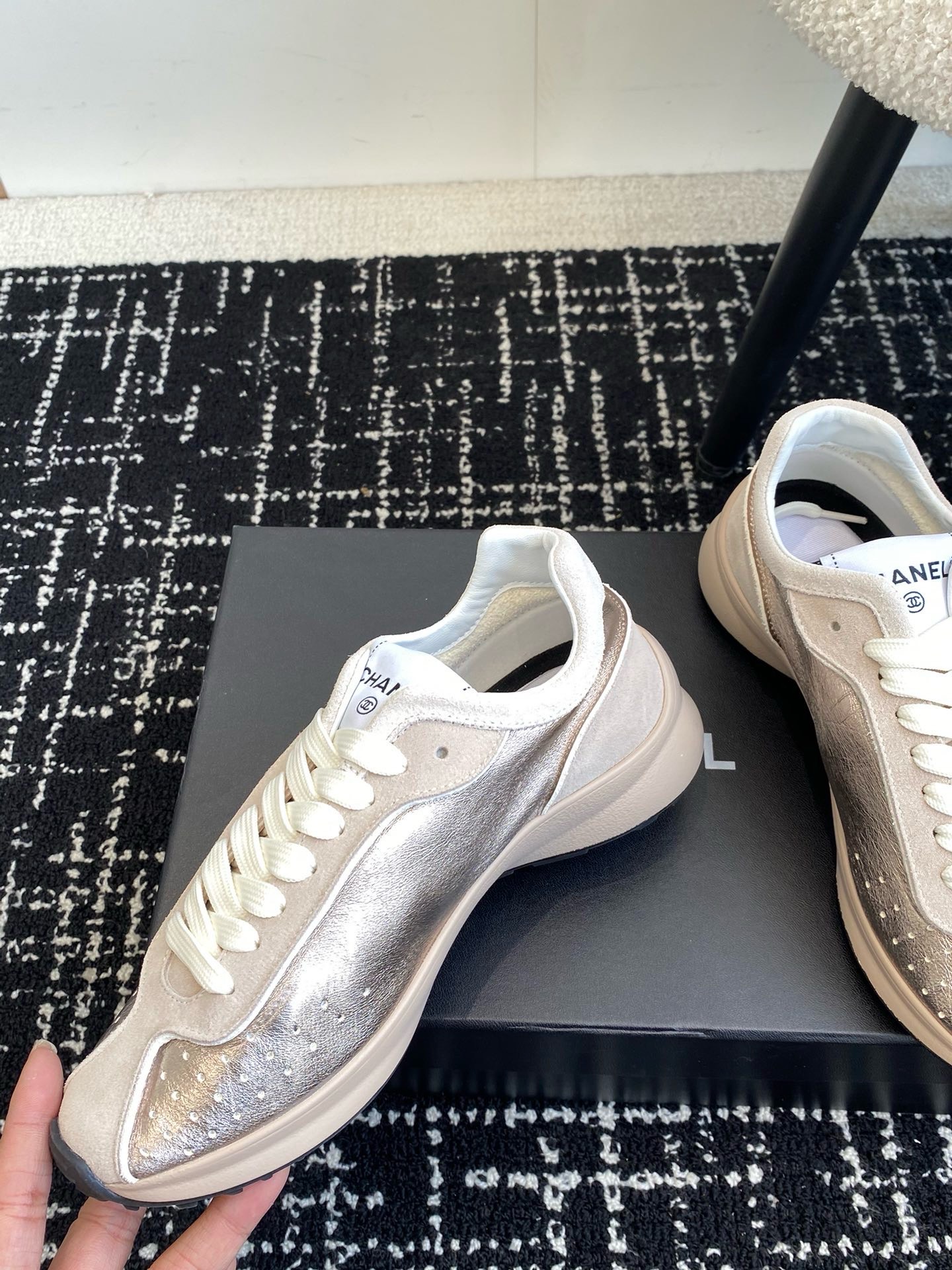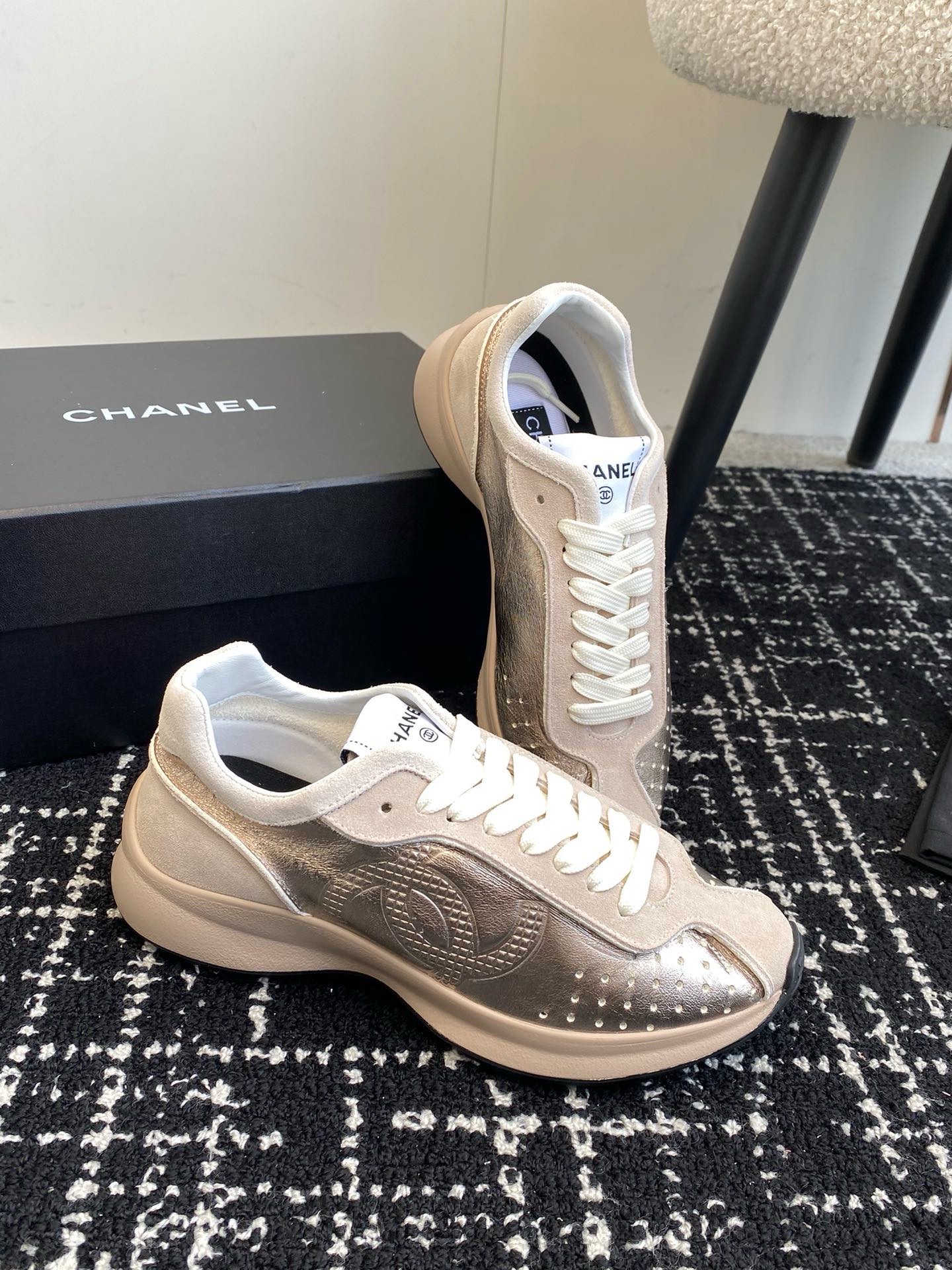 這款鞋子是AAAAA 1:1 質量(非常棒). 使用了和原版一模一樣的材料. 商標部分也保持了和香奈兒/Chanel一樣. 圖片拍攝是實物鞋子拍攝, 您所收到的實物保證和我們圖片一模一樣.