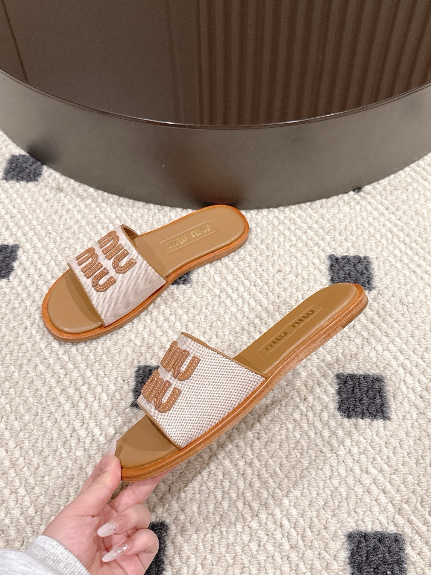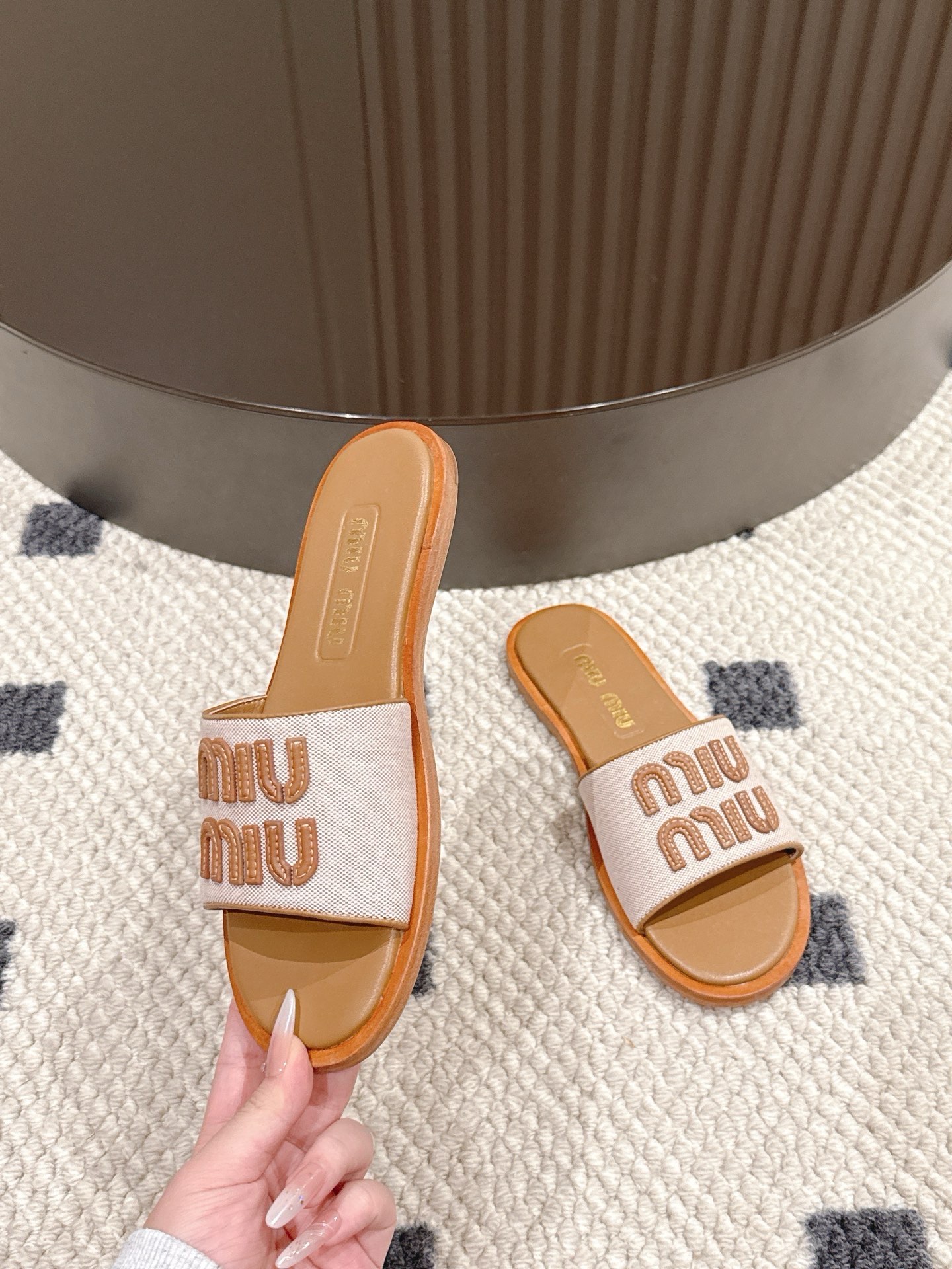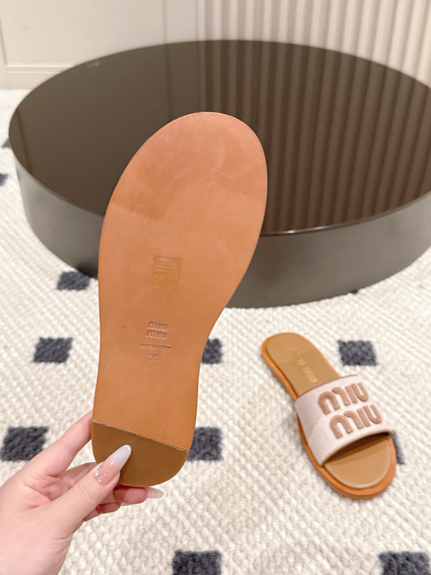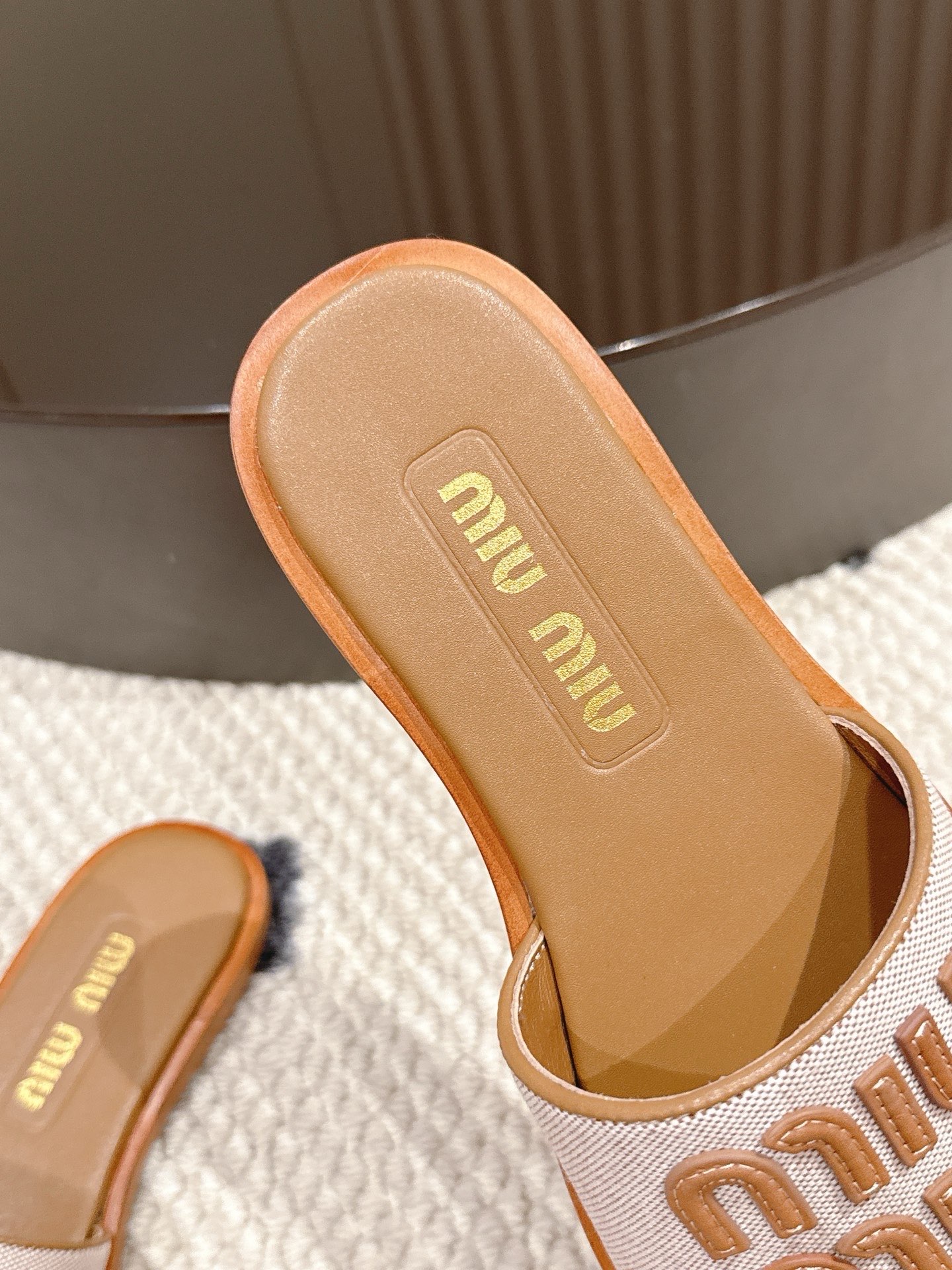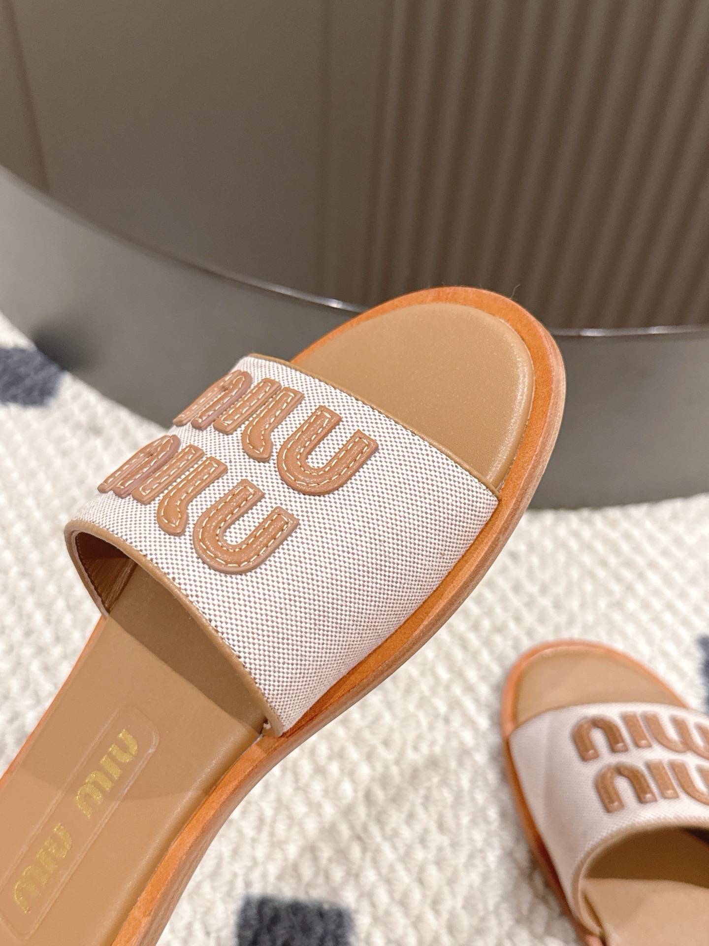 這款鞋子是AAAAA 1:1 質量(非常棒). 使用了和原版一模一樣的材料. 商標部分也保持了和繆繆/Miu Miu一樣. 圖片拍攝是實物鞋子拍攝, 您所收到的實物保證和我們圖片一模一樣.