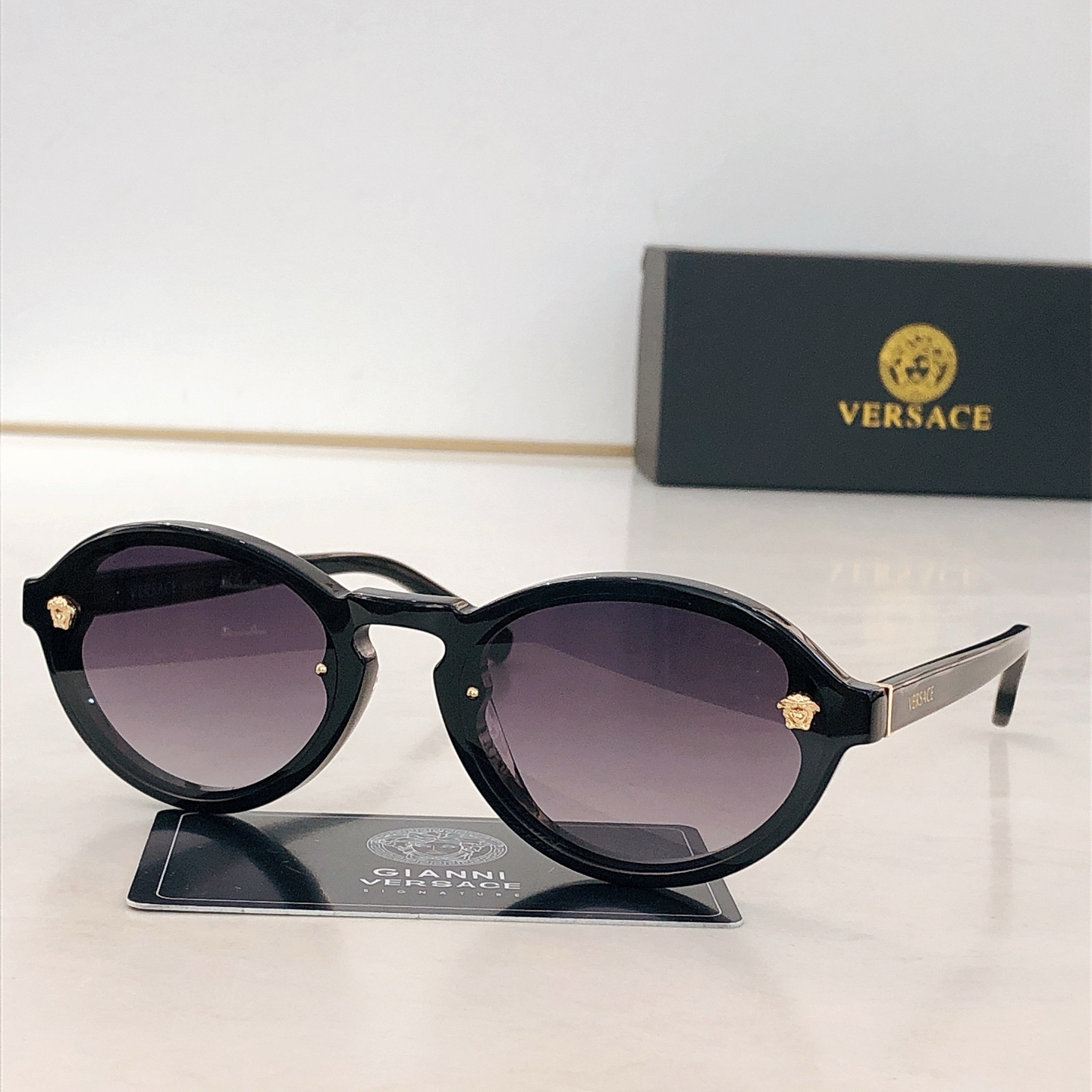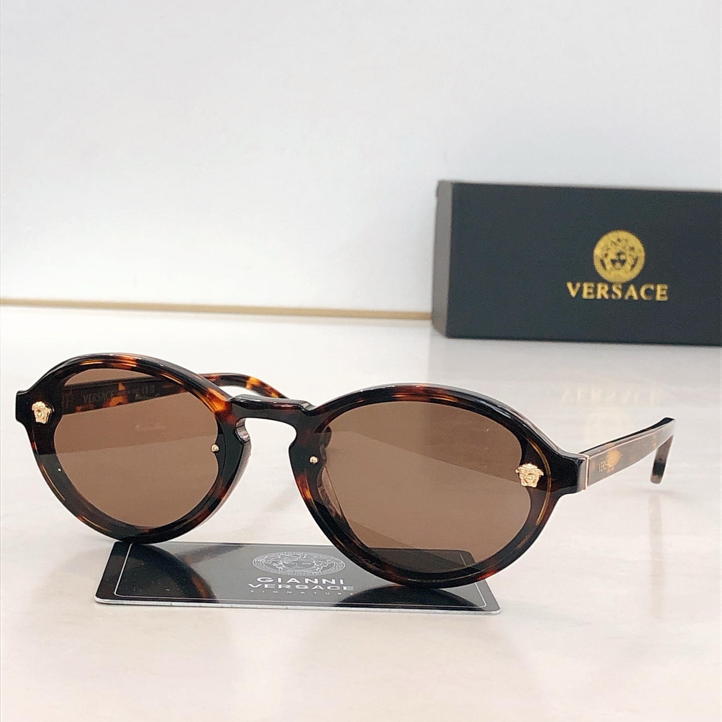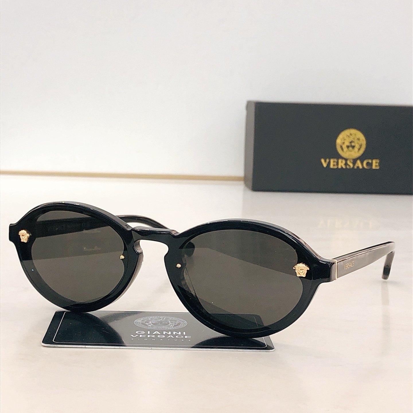 這款太陽眼鏡是AAAAA 1:1 質量(非常棒). 使用了和原版一模一樣的材料. 商標部分也保持了和范思哲/Versace一樣. 圖片拍攝是實物太陽眼鏡拍攝, 您所收到的實物保證和我們圖片一模一樣.