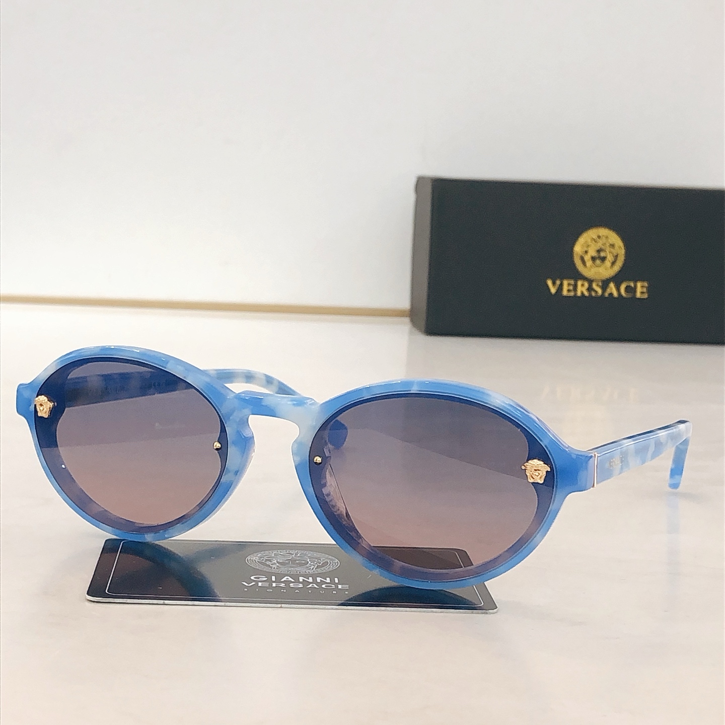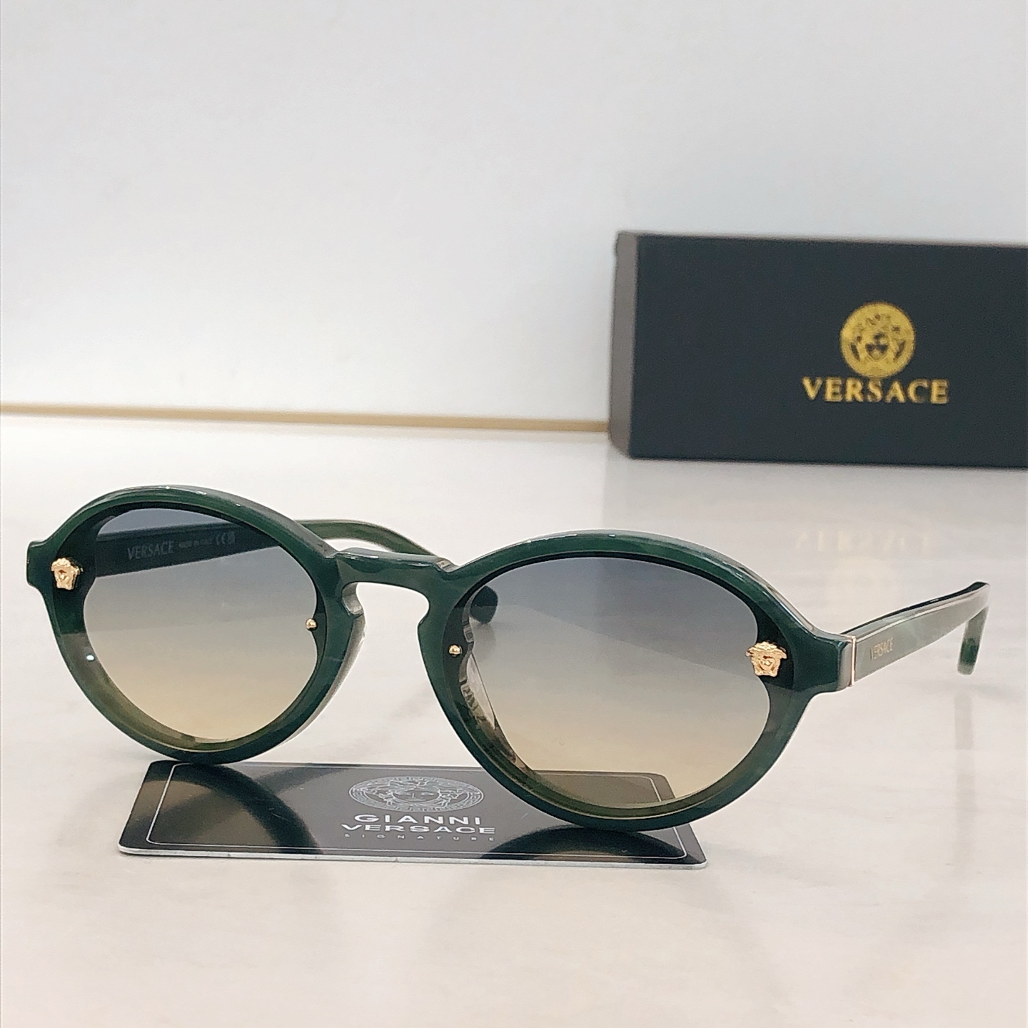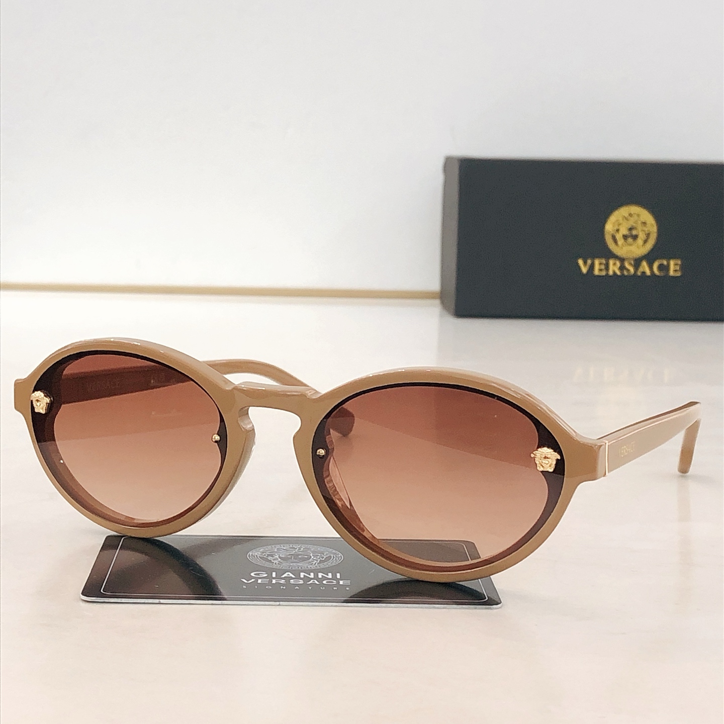 這款太陽眼鏡是AAAAA 1:1 質量(非常棒). 使用了和原版一模一樣的材料. 商標部分也保持了和范思哲/Versace一樣. 圖片拍攝是實物太陽眼鏡拍攝, 您所收到的實物保證和我們圖片一模一樣.