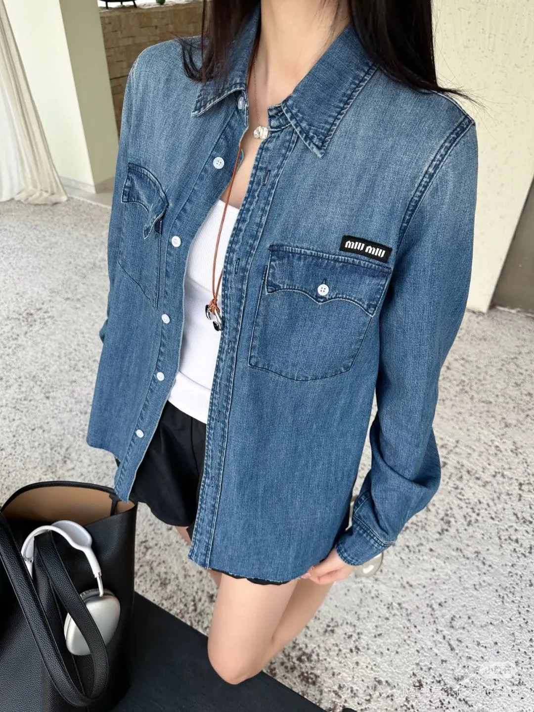 這款衣服是AAAAA 1:1 質量(非常棒). 使用了和原版一模一樣的材料. 商標部分也保持了和繆繆/Miu Miu一樣. 圖片拍攝是實物衣服拍攝, 您所收到的實物保證和我們圖片一模一樣.