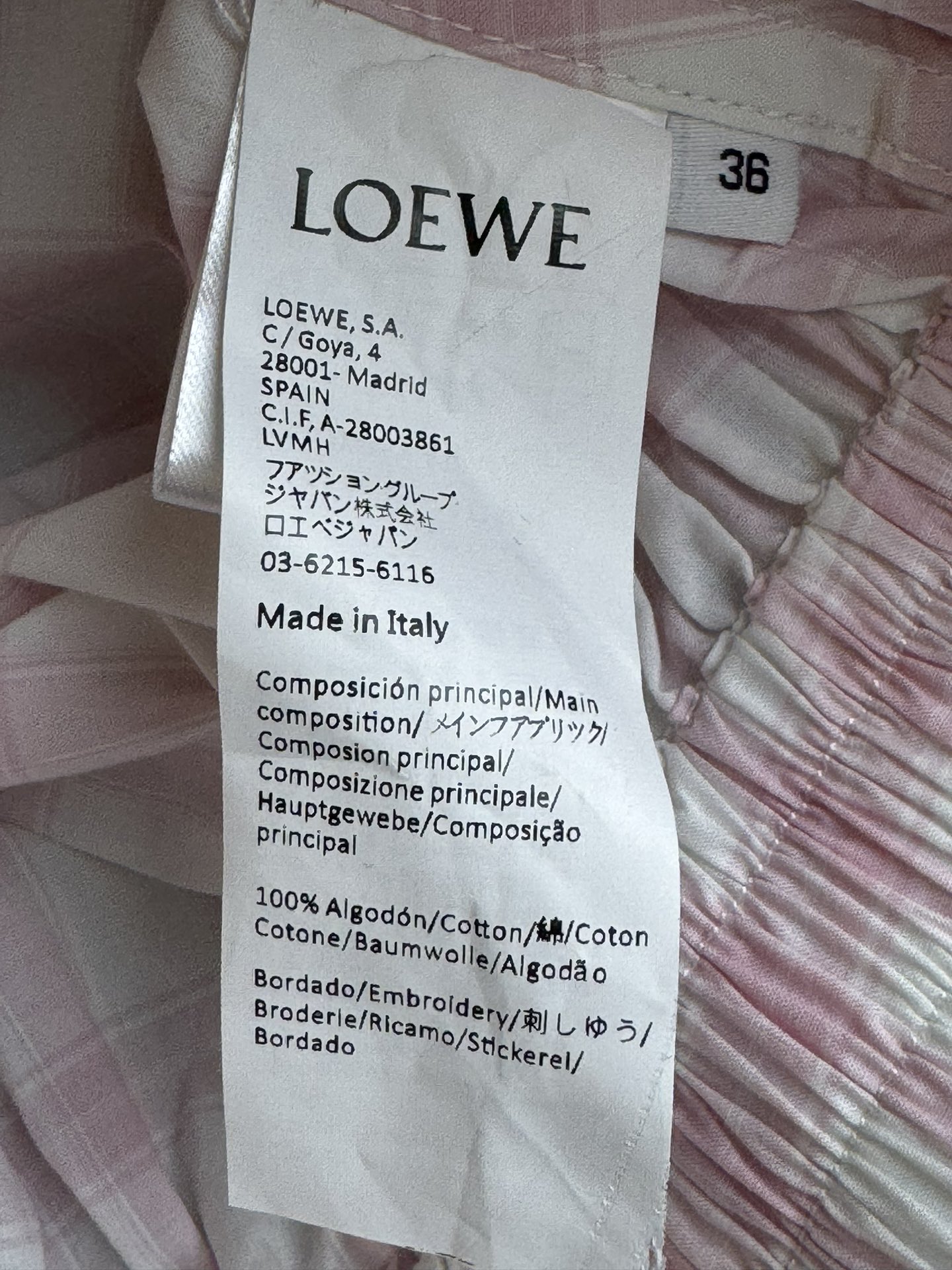 這款衣服是AAAAA 1:1 質量(非常棒). 使用了和原版一模一樣的材料. 商標部分也保持了和Loewe一樣. 圖片拍攝是實物衣服拍攝, 您所收到的實物保證和我們圖片一模一樣.