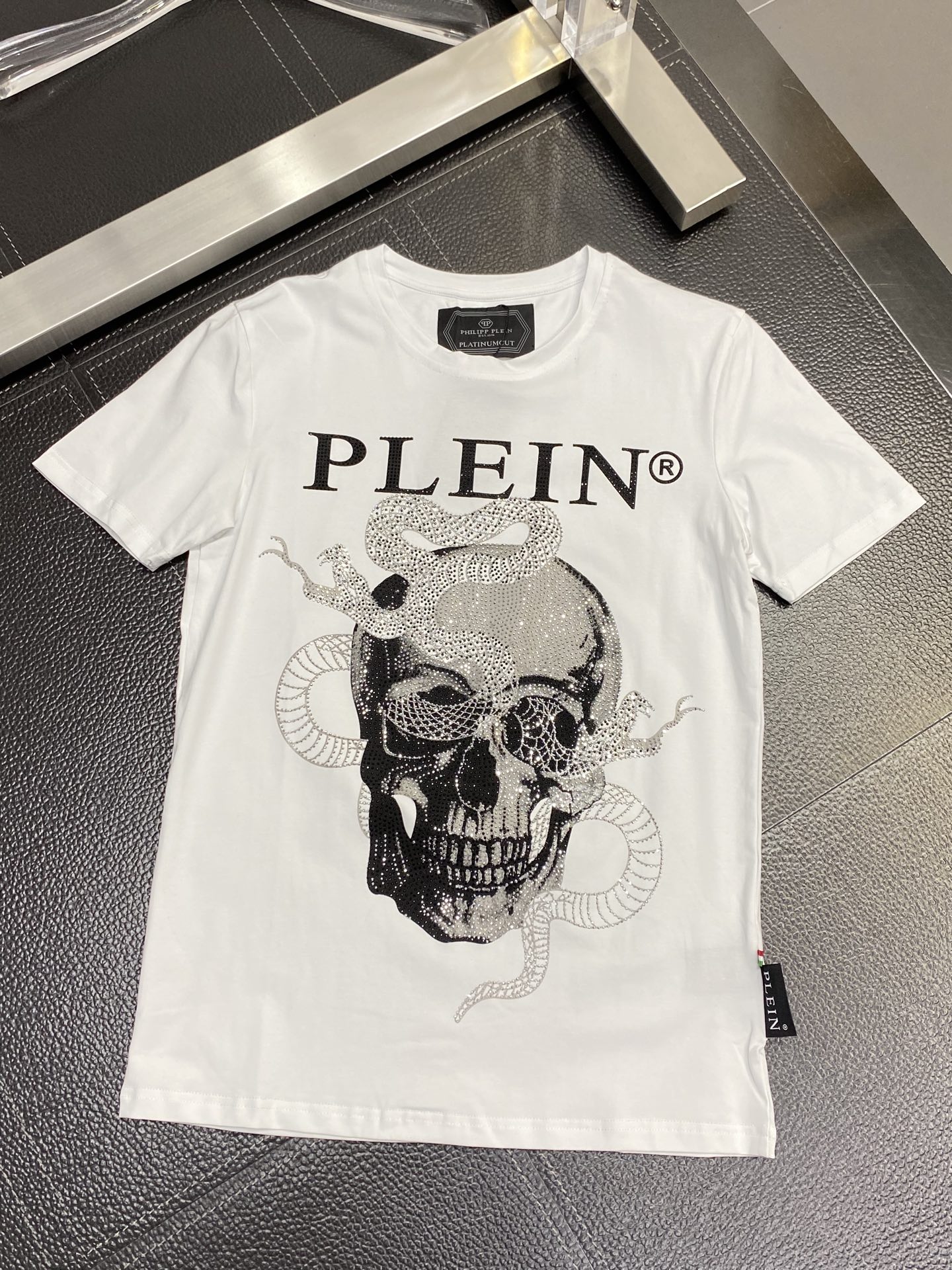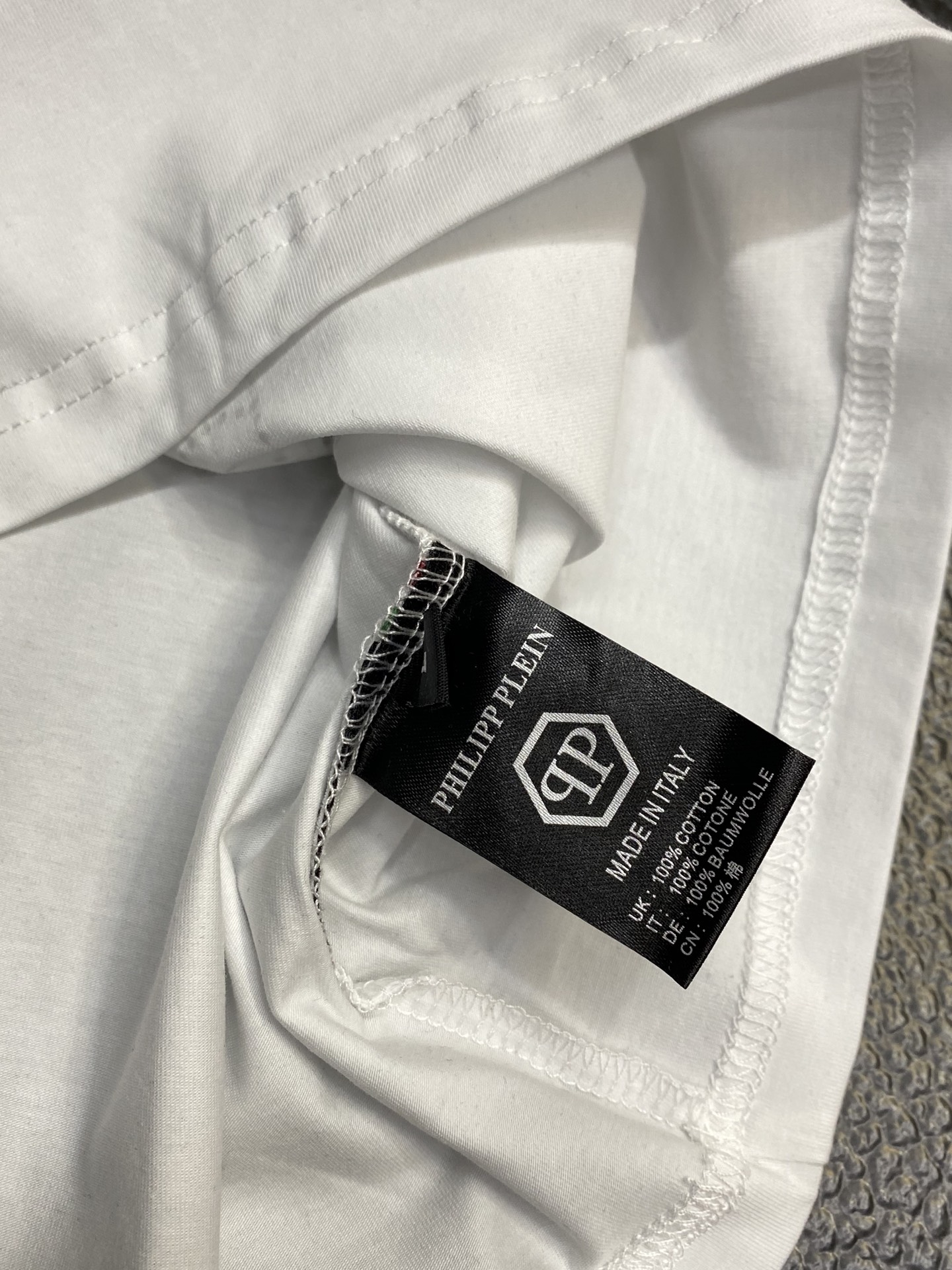 這款衣服是AAAAA 1:1 質量(非常棒). 使用了和原版一模一樣的材料. 商標部分也保持了和菲利普·普林/Philipp Plein一樣. 圖片拍攝是實物衣服拍攝, 您所收到的實物保證和我們圖片一模一樣.