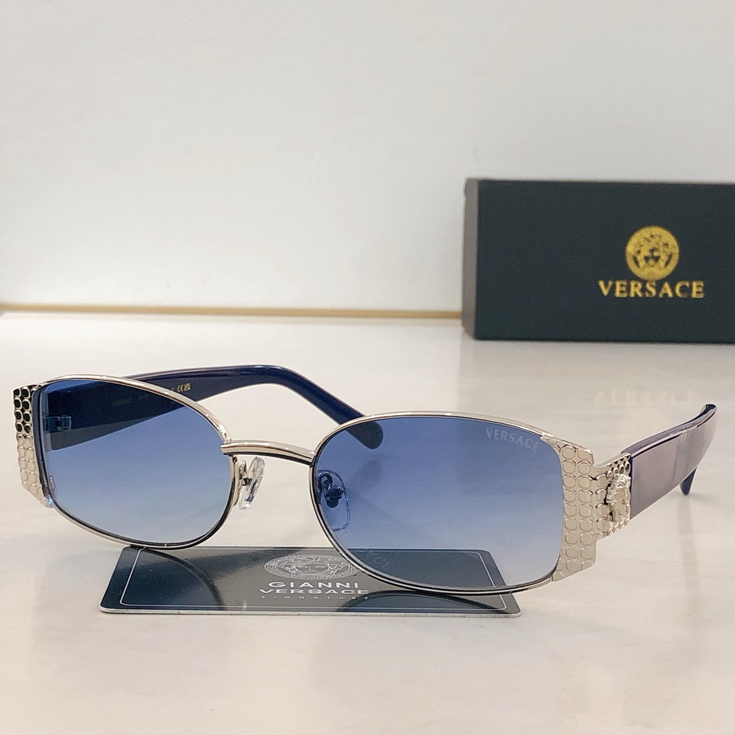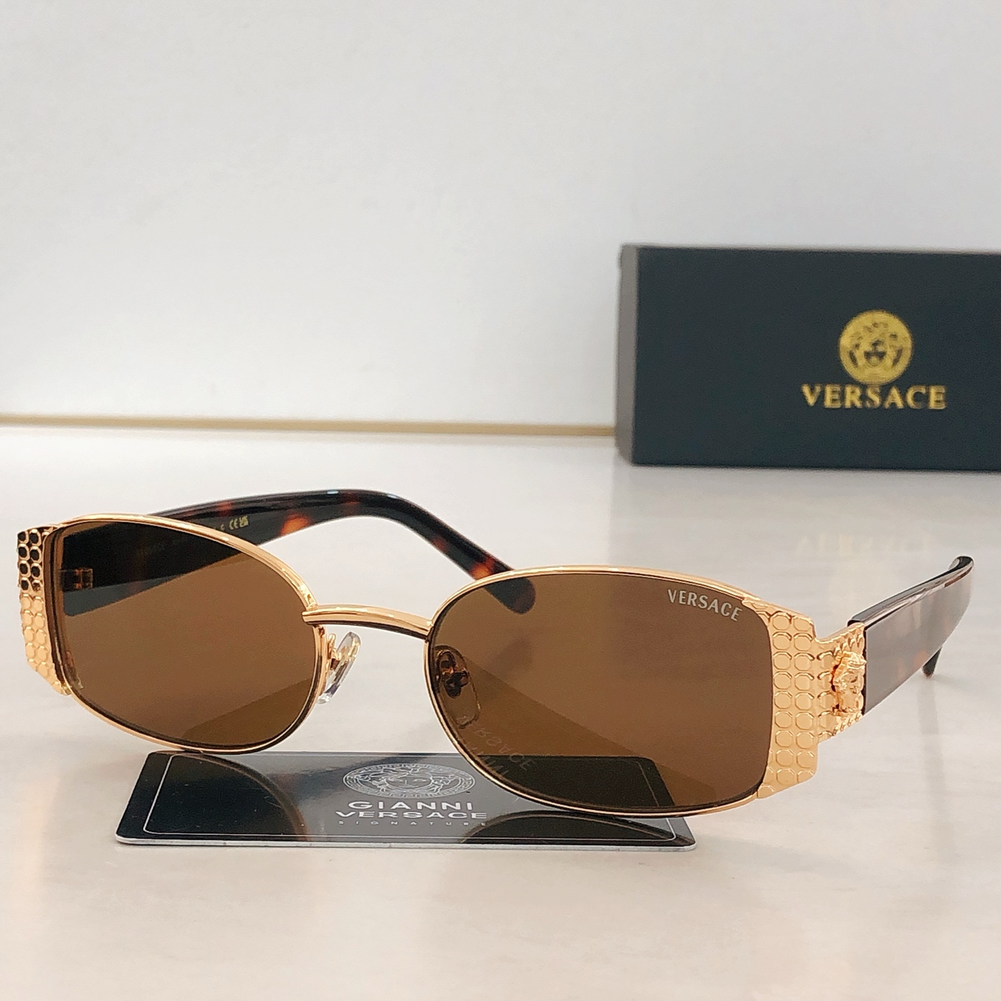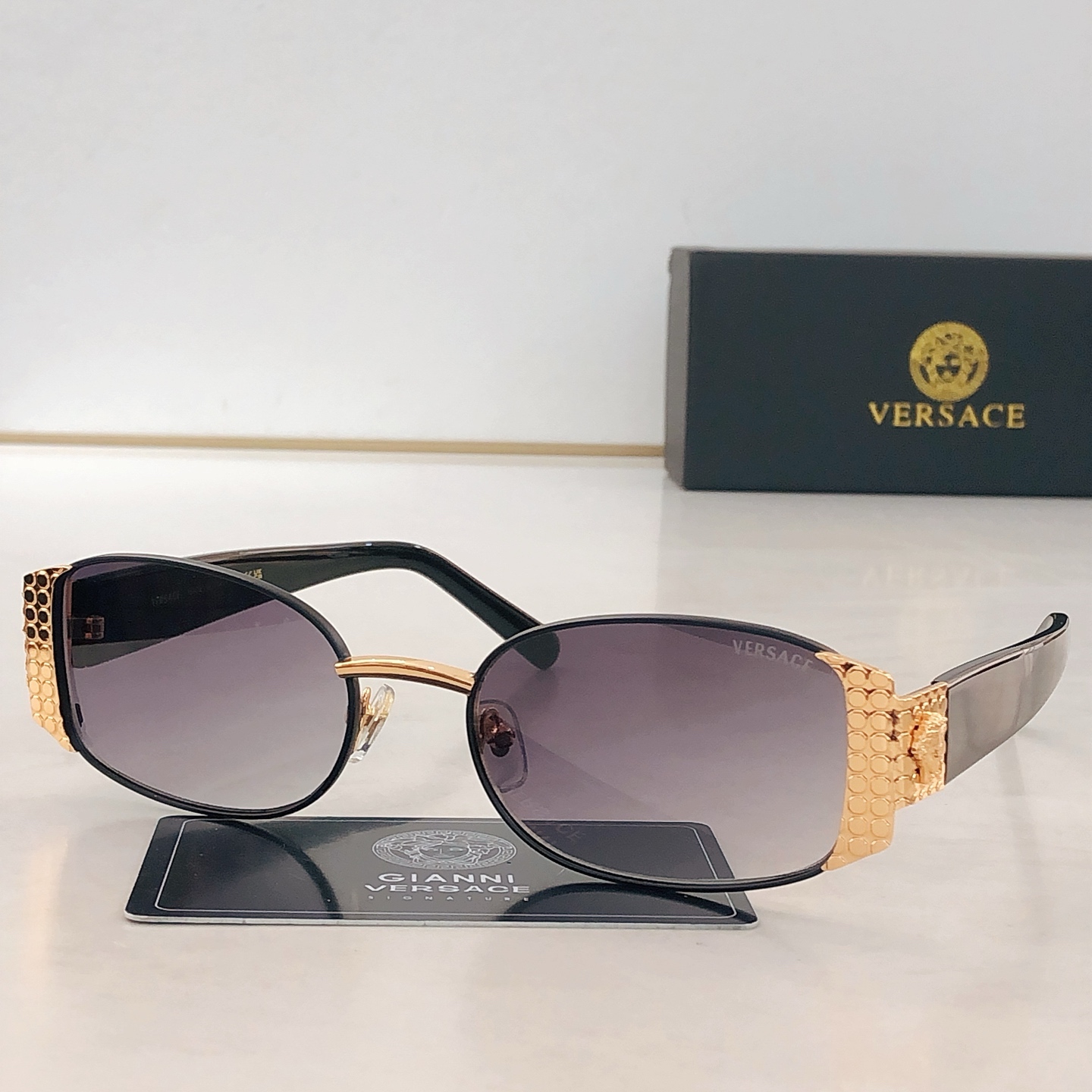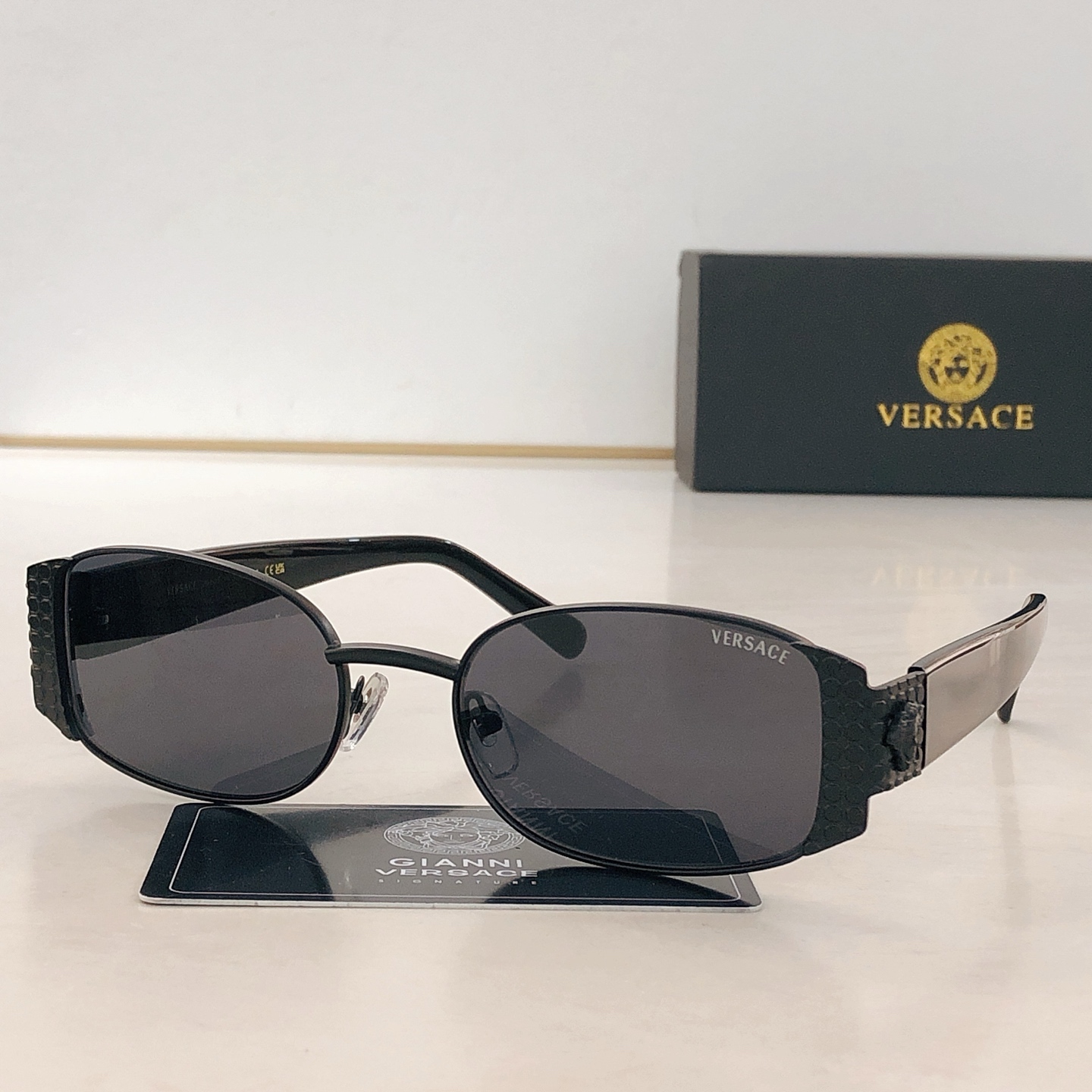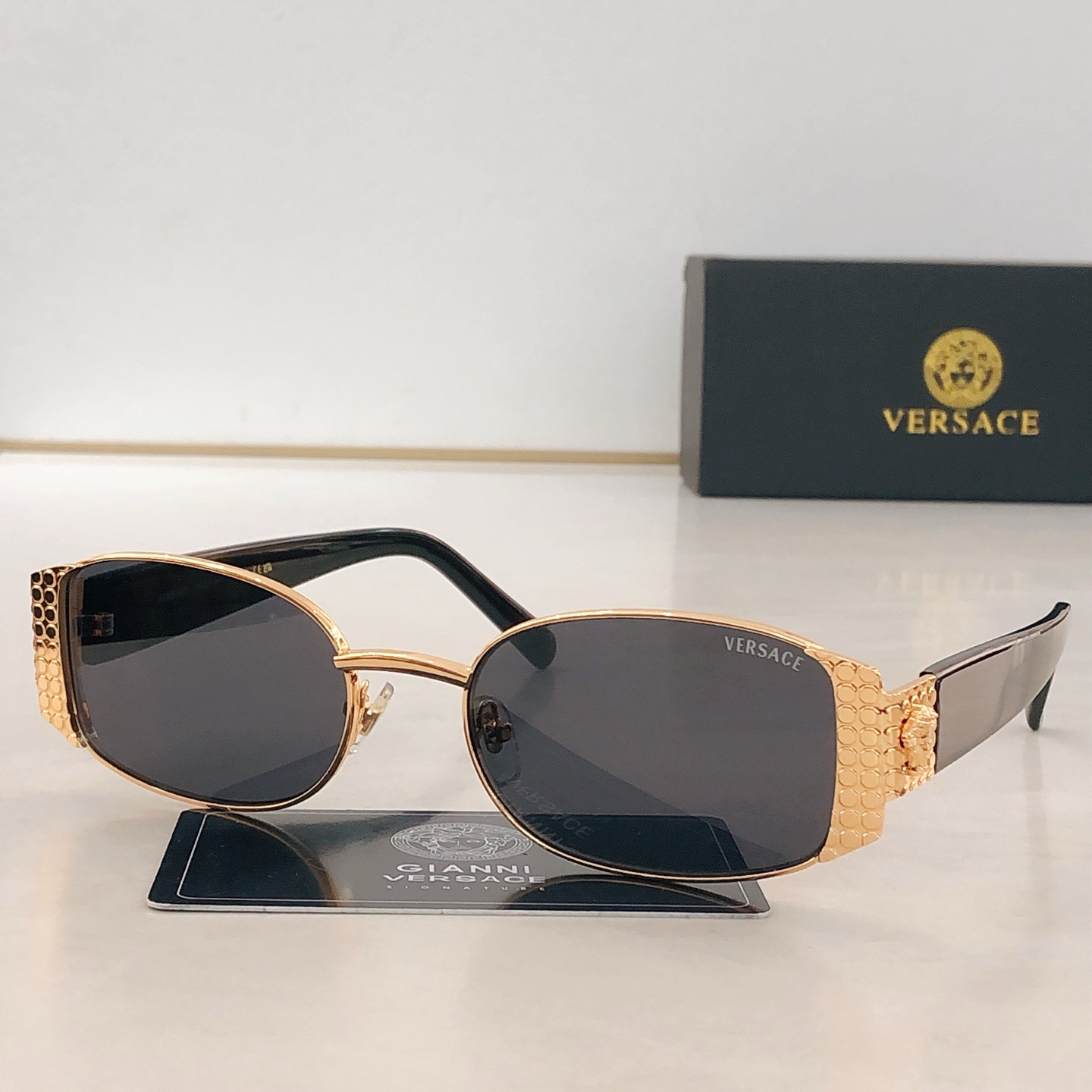 這款太陽眼鏡是AAAAA 1:1 質量(非常棒). 使用了和原版一模一樣的材料. 商標部分也保持了和范思哲/Versace一樣. 圖片拍攝是實物太陽眼鏡拍攝, 您所收到的實物保證和我們圖片一模一樣.